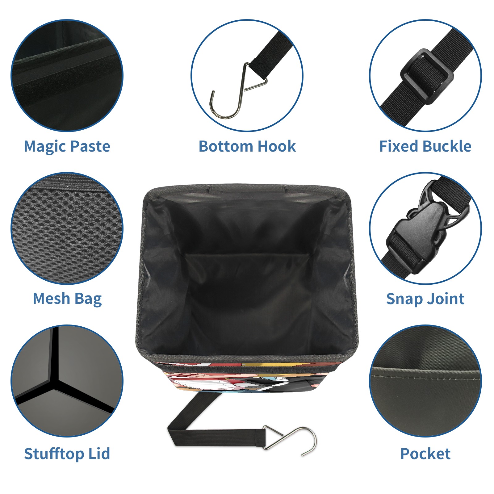 Car Trash Can with Lid, Small Portable Hanging Automotive Garbage Bin for Vehicles, Leakproof Waste Bag Container for SUV Truck Van Interior Auto Travel Road Trips(横图B (158))