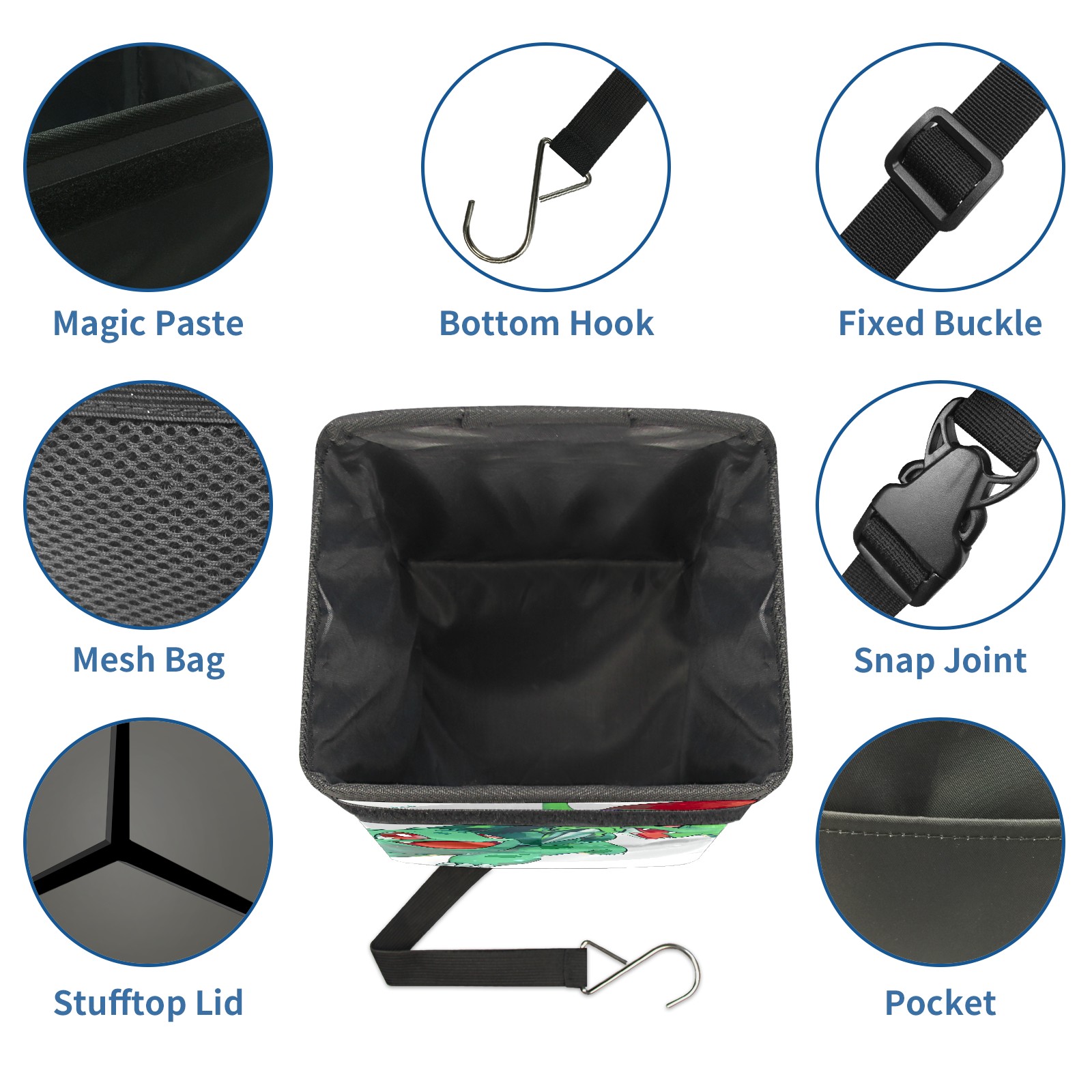 Car Trash Can with Lid, Small Portable Hanging Automotive Garbage Bin for Vehicles, Leakproof Waste Bag Container for SUV Truck Van Interior Auto Travel Road Trips(横图A (297))