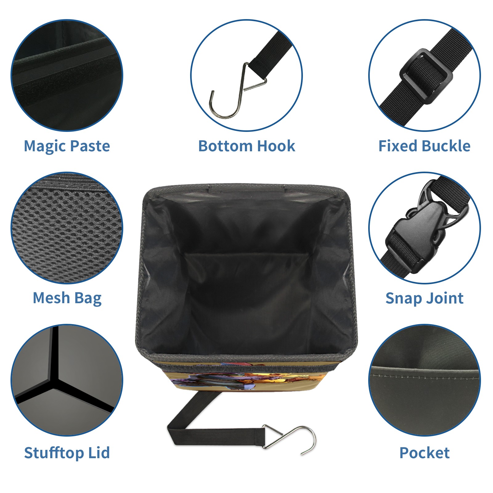 Car Trash Can with Lid, Small Portable Hanging Automotive Garbage Bin for Vehicles, Leakproof Waste Bag Container for SUV Truck Van Interior Auto Travel Road Trips(横图A (198))