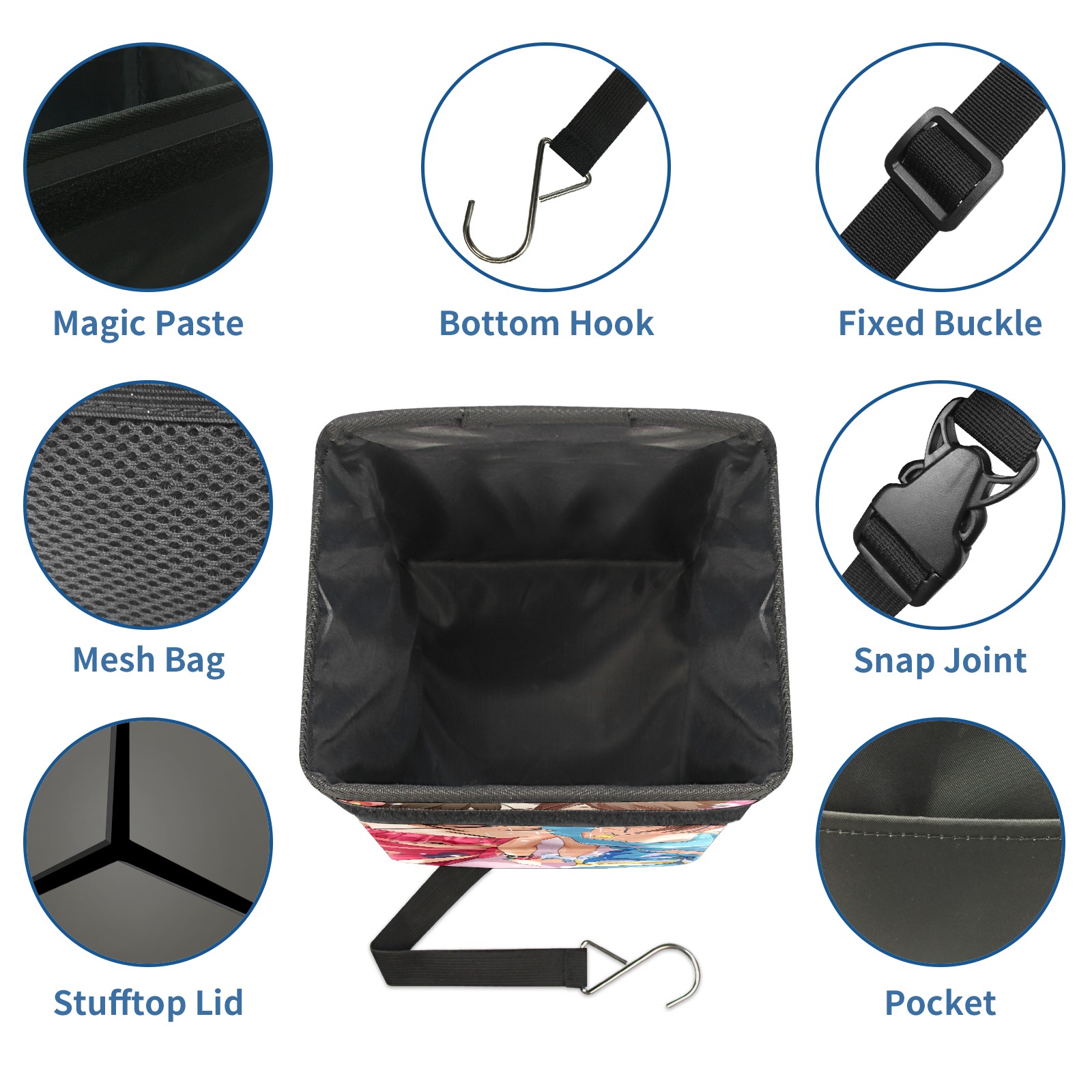 Car Trash Can with Lid, Small Portable Hanging Automotive Garbage Bin for Vehicles, Leakproof Waste Bag Container for SUV Truck Van Interior Auto Travel Road Trips(横图A (96))