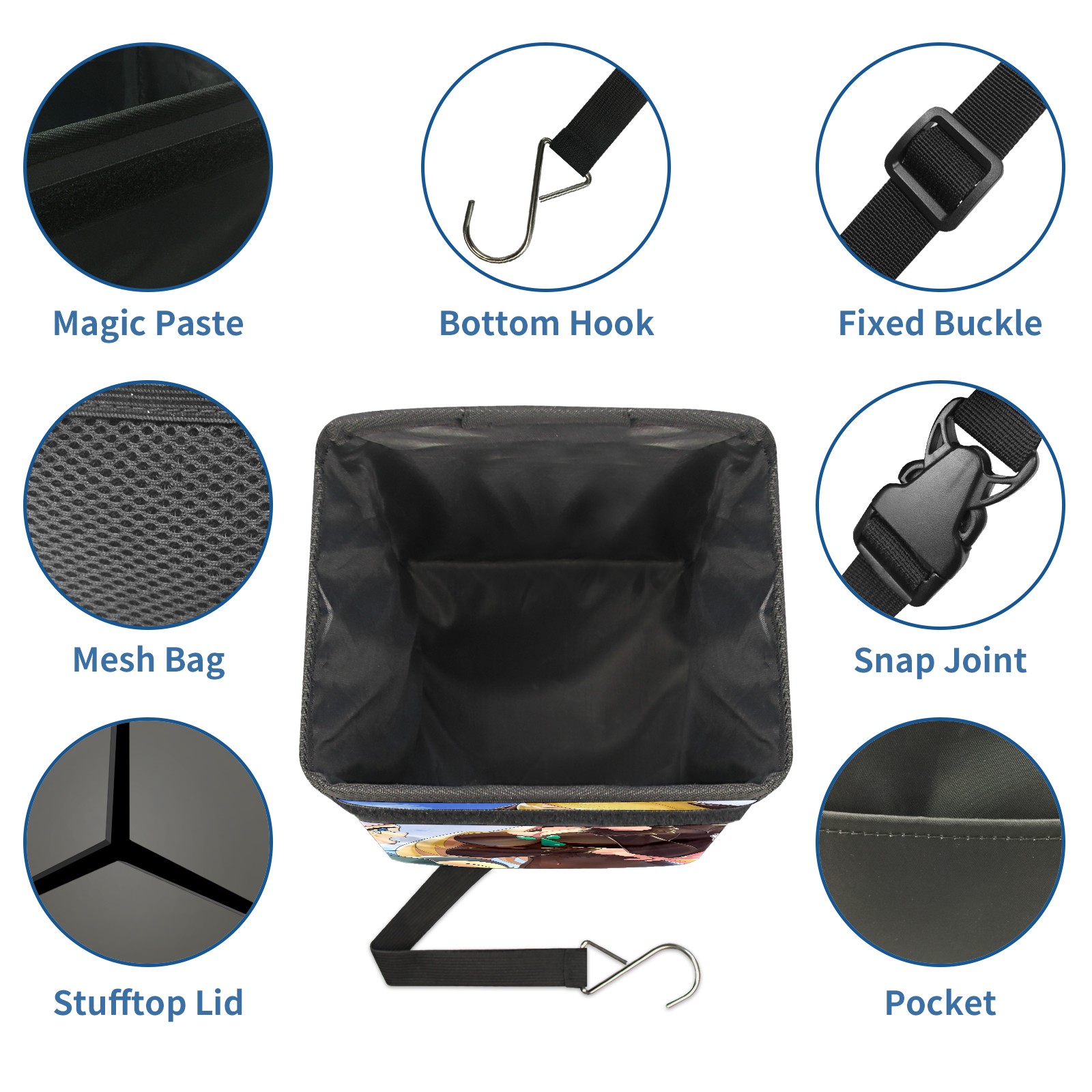 Car Trash Can with Lid, Small Portable Hanging Automotive Garbage Bin for Vehicles, Leakproof Waste Bag Container for SUV Truck Van Interior Auto Travel Road Trips(横图A (39))