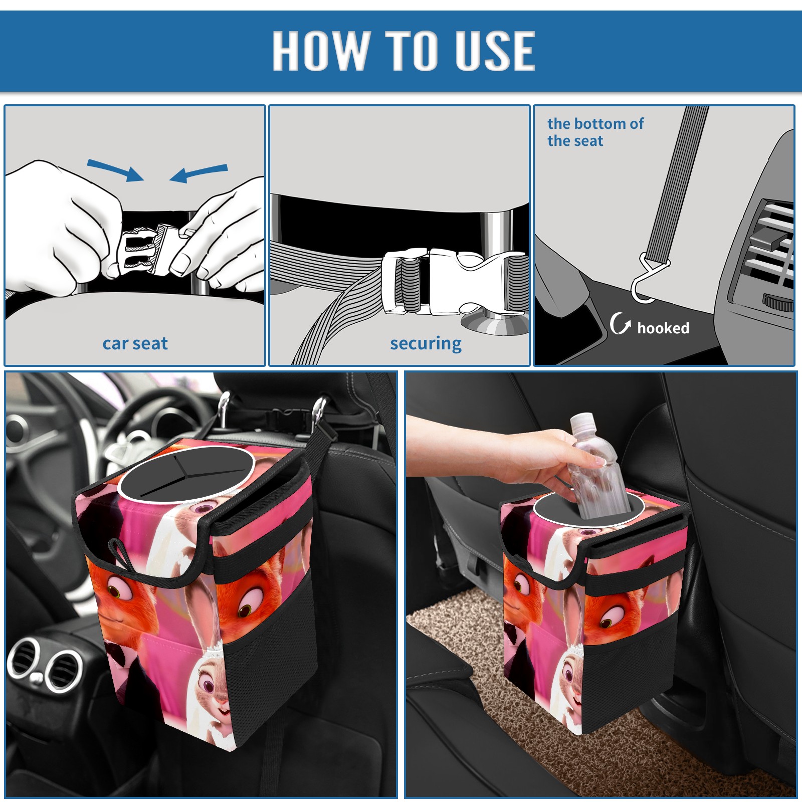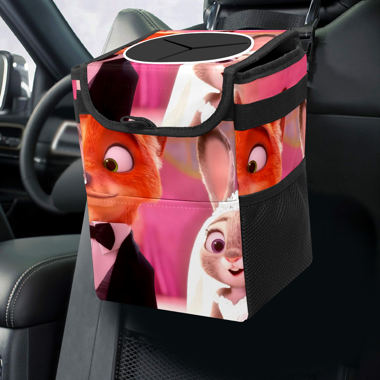 Car Trash Can with Lid, Small Portable Hanging Automotive Garbage Bin for Vehicles, Leakproof Waste Bag Container for SUV Truck Van Interior Auto Travel Road Trips(朱迪尼克礼服 电脑版02)