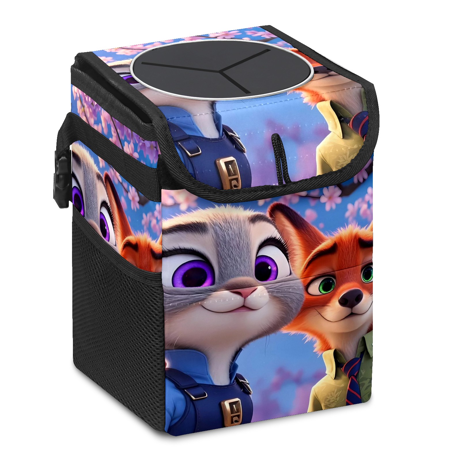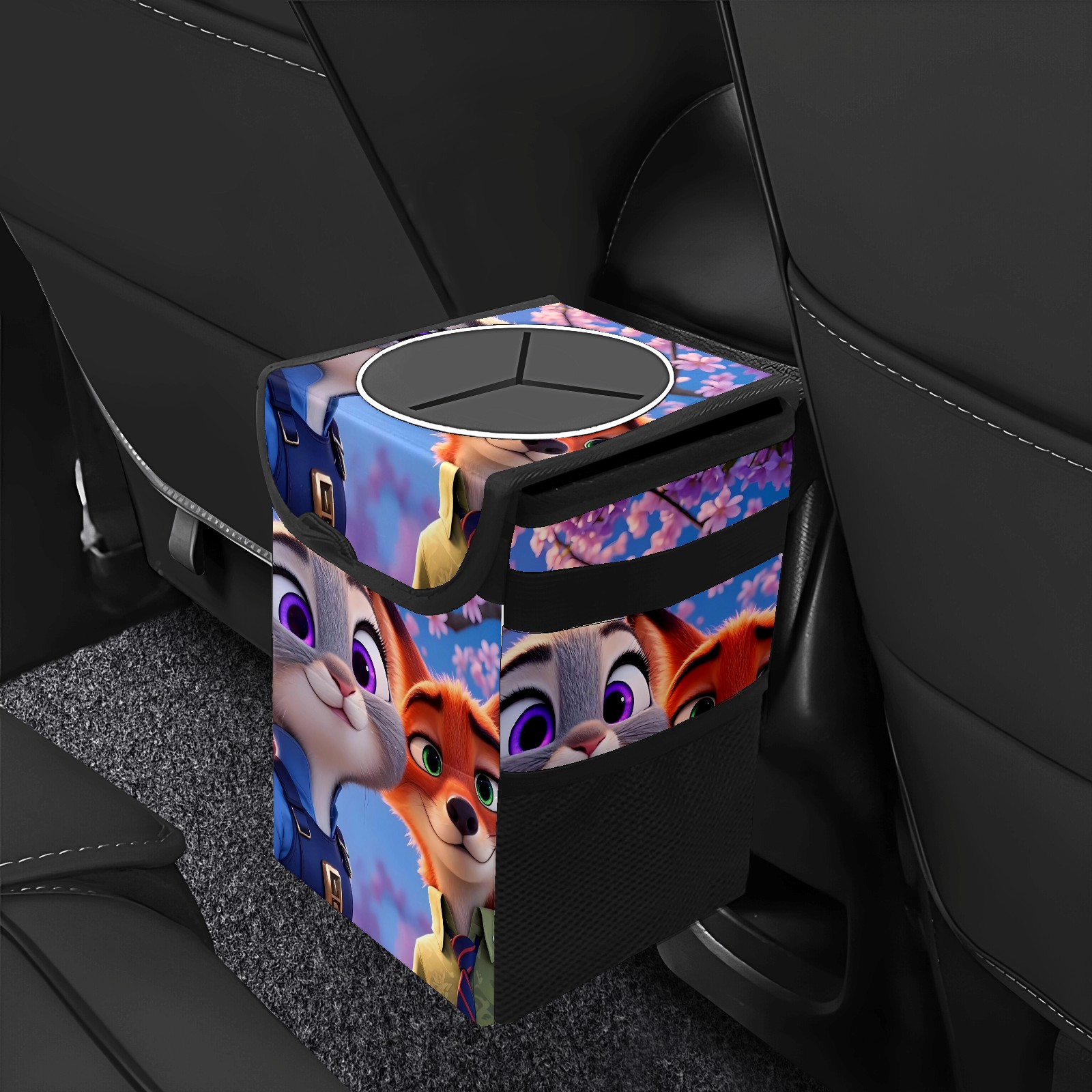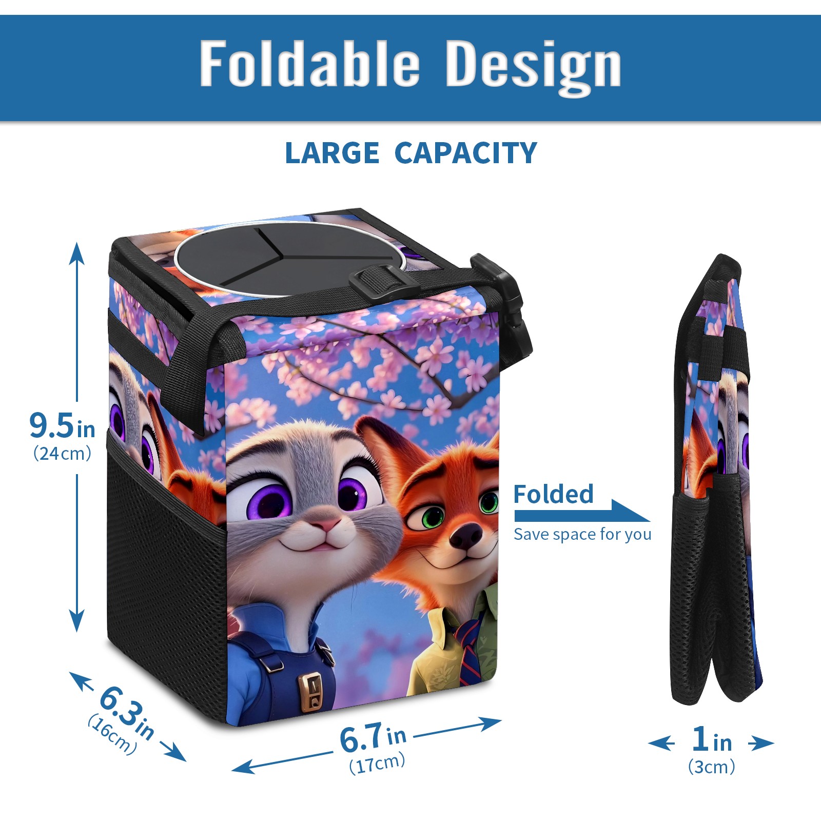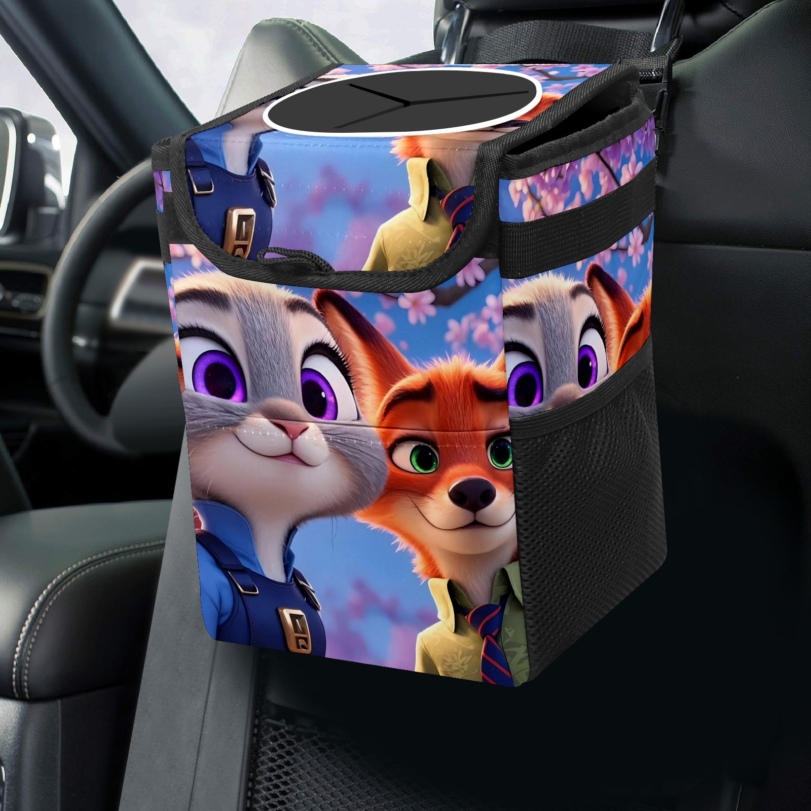 Car Trash Can with Lid, Small Portable Hanging Automotive Garbage Bin for Vehicles, Leakproof Waste Bag Container for SUV Truck Van Interior Auto Travel Road Trips(疯狂动物城 电脑版 06)