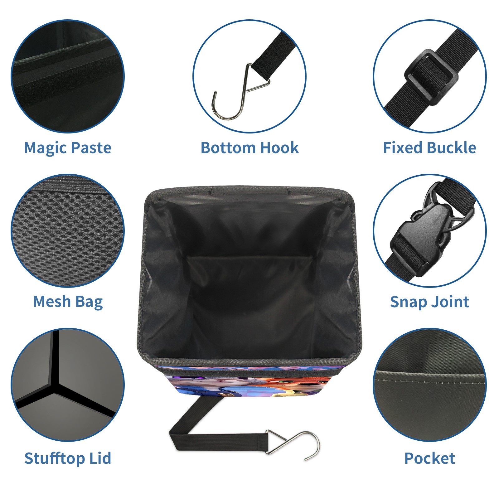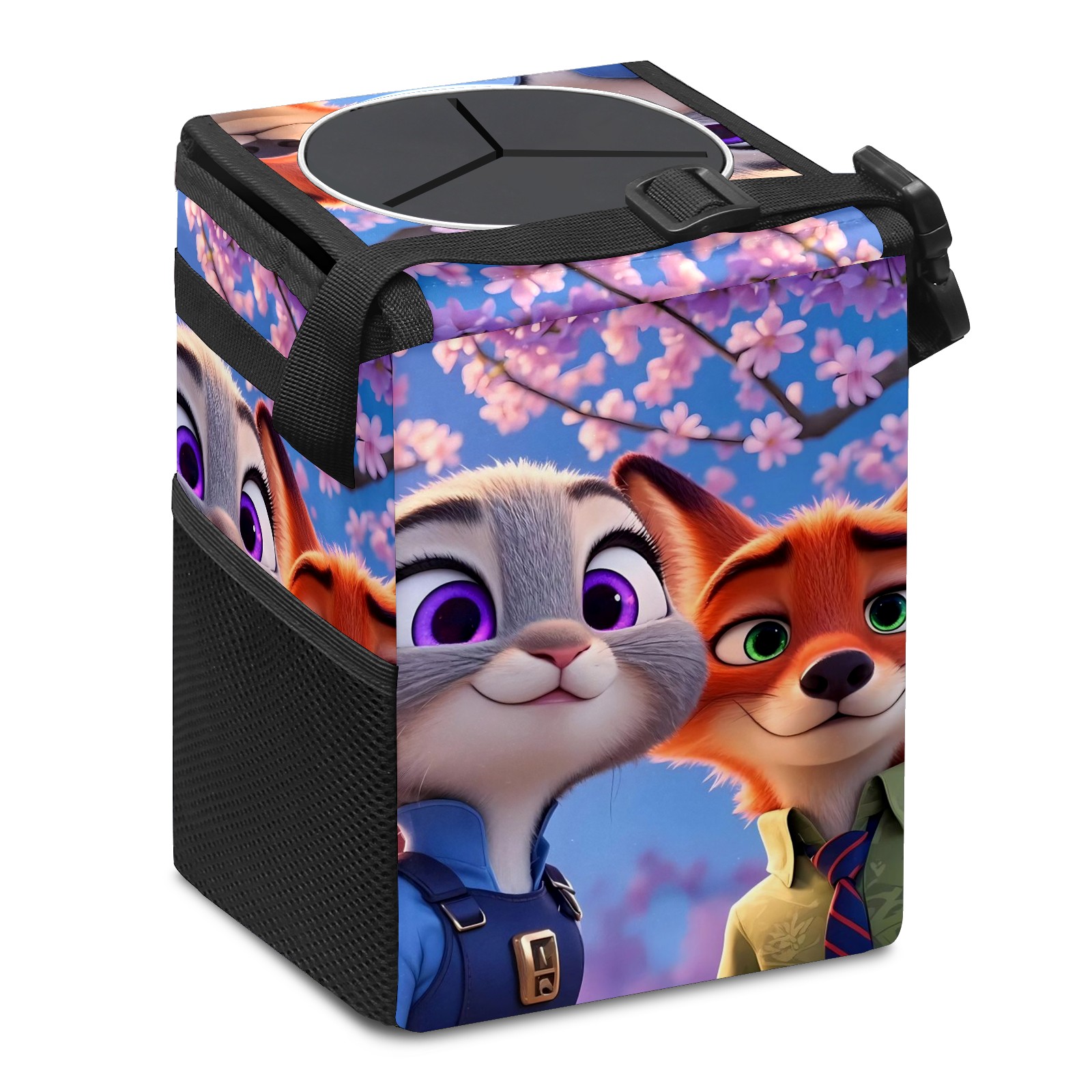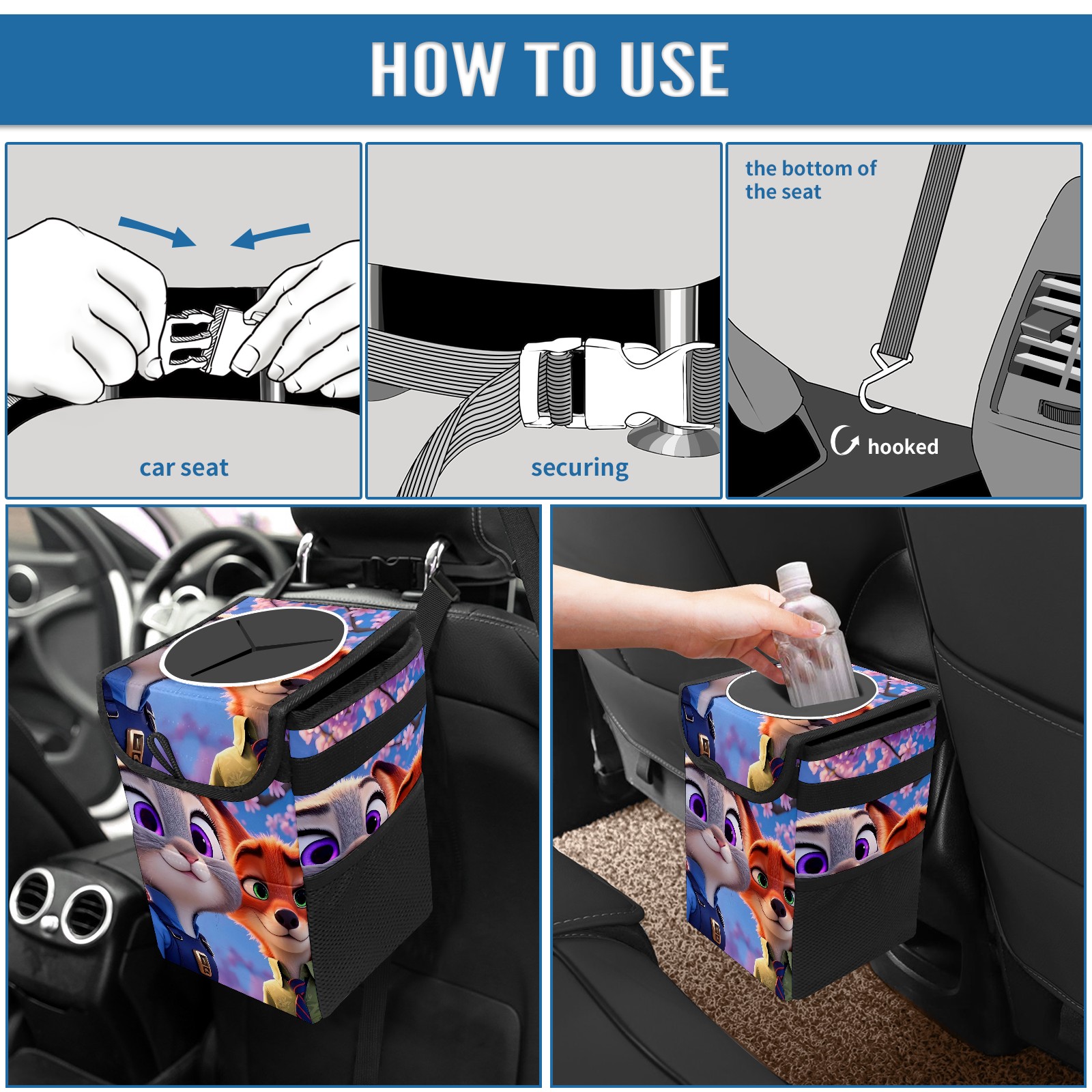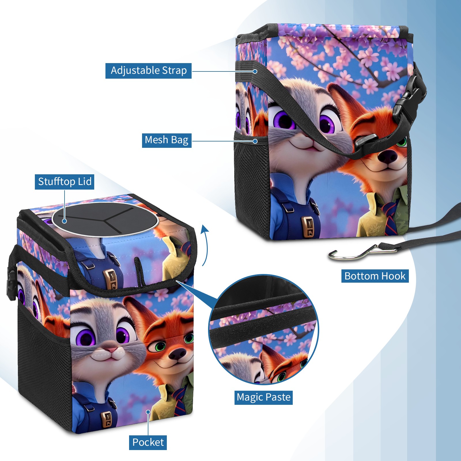Car Trash Can with Lid, Small Portable Hanging Automotive Garbage Bin for Vehicles, Leakproof Waste Bag Container for SUV Truck Van Interior Auto Travel Road Trips(疯狂动物城 电脑版 06)