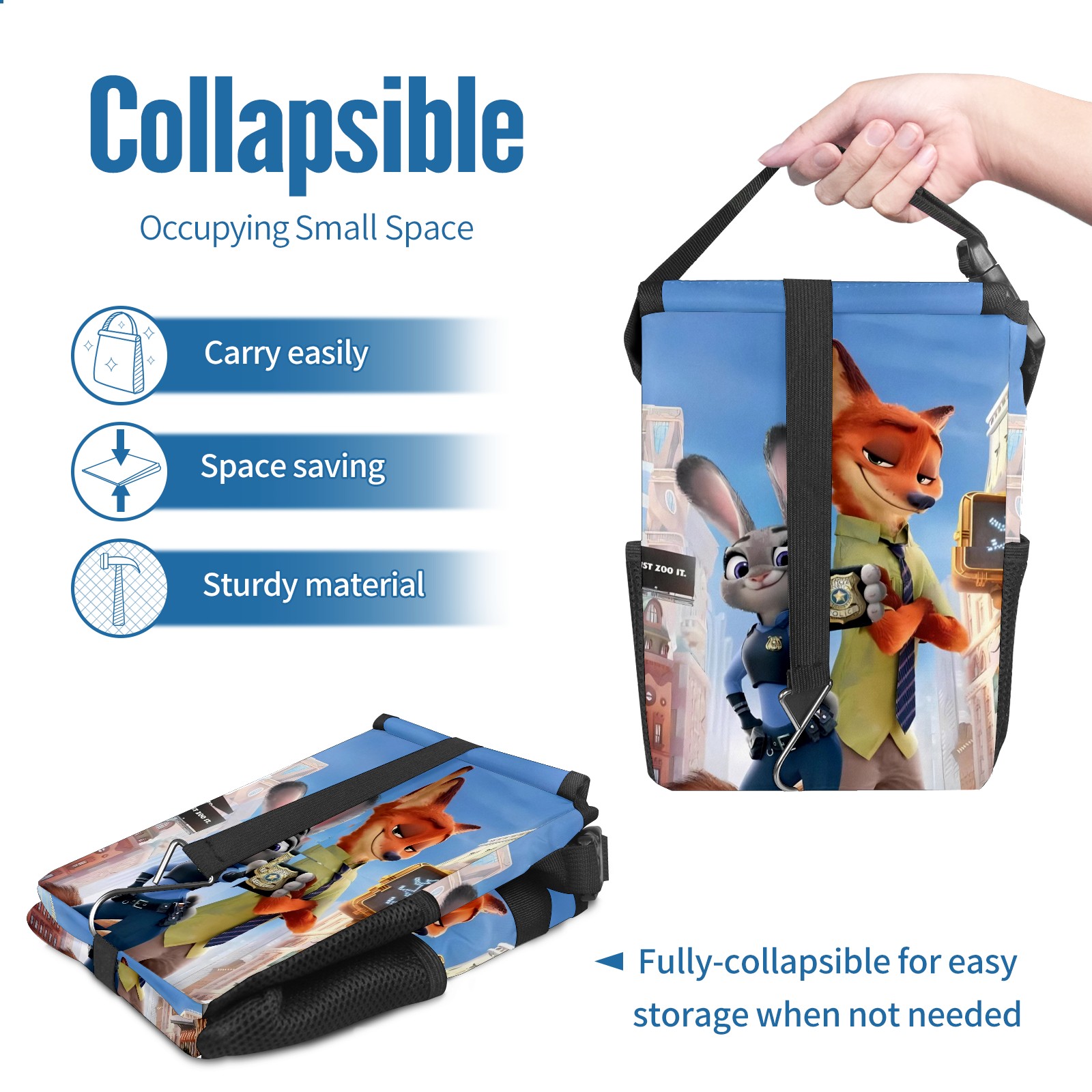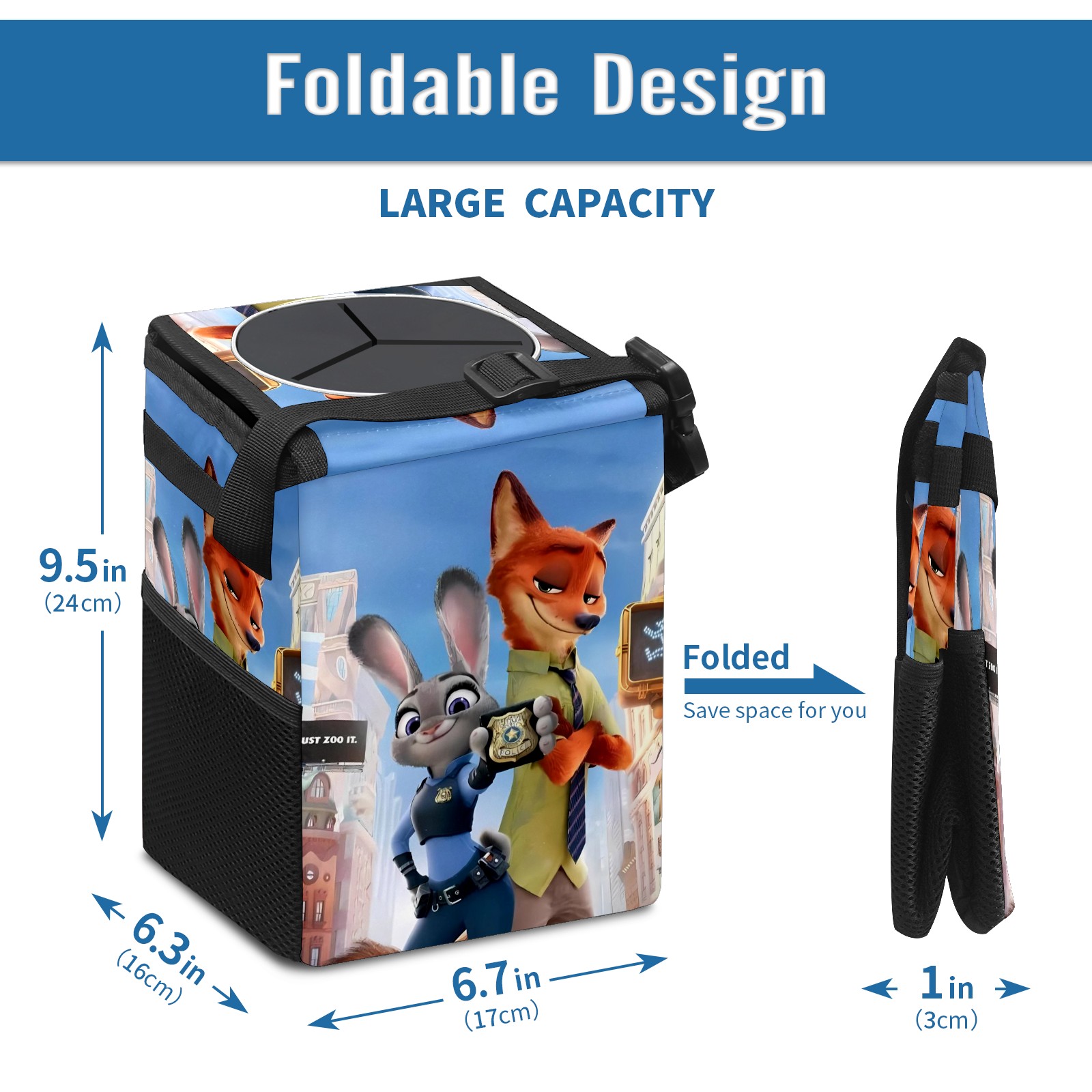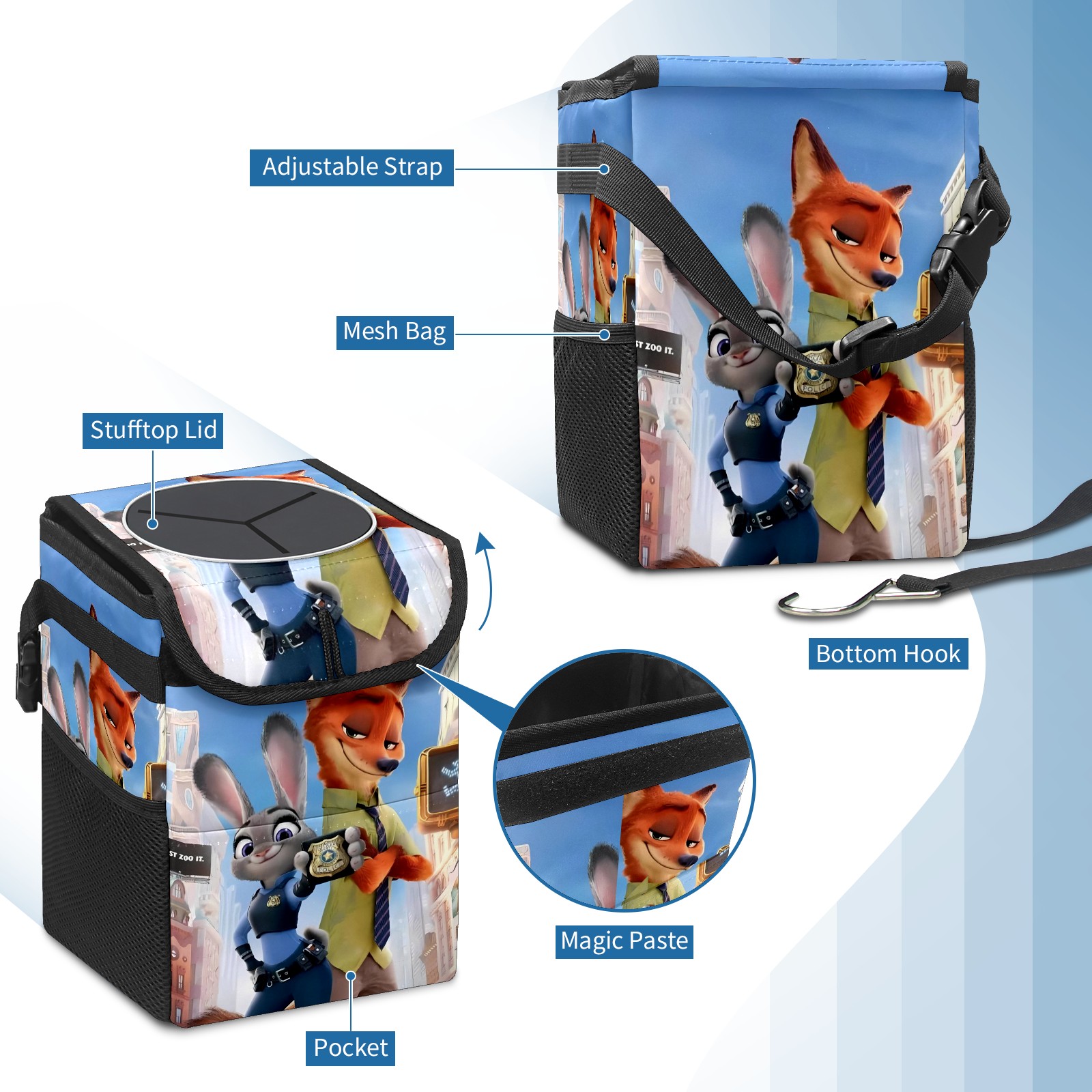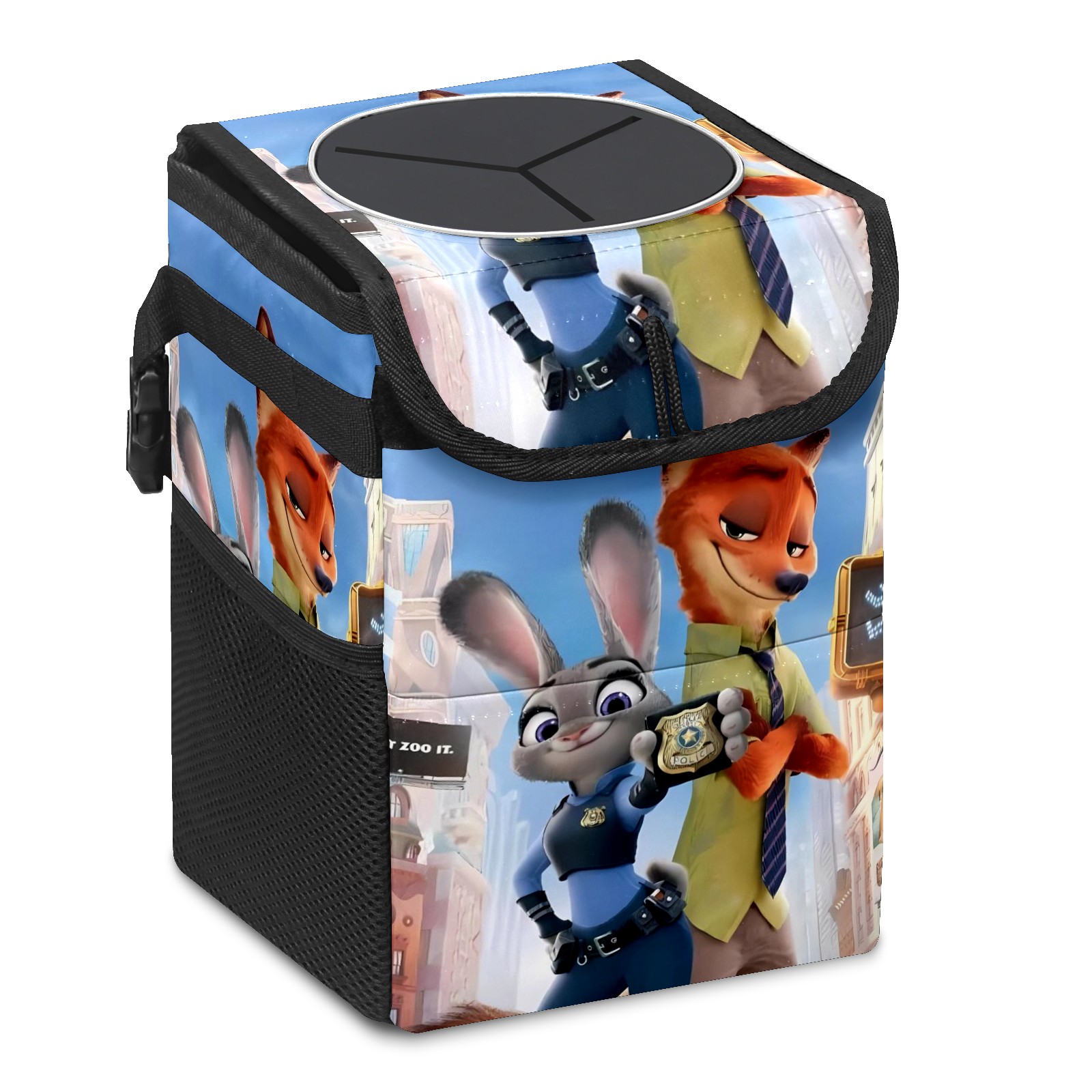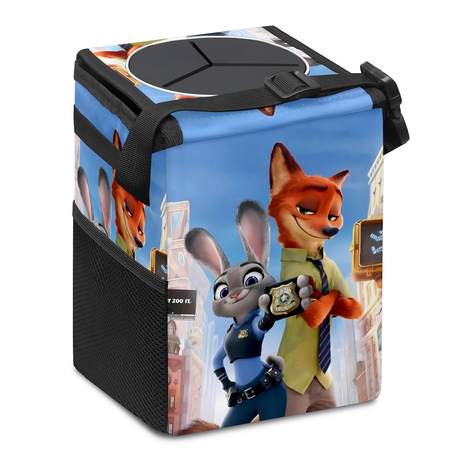 Car Trash Can with Lid, Small Portable Hanging Automotive Garbage Bin for Vehicles, Leakproof Waste Bag Container for SUV Truck Van Interior Auto Travel Road Trips(疯狂动物城 电脑版 05)