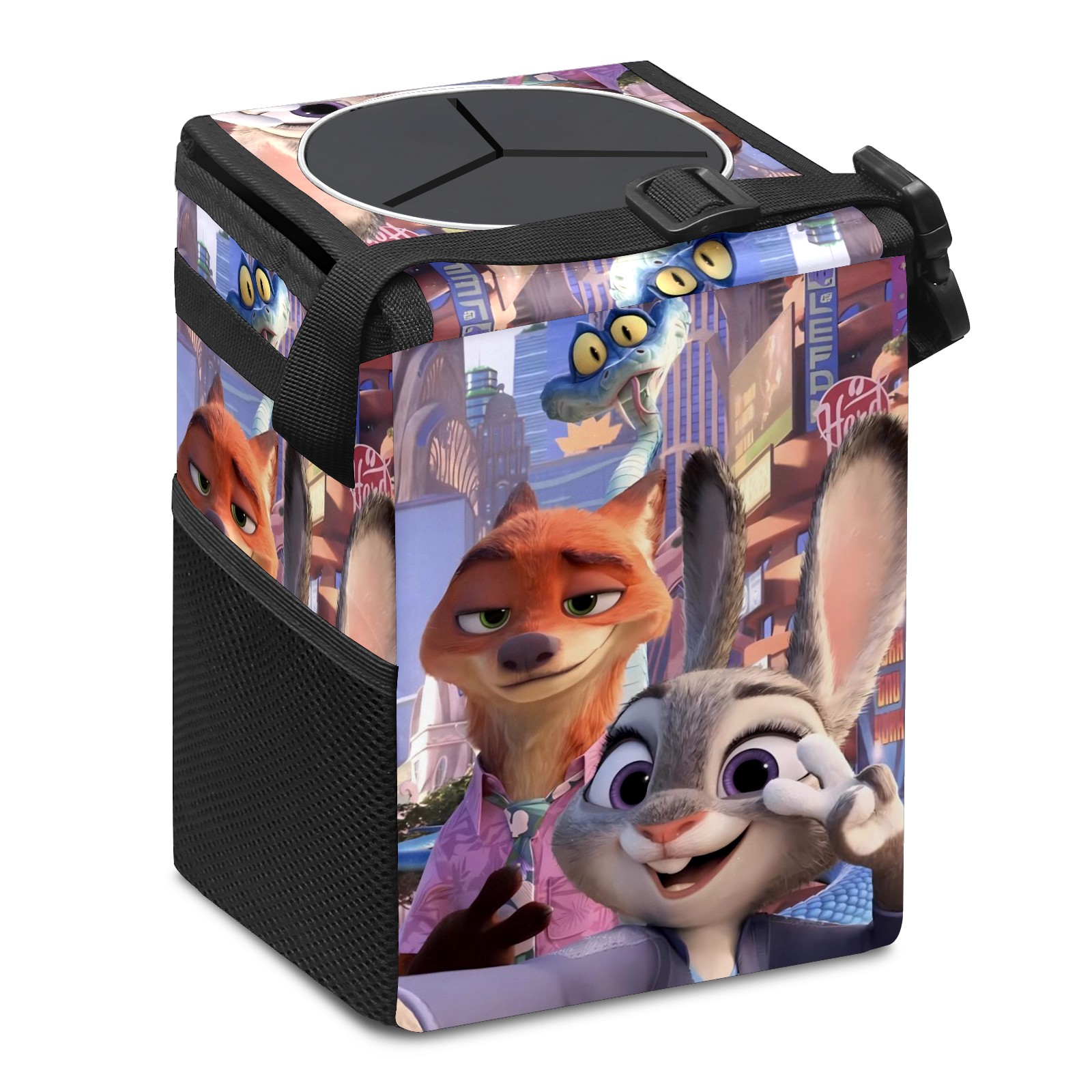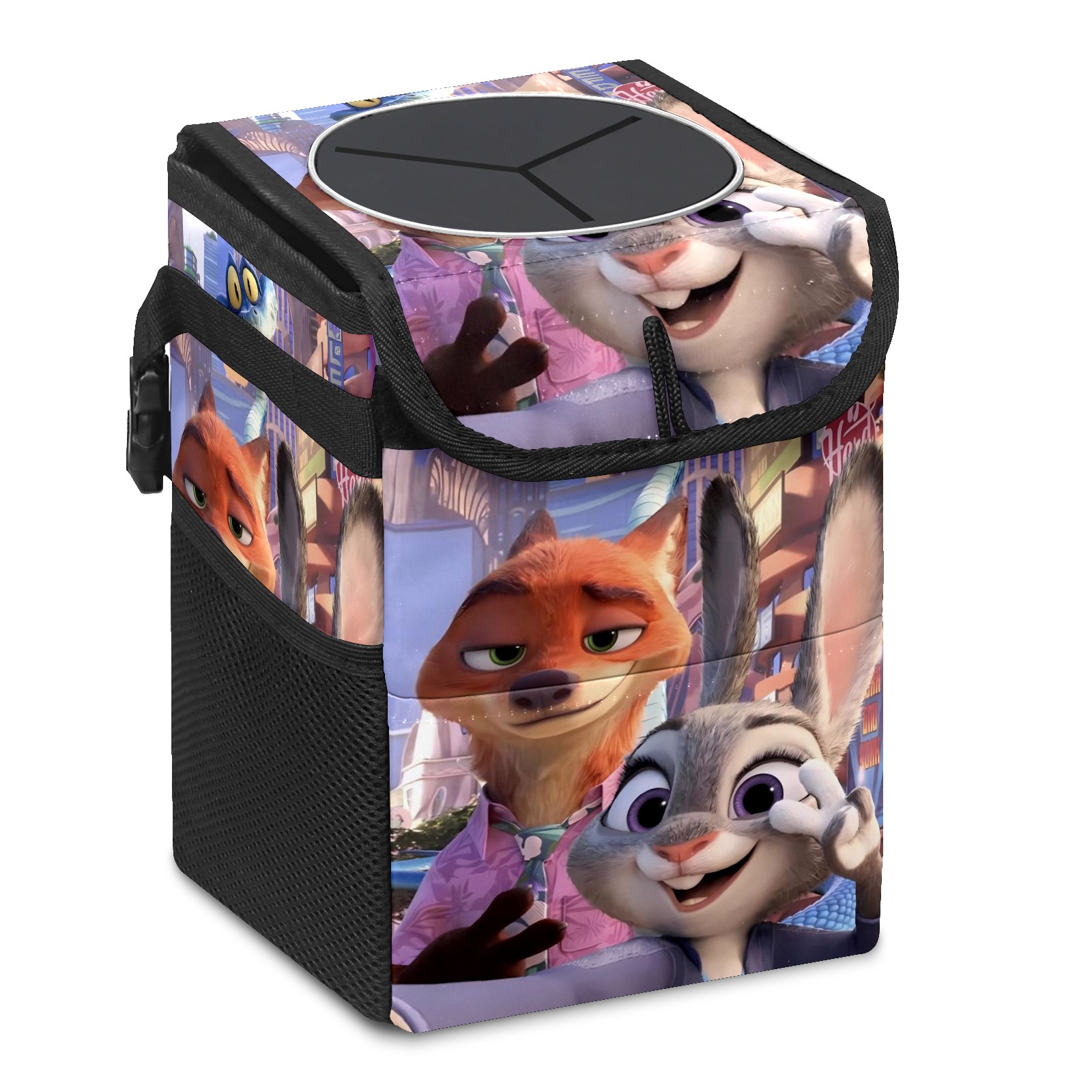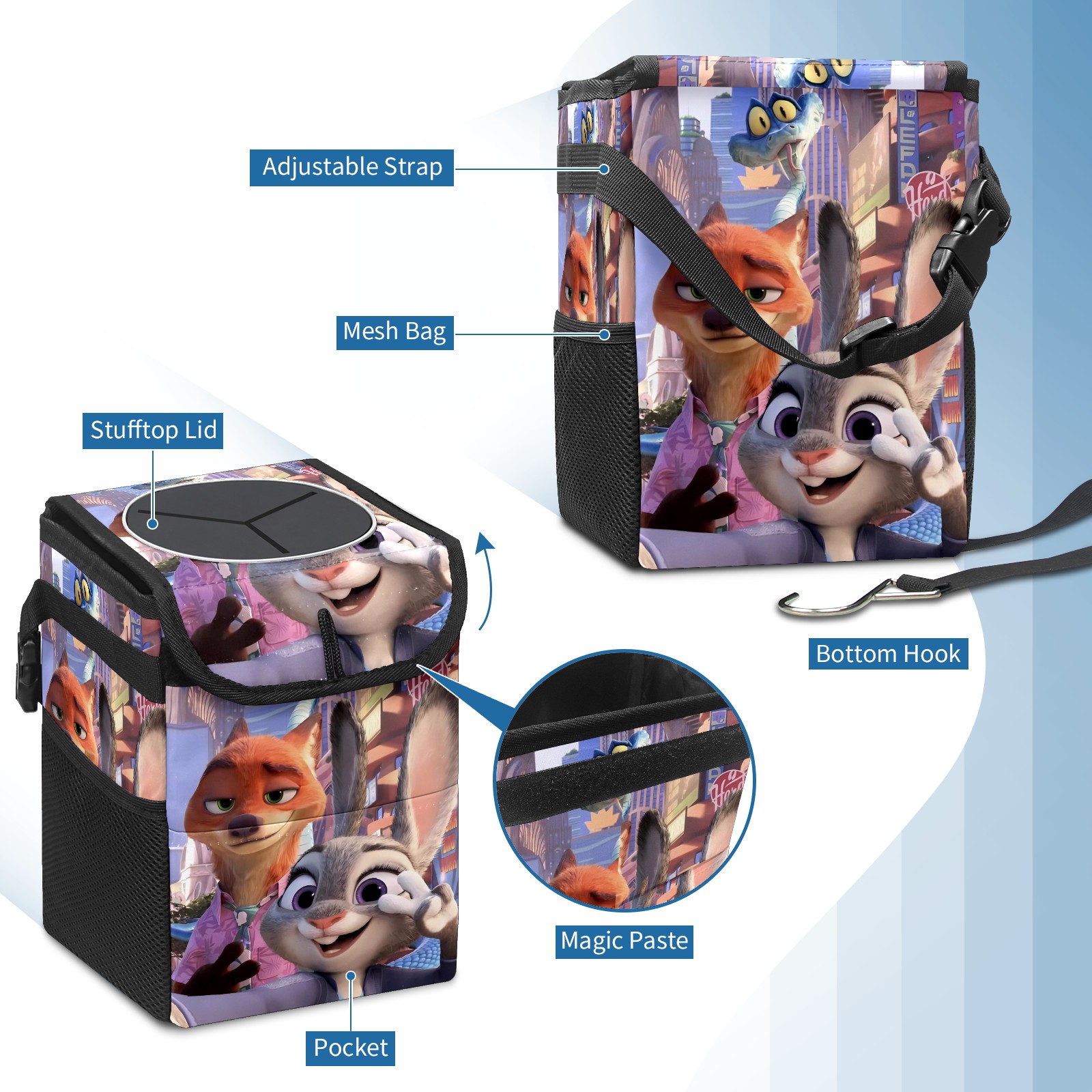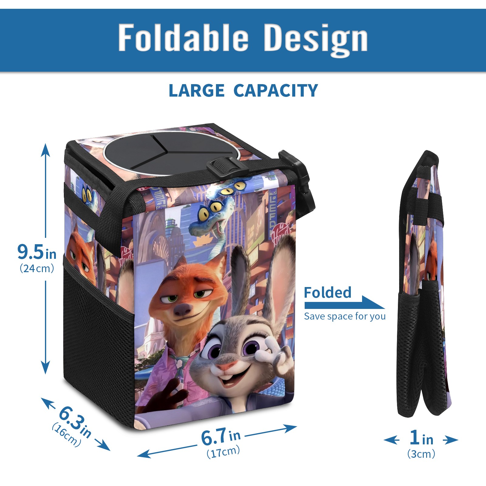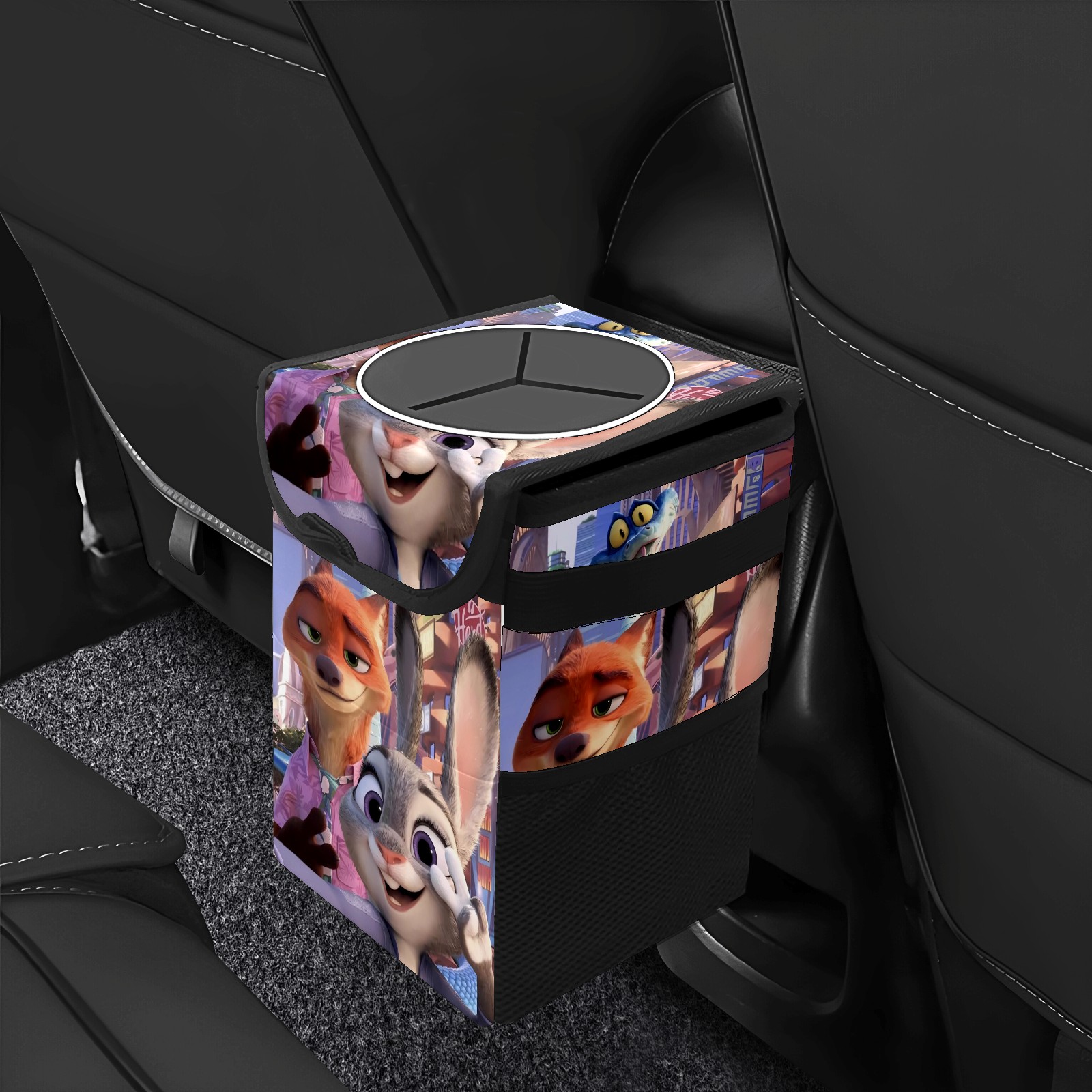 Car Trash Can with Lid, Small Portable Hanging Automotive Garbage Bin for Vehicles, Leakproof Waste Bag Container for SUV Truck Van Interior Auto Travel Road Trips(疯狂动物城 电脑版 04)