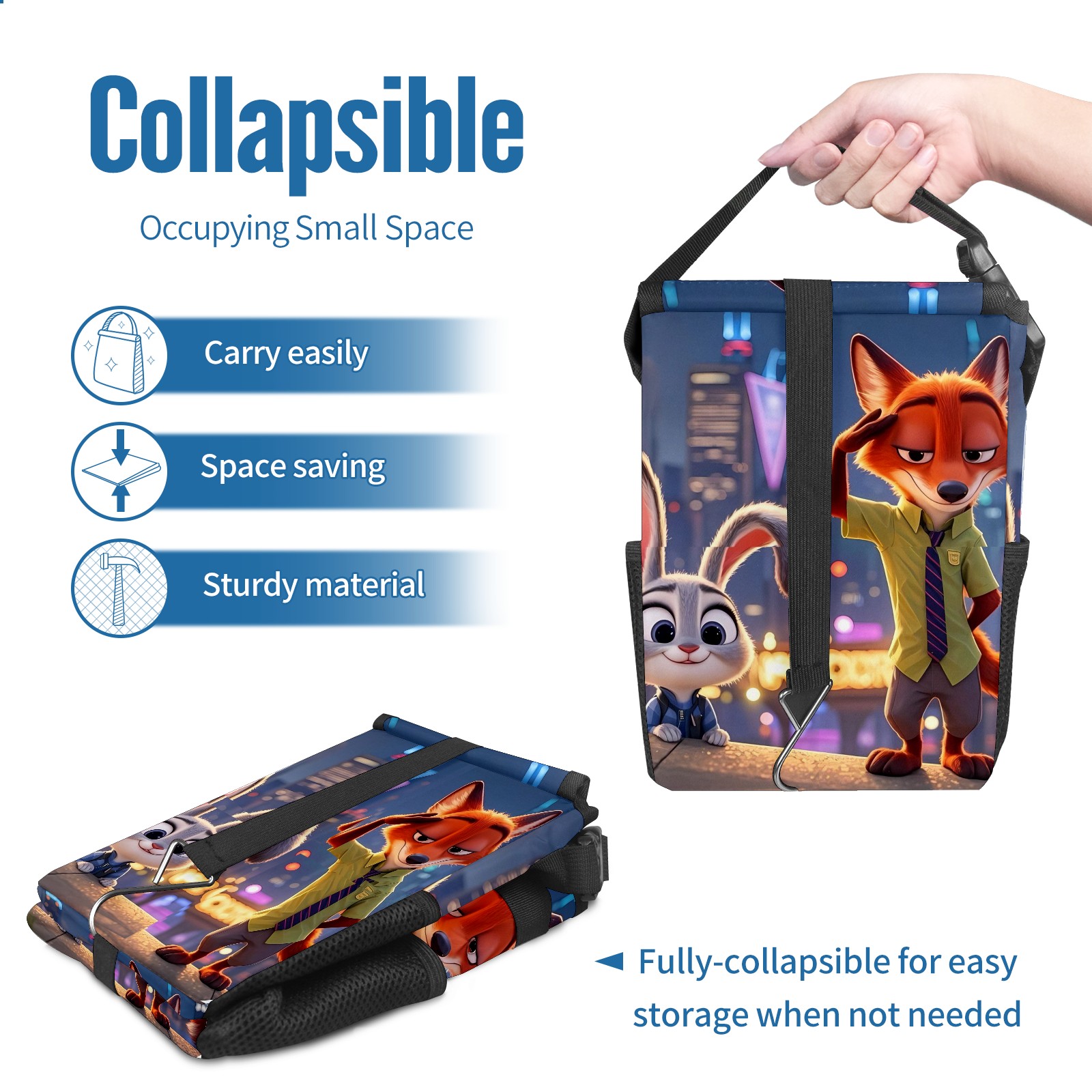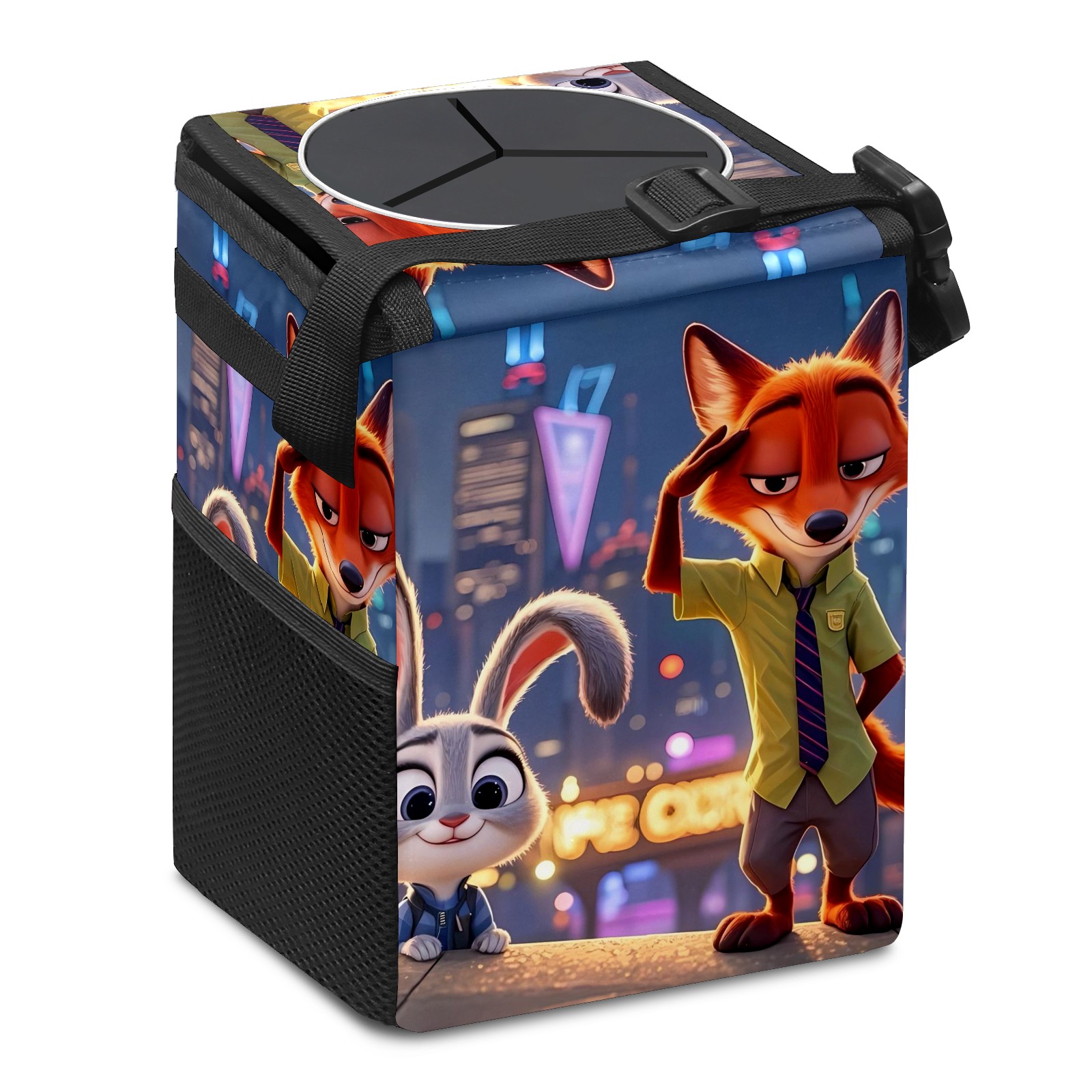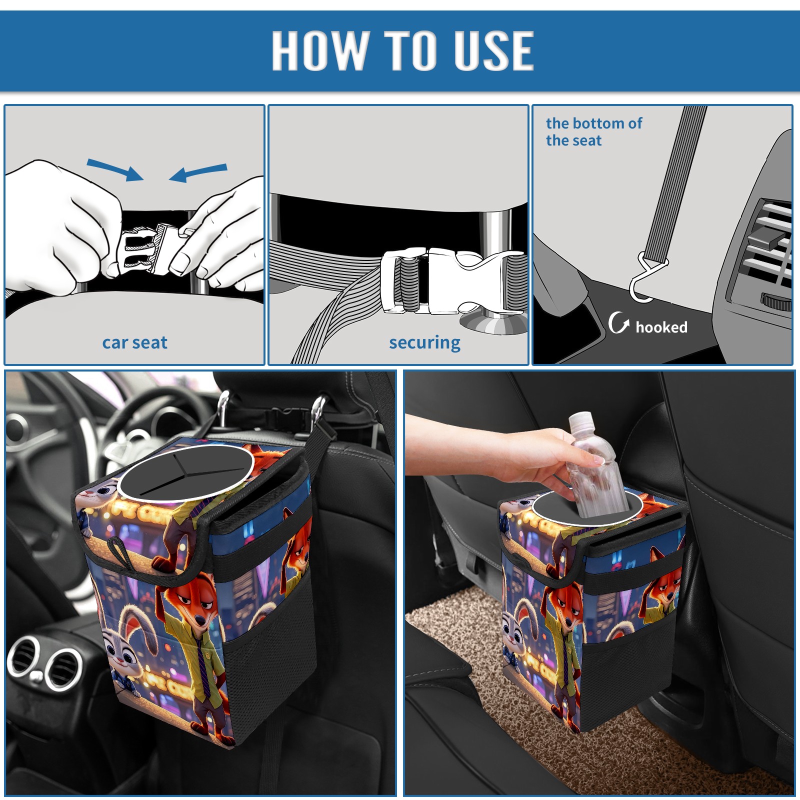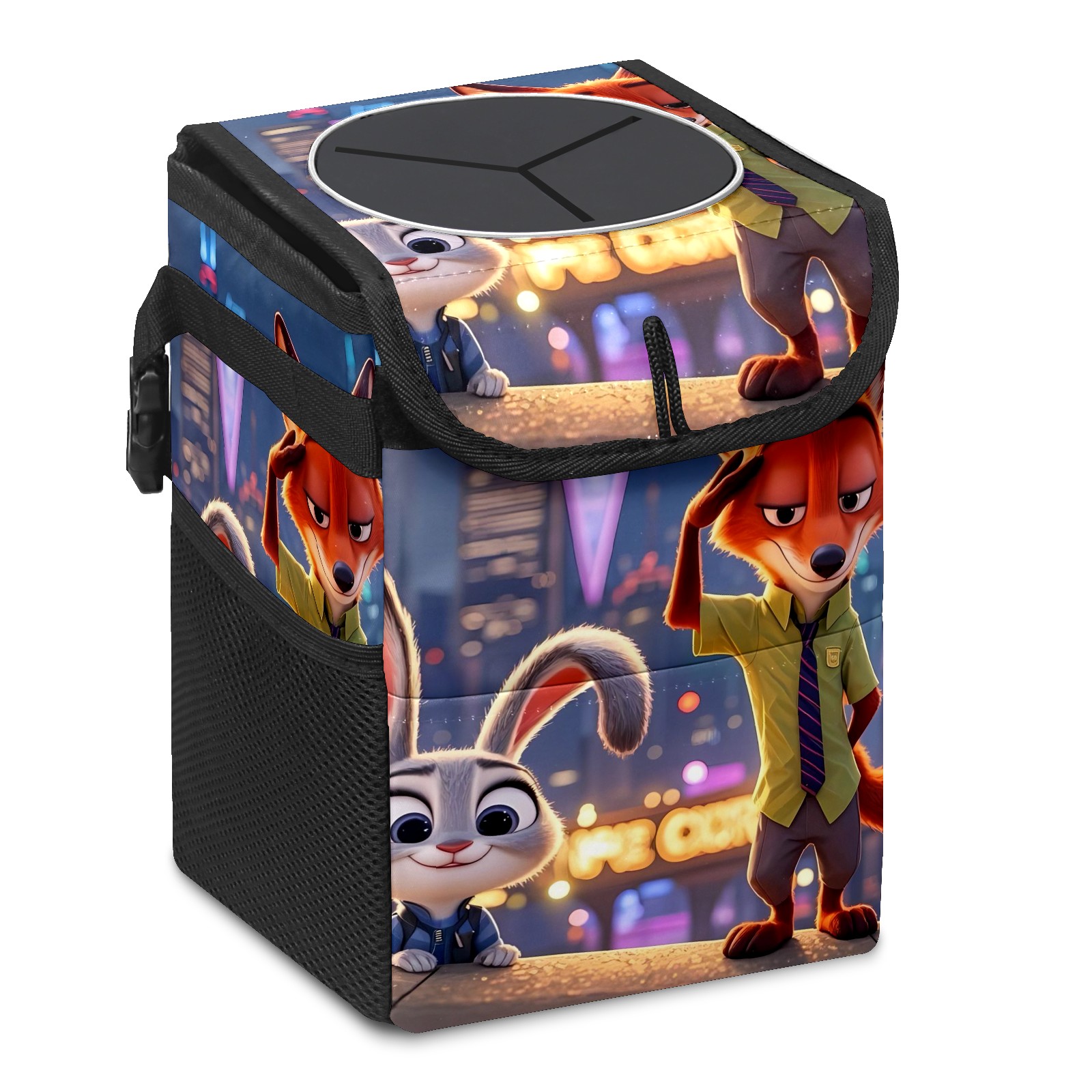 Car Trash Can with Lid, Small Portable Hanging Automotive Garbage Bin for Vehicles, Leakproof Waste Bag Container for SUV Truck Van Interior Auto Travel Road Trips(疯狂动物城 IPad版 09)