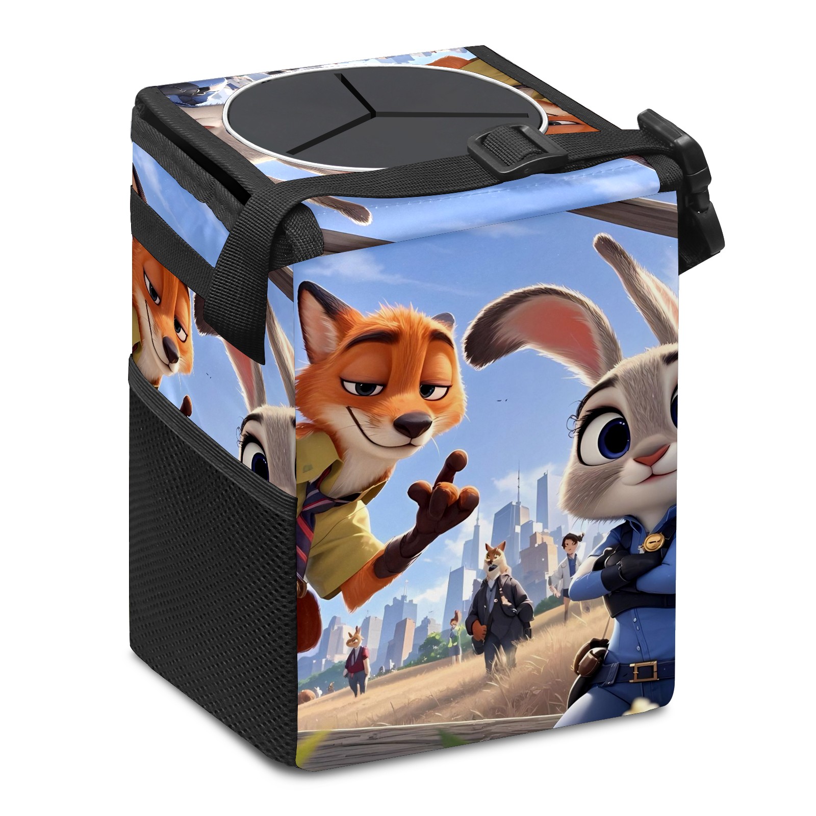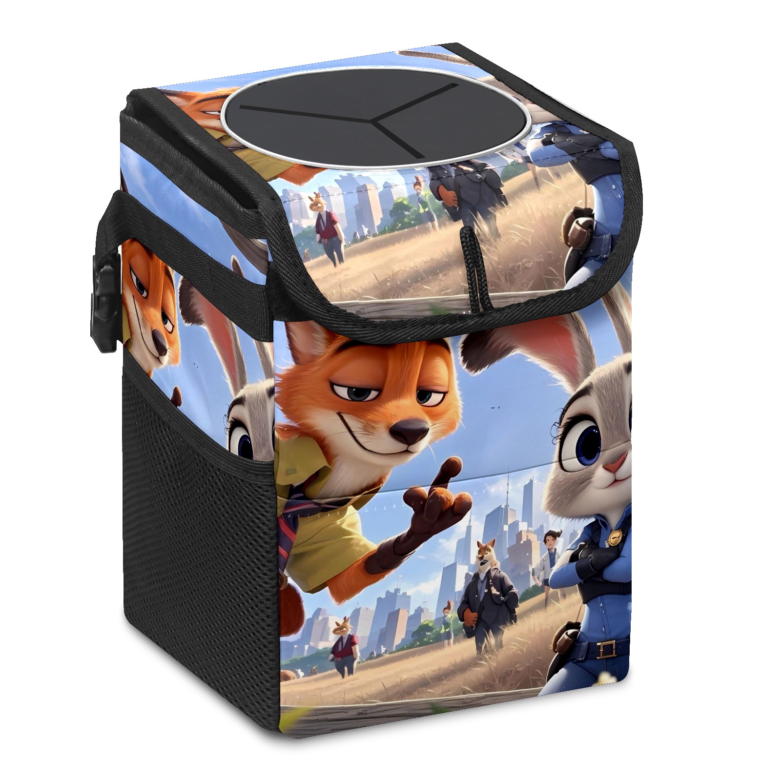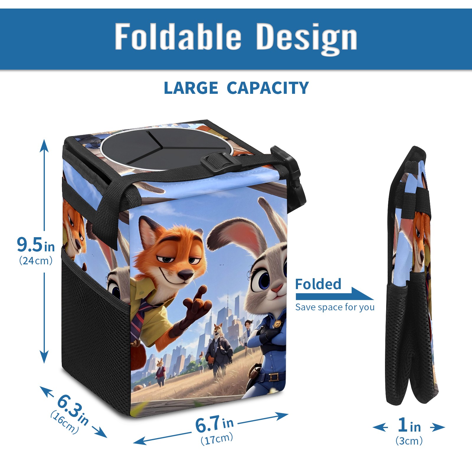 Car Trash Can with Lid, Small Portable Hanging Automotive Garbage Bin for Vehicles, Leakproof Waste Bag Container for SUV Truck Van Interior Auto Travel Road Trips(疯狂动物城 IPad版 08)