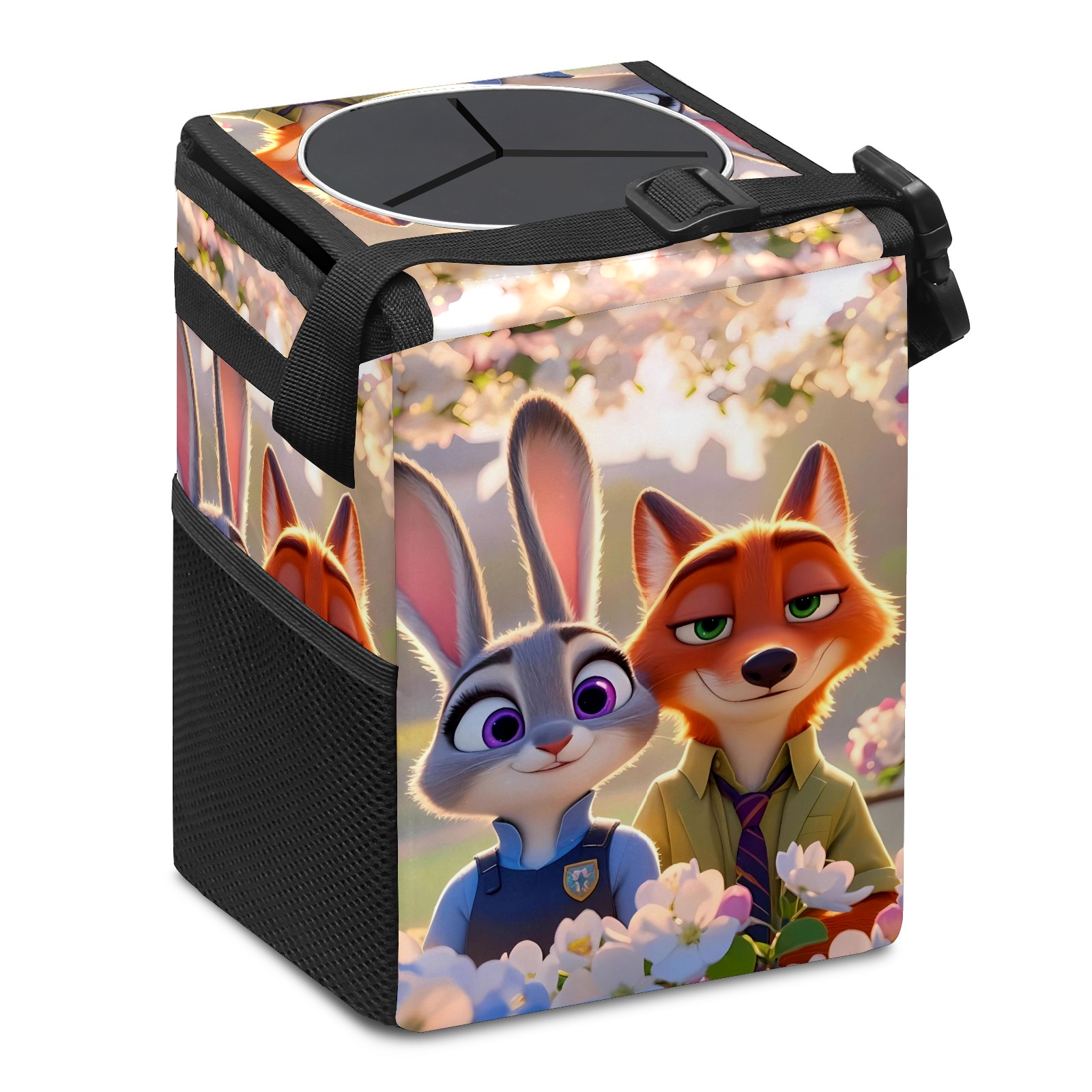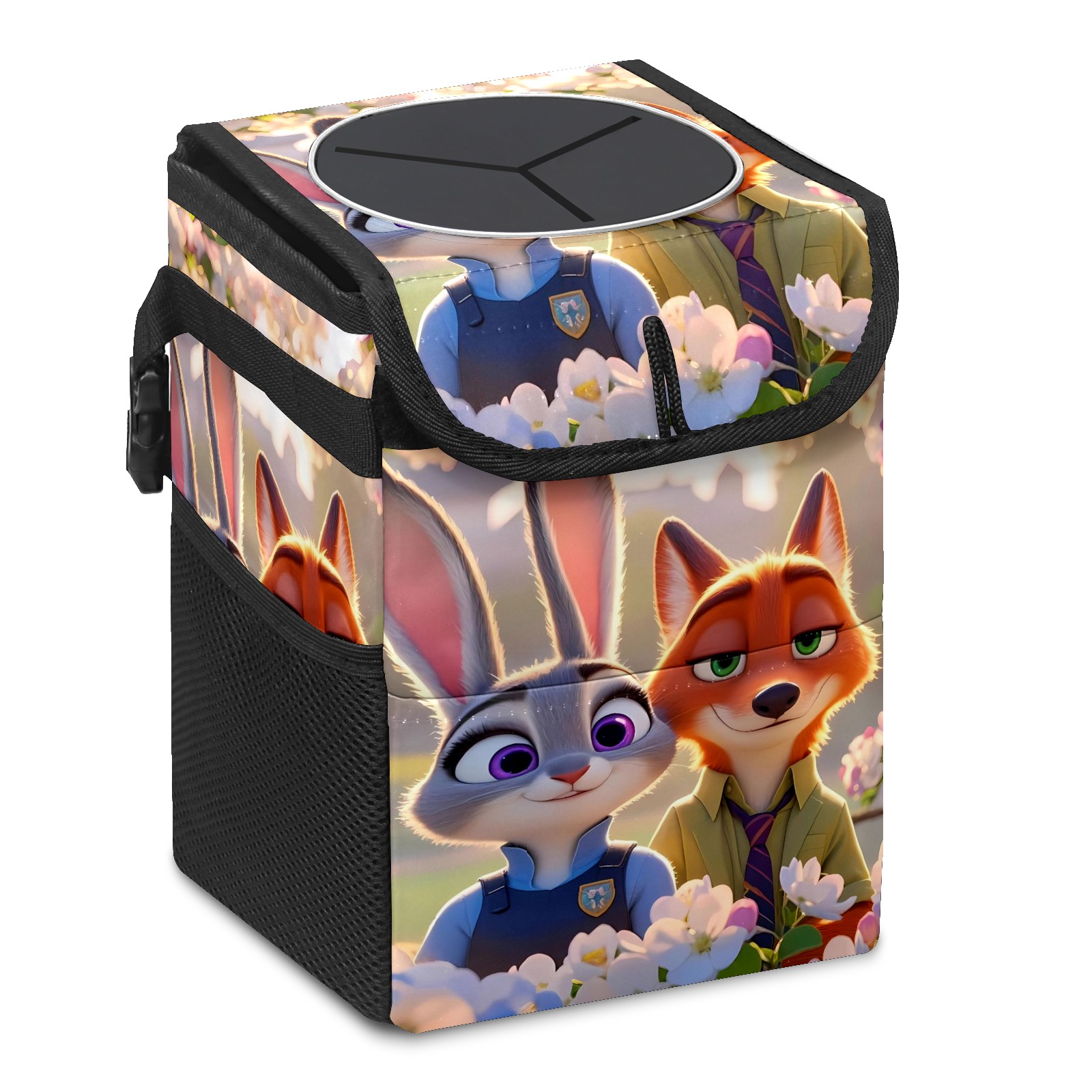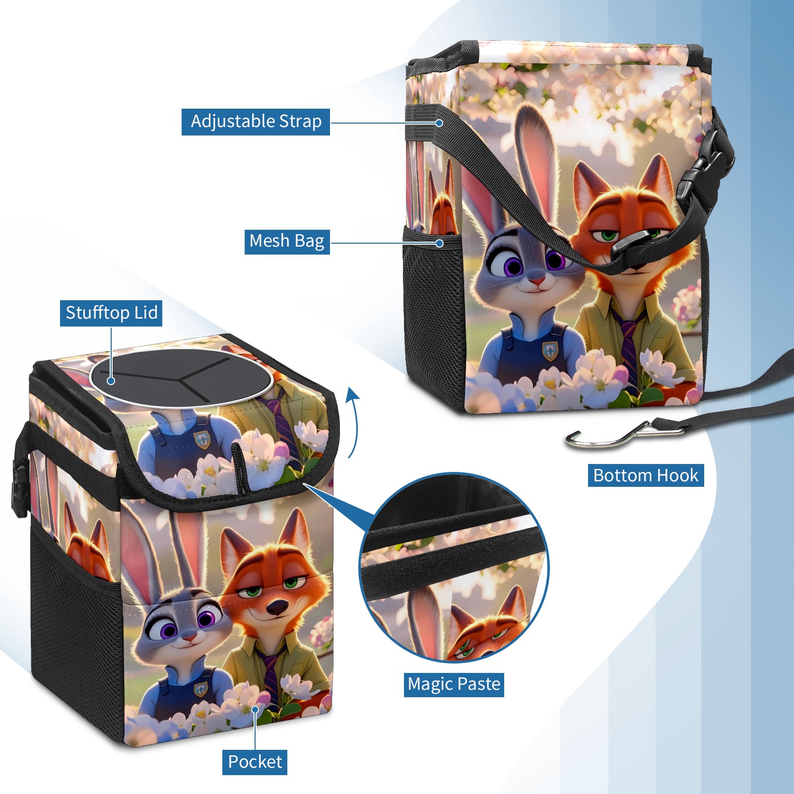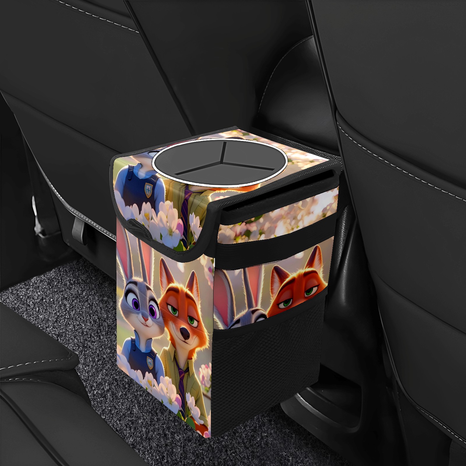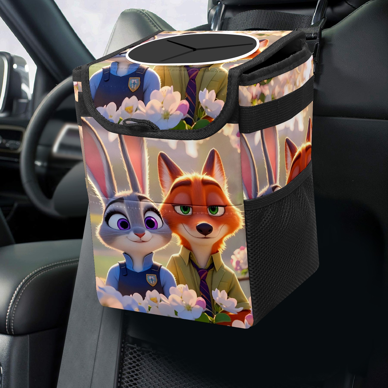 Car Trash Can with Lid, Small Portable Hanging Automotive Garbage Bin for Vehicles, Leakproof Waste Bag Container for SUV Truck Van Interior Auto Travel Road Trips(疯狂动物城 IPad版 04)