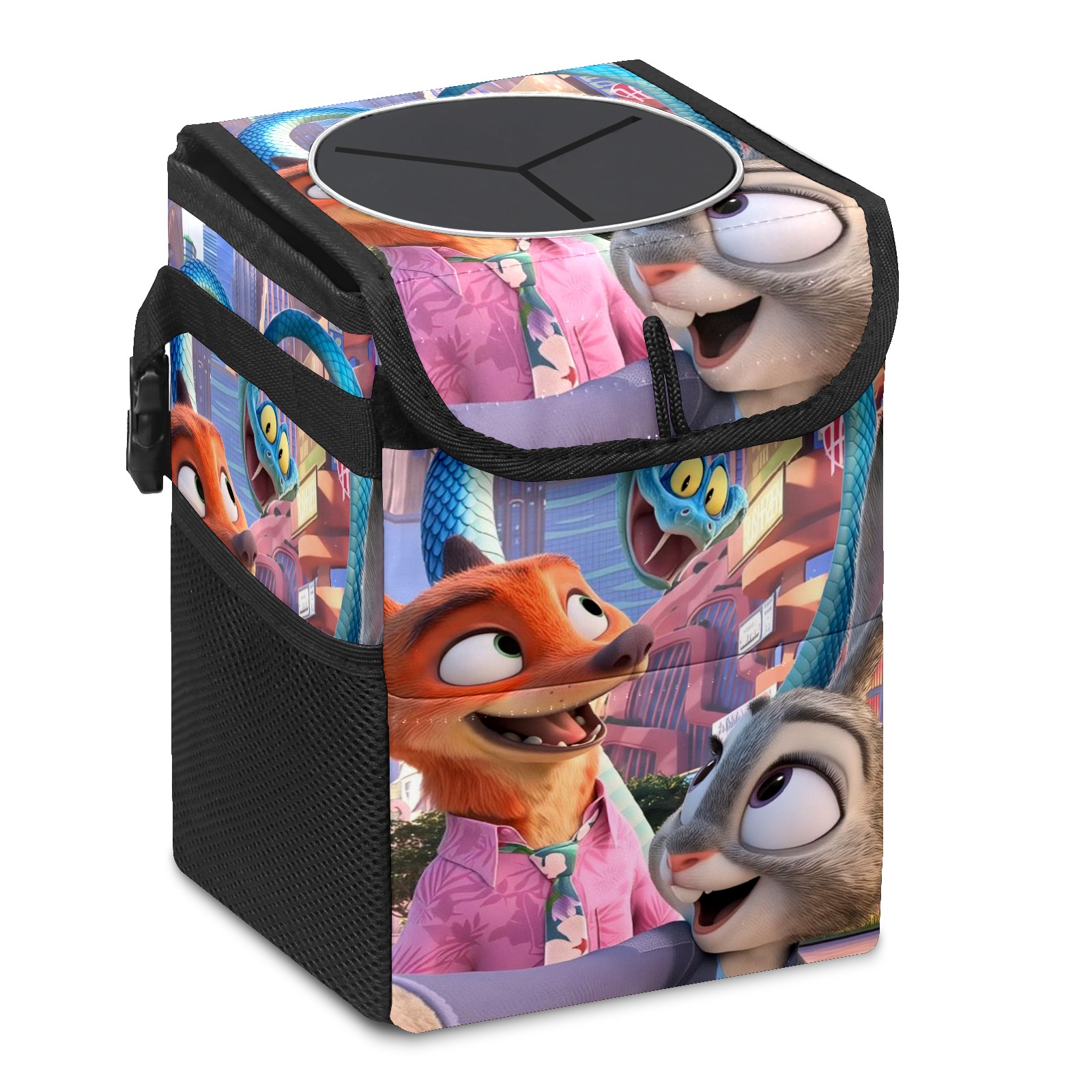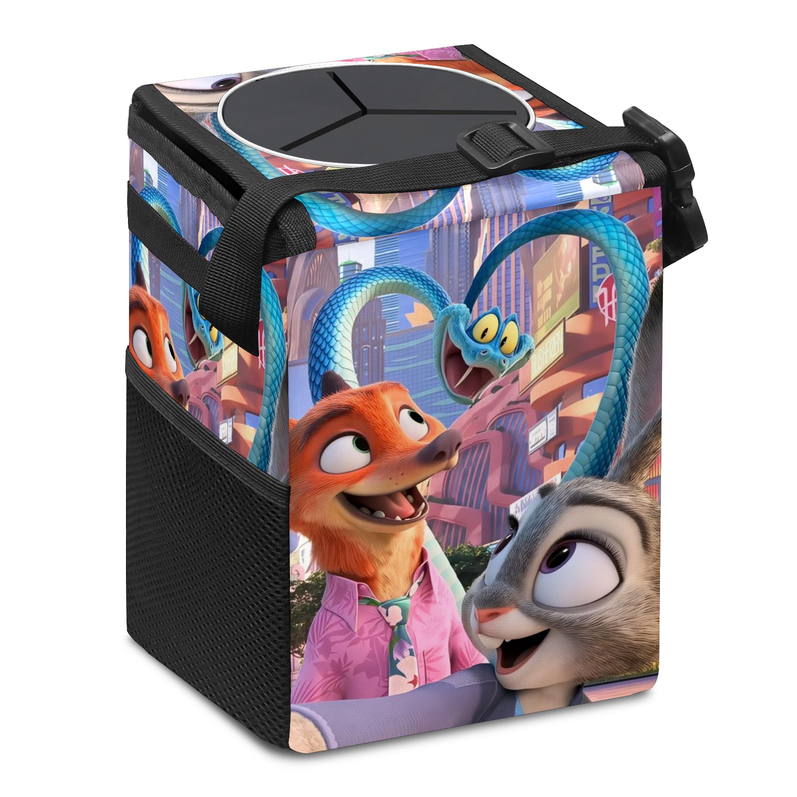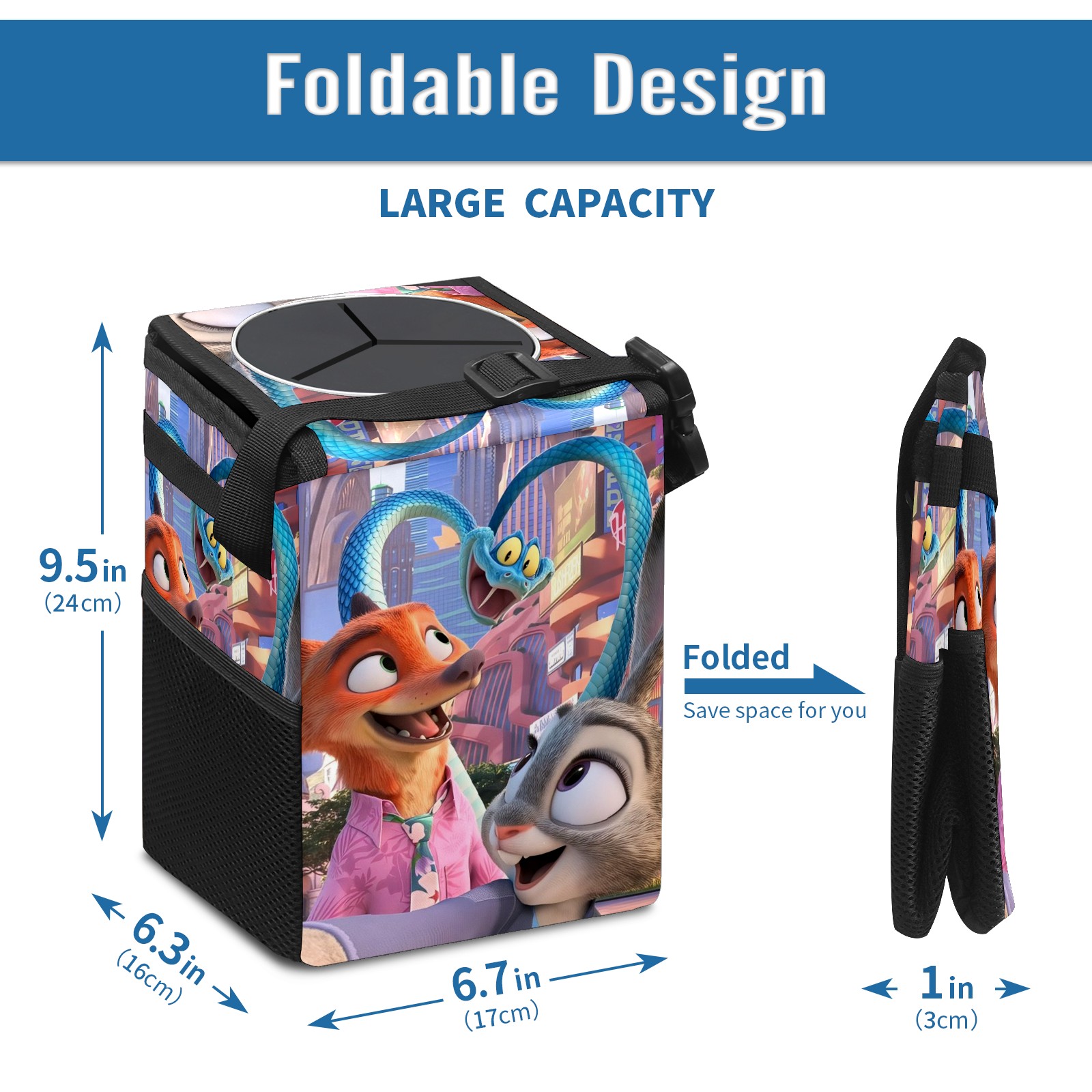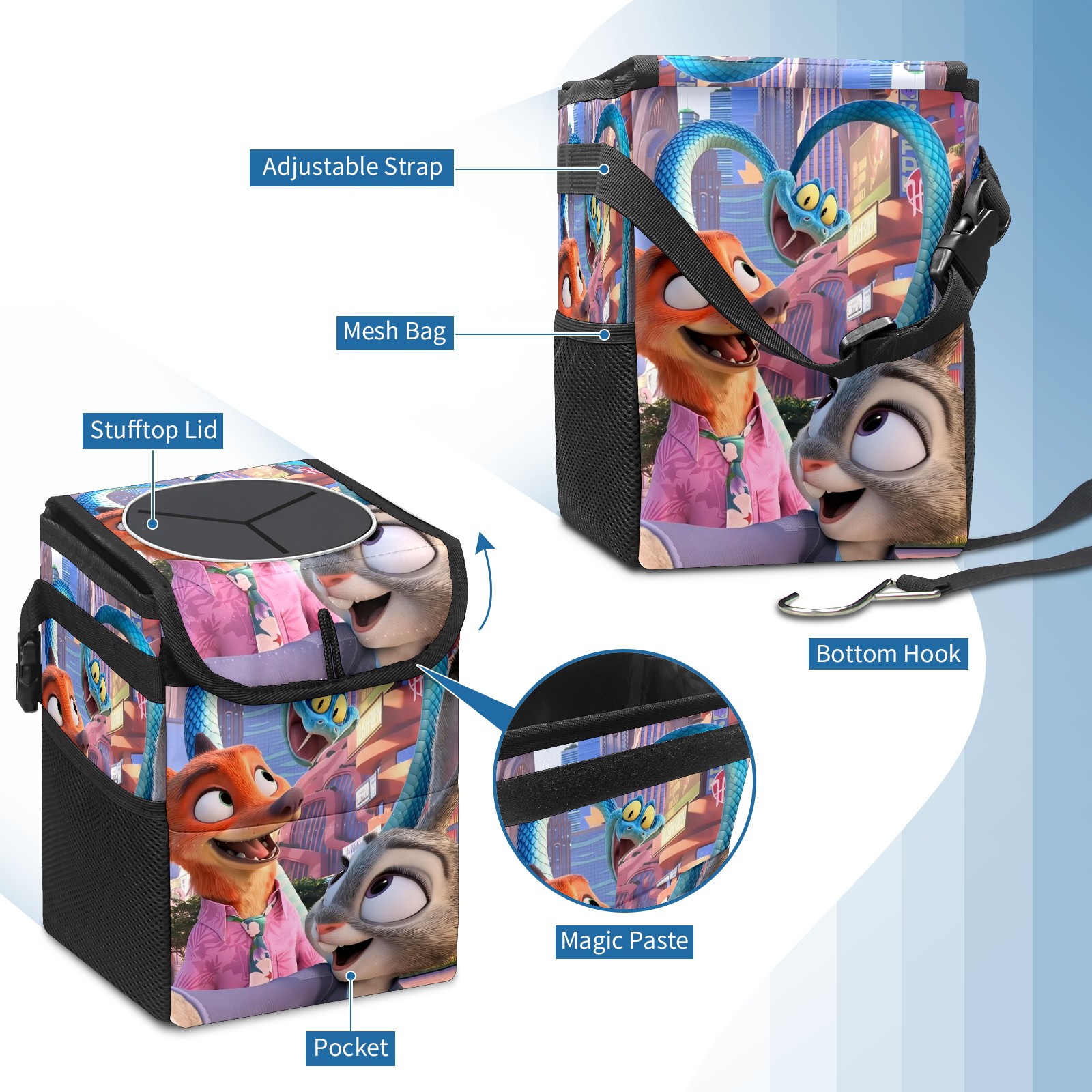 Car Trash Can with Lid, Small Portable Hanging Automotive Garbage Bin for Vehicles, Leakproof Waste Bag Container for SUV Truck Van Interior Auto Travel Road Trips(疯狂动物城 电脑02)
