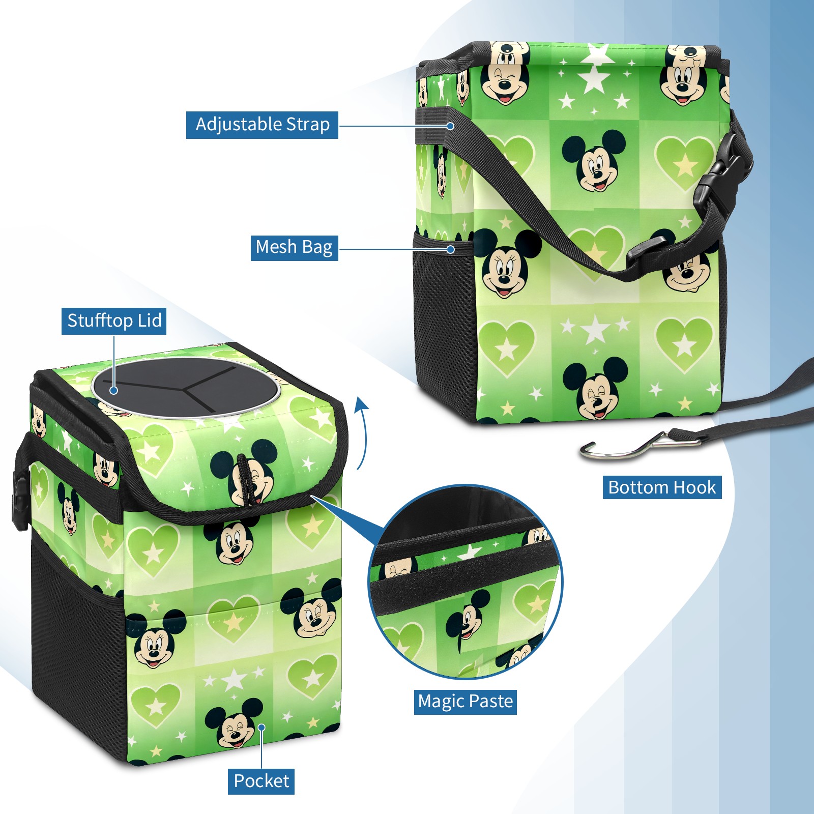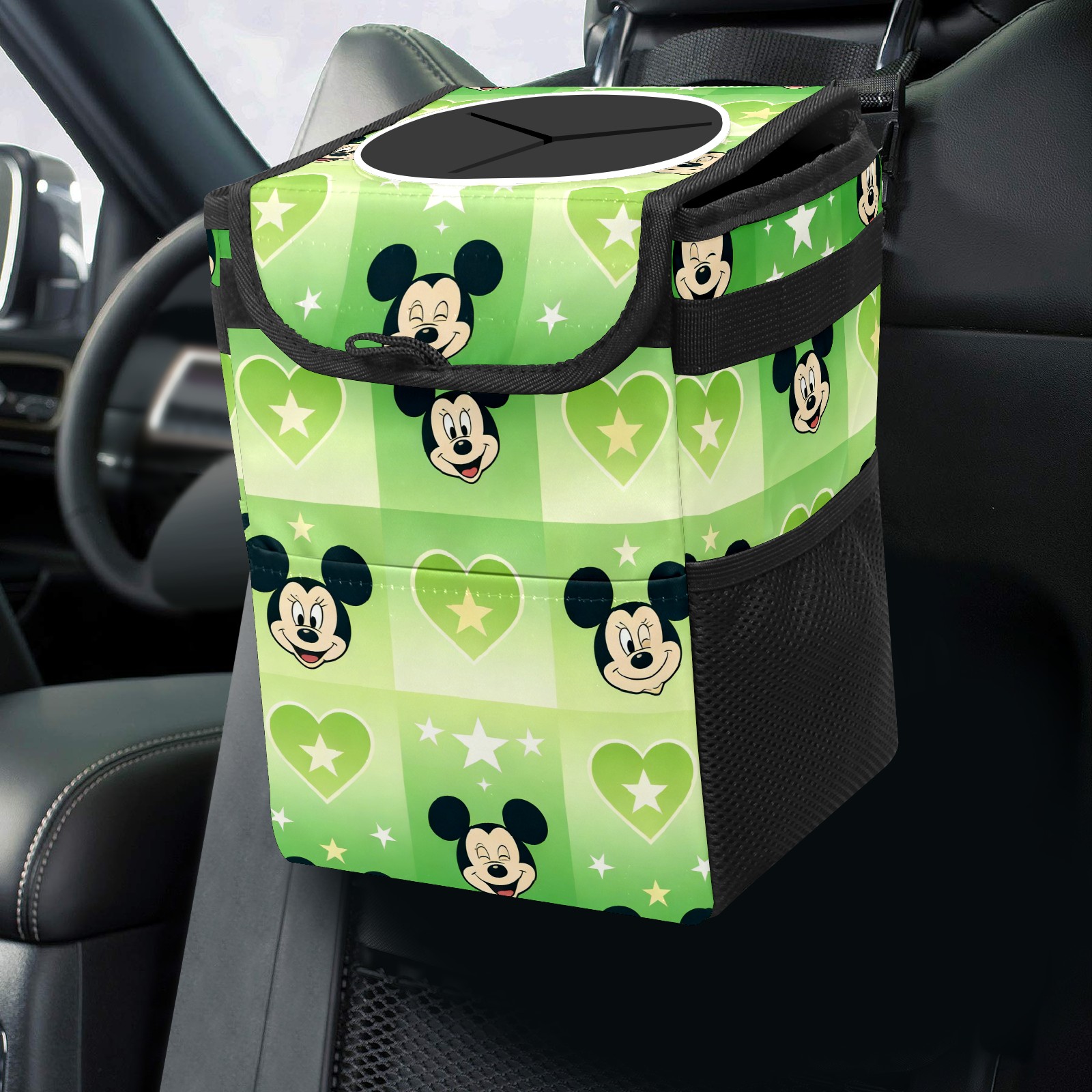 Car Trash Can with Lid, Small Portable Hanging Automotive Garbage Bin for Vehicles, Leakproof Waste Bag Container for SUV Truck Van Interior Auto Travel Road Trips(Mouse Green)