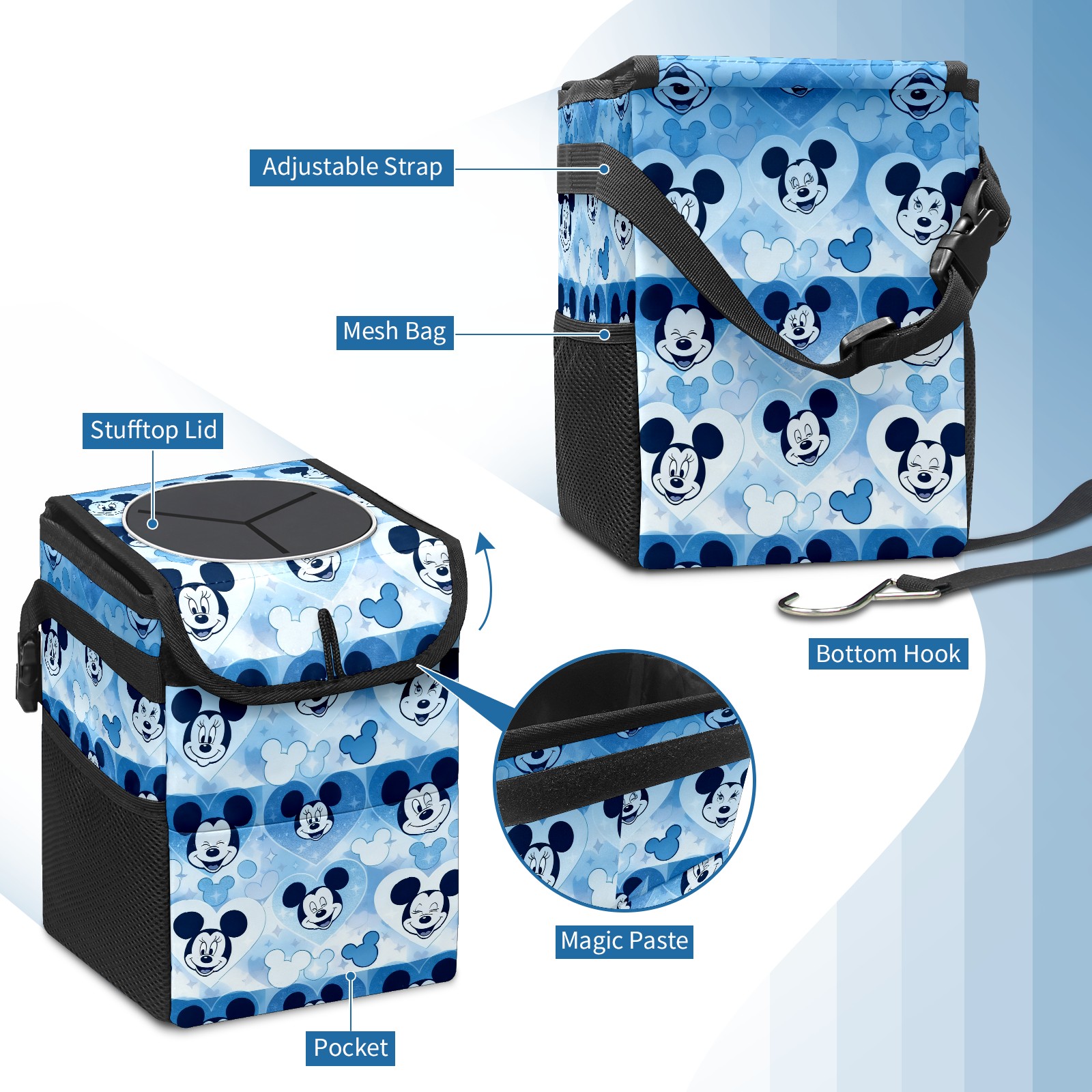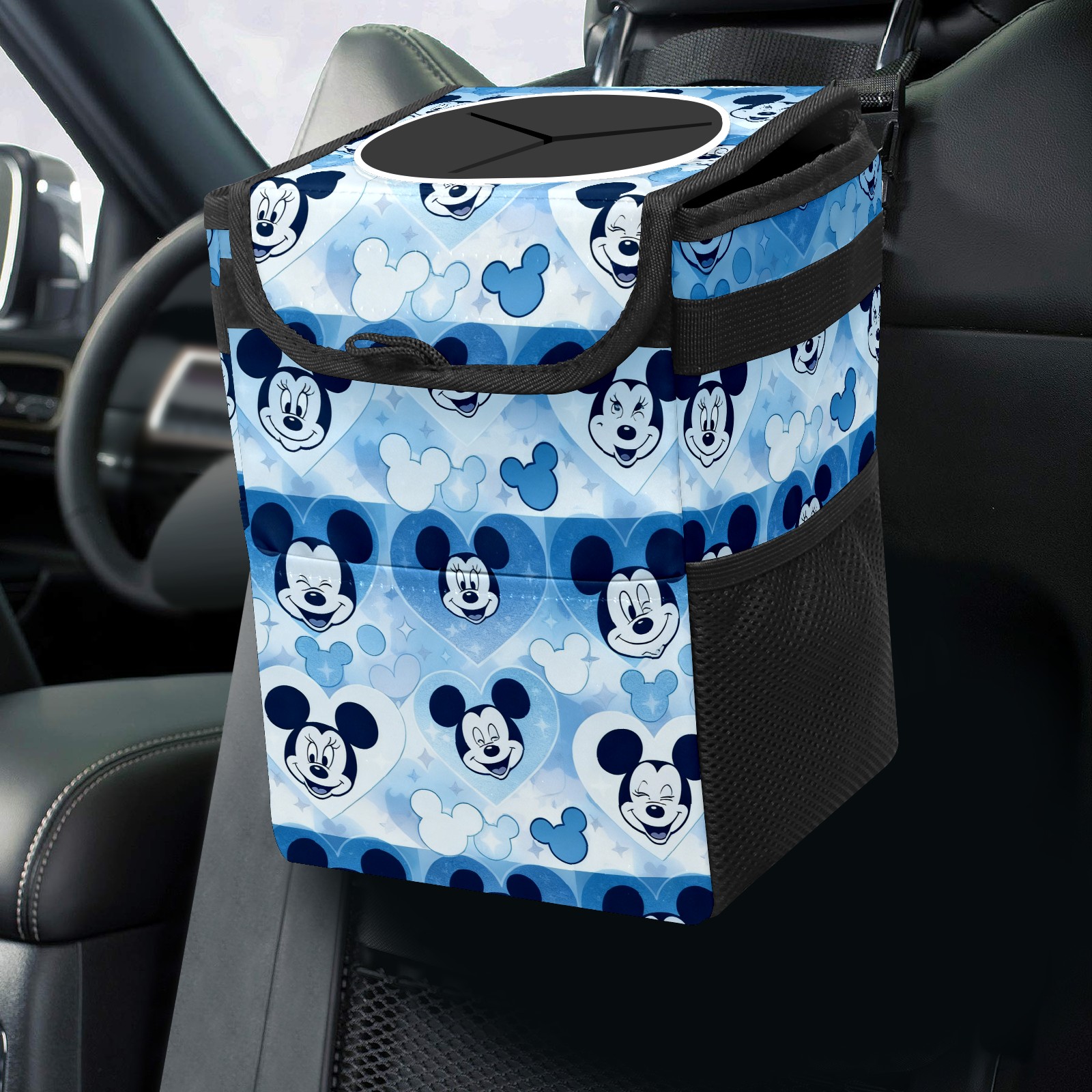 Car Trash Can with Lid, Small Portable Hanging Automotive Garbage Bin for Vehicles, Leakproof Waste Bag Container for SUV Truck Van Interior Auto Travel Road Trips(Vibrant Mouse Blue)