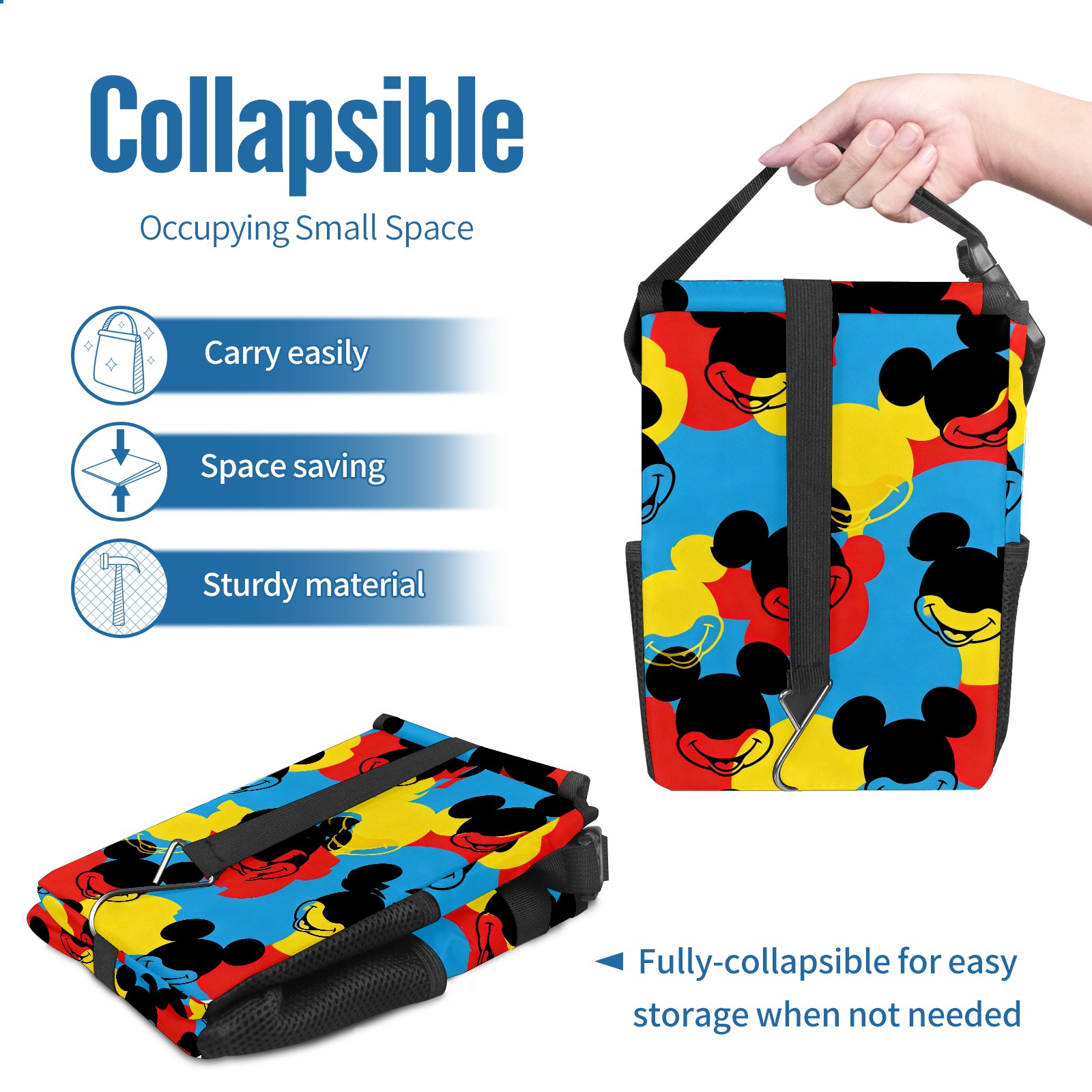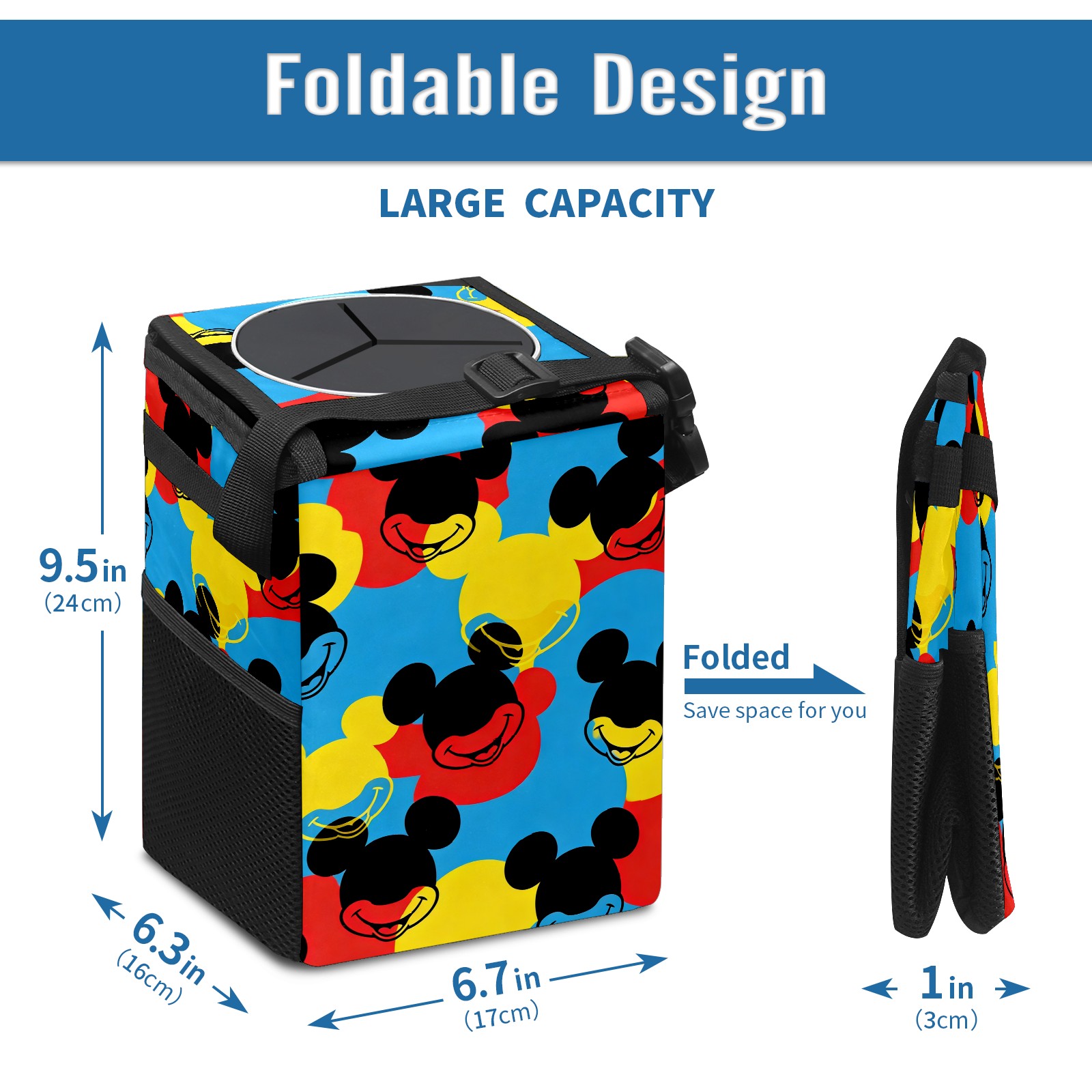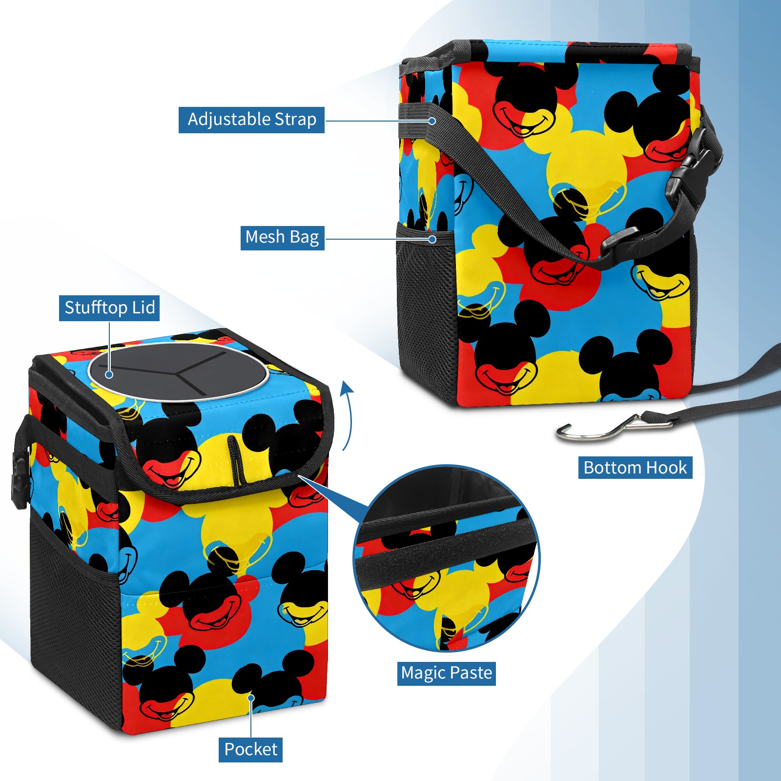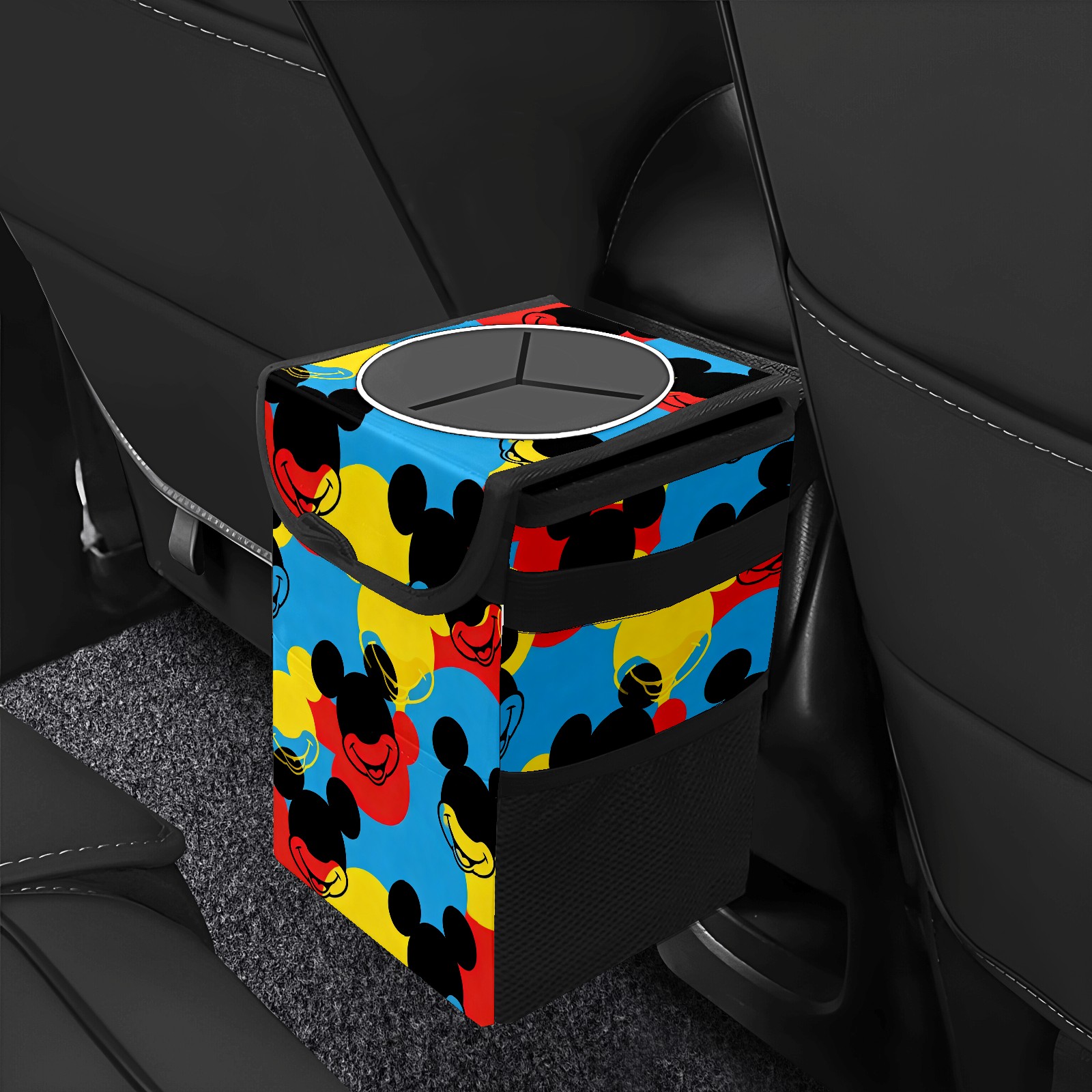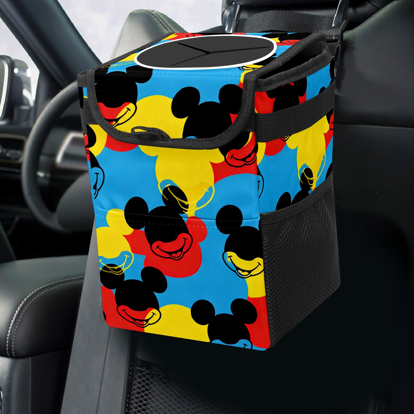 Car Trash Can with Lid, Small Portable Hanging Automotive Garbage Bin for Vehicles, Leakproof Waste Bag Container for SUV Truck Van Interior Auto Travel Road Trips(Mouse Head Multi)