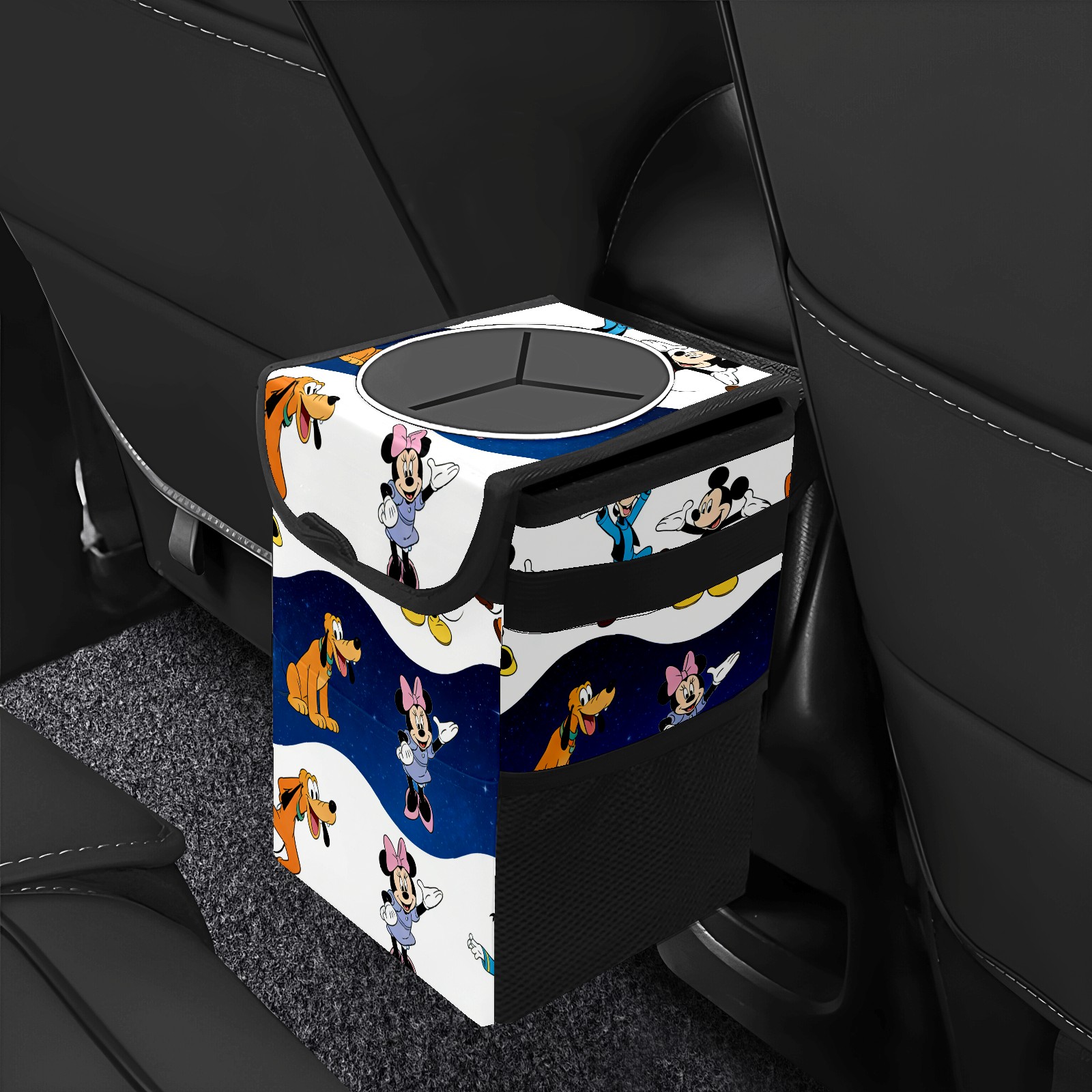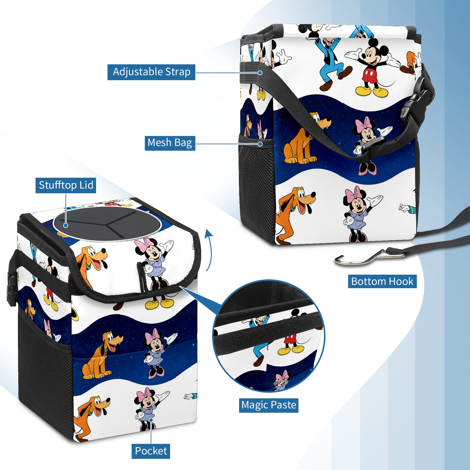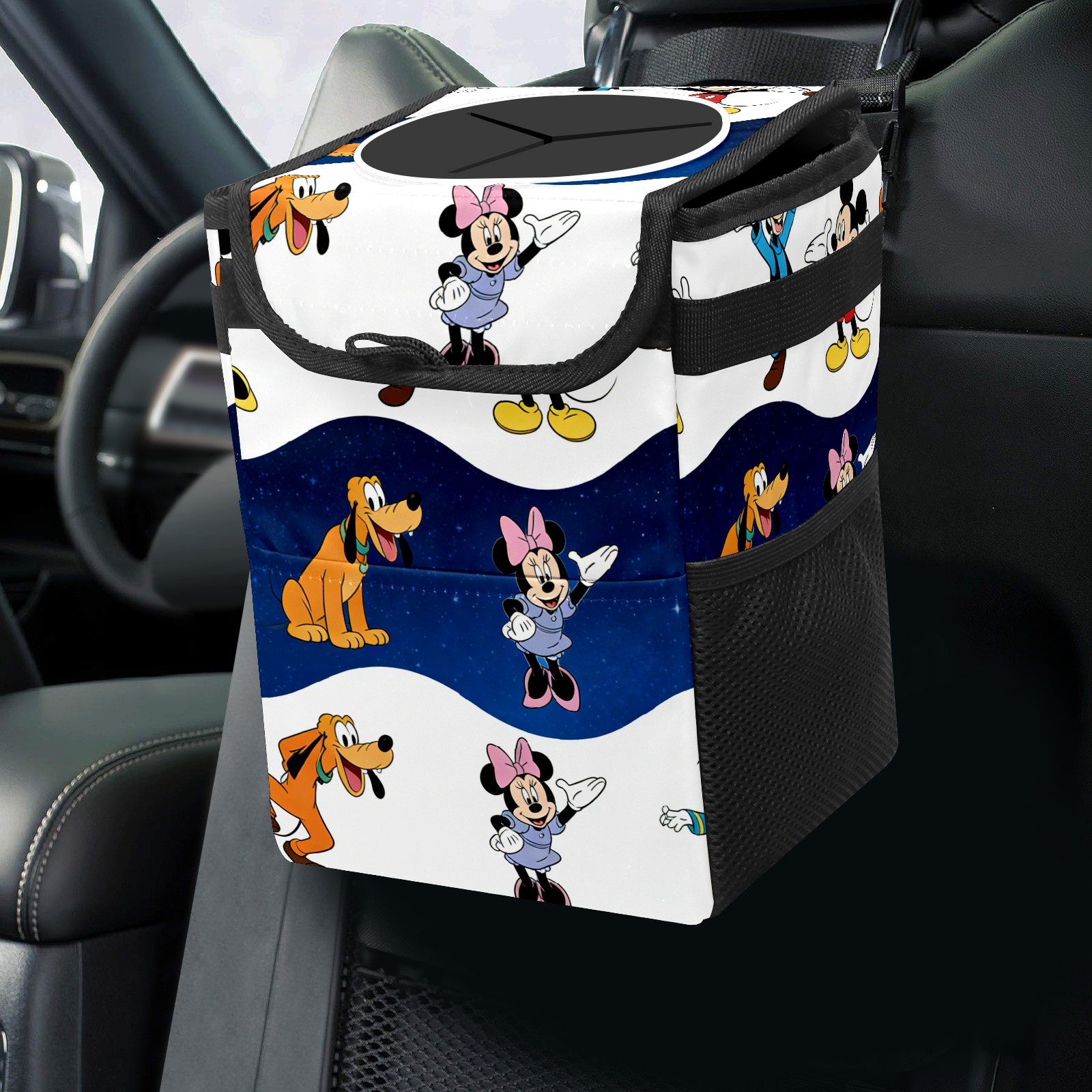 Car Trash Can with Lid, Small Portable Hanging Automotive Garbage Bin for Vehicles, Leakproof Waste Bag Container for SUV Truck Van Interior Auto Travel Road Trips(Cheerful Character White)