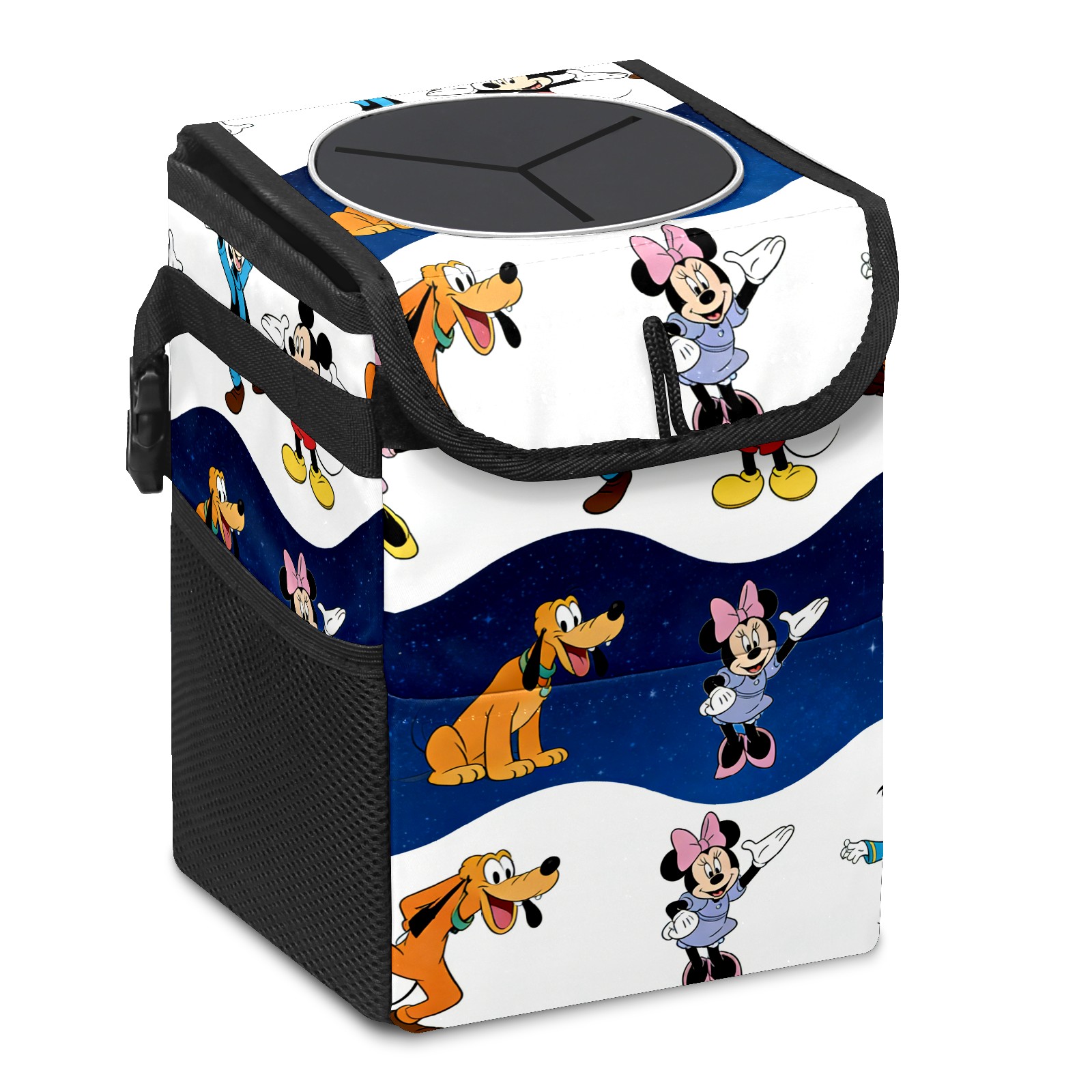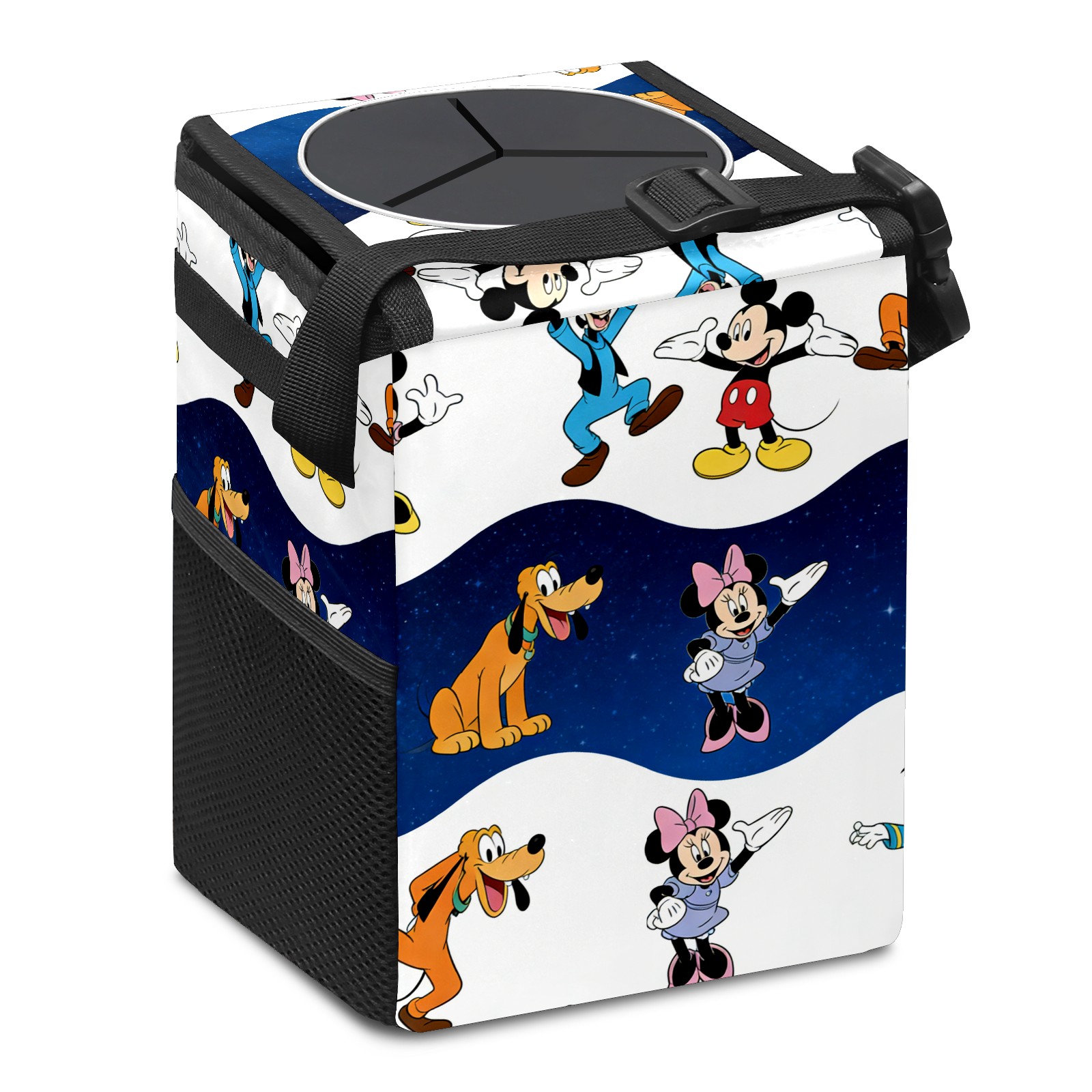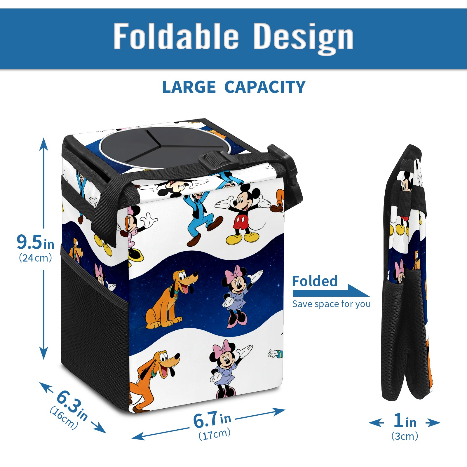 Car Trash Can with Lid, Small Portable Hanging Automotive Garbage Bin for Vehicles, Leakproof Waste Bag Container for SUV Truck Van Interior Auto Travel Road Trips(Cheerful Character White)