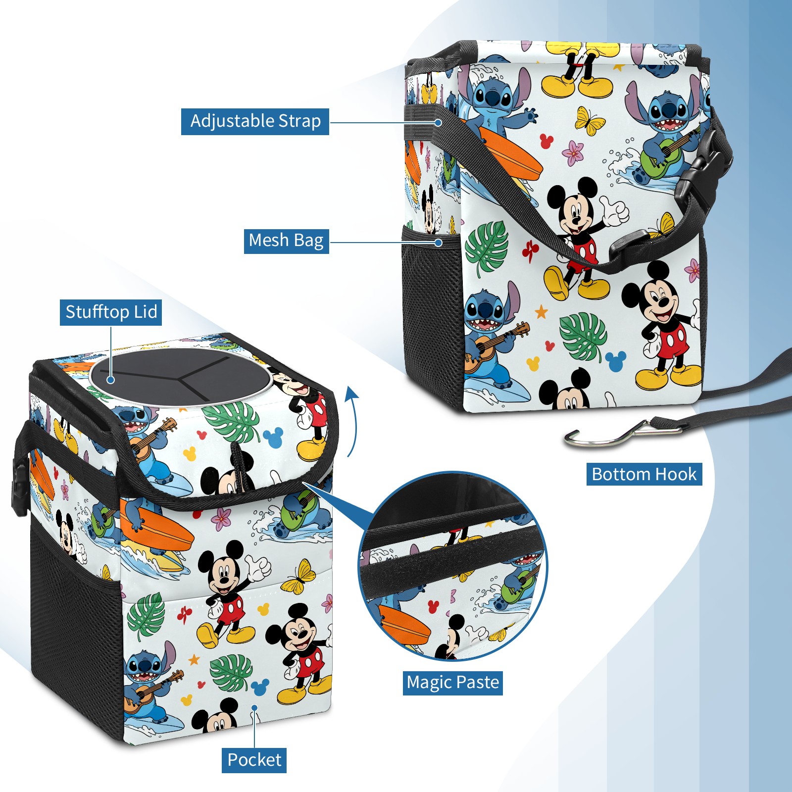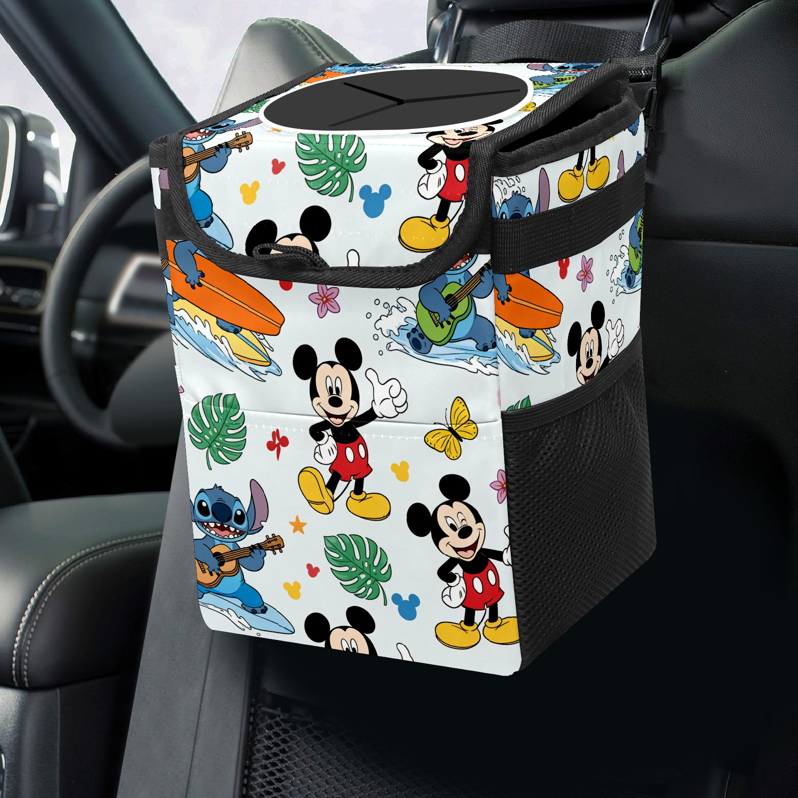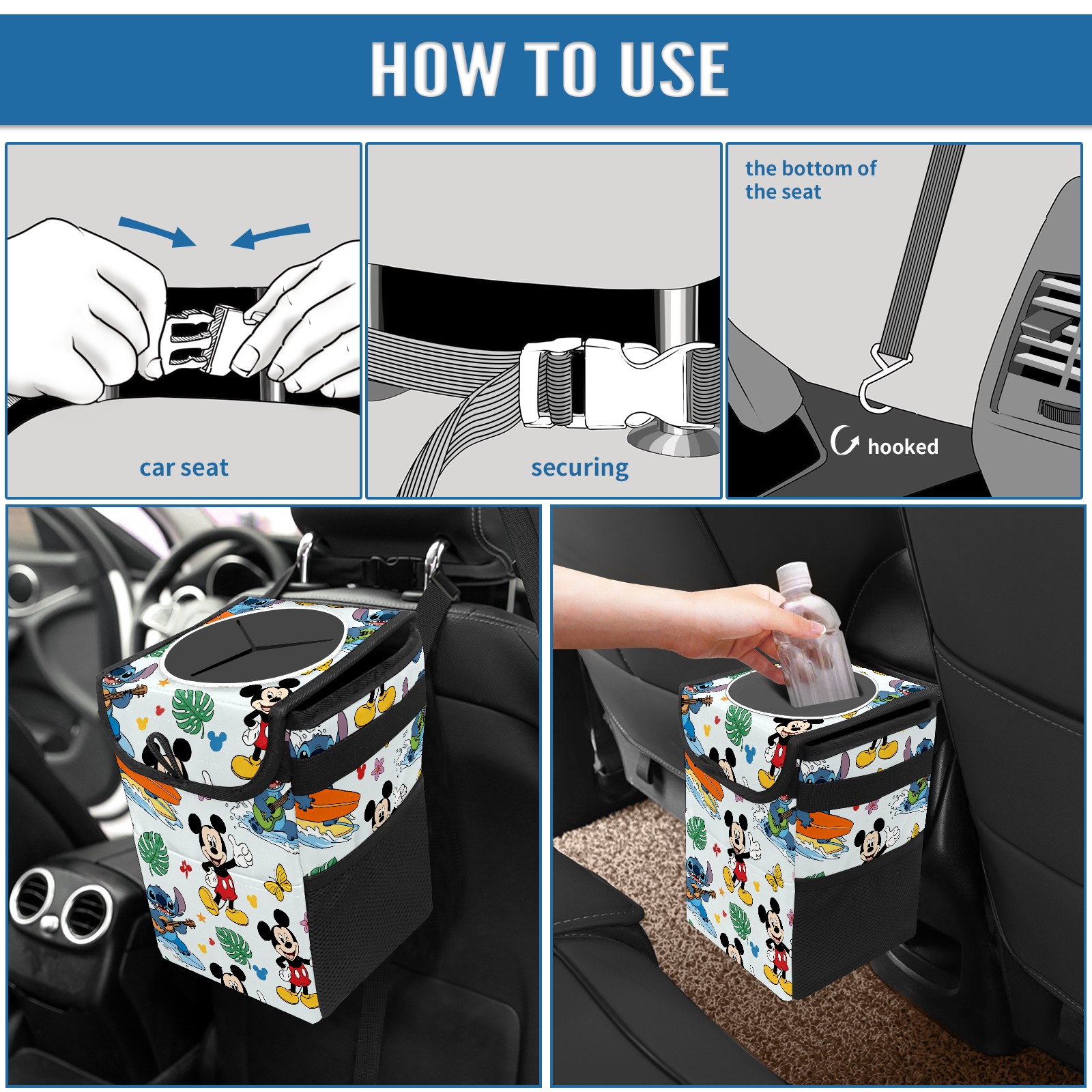 Car Trash Can with Lid, Small Portable Hanging Automotive Garbage Bin for Vehicles, Leakproof Waste Bag Container for SUV Truck Van Interior Auto Travel Road Trips(Vibrant Character Blue)