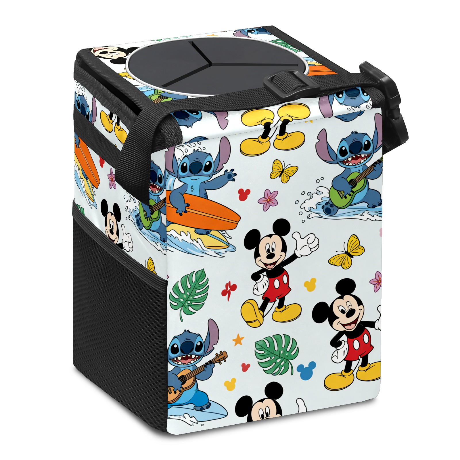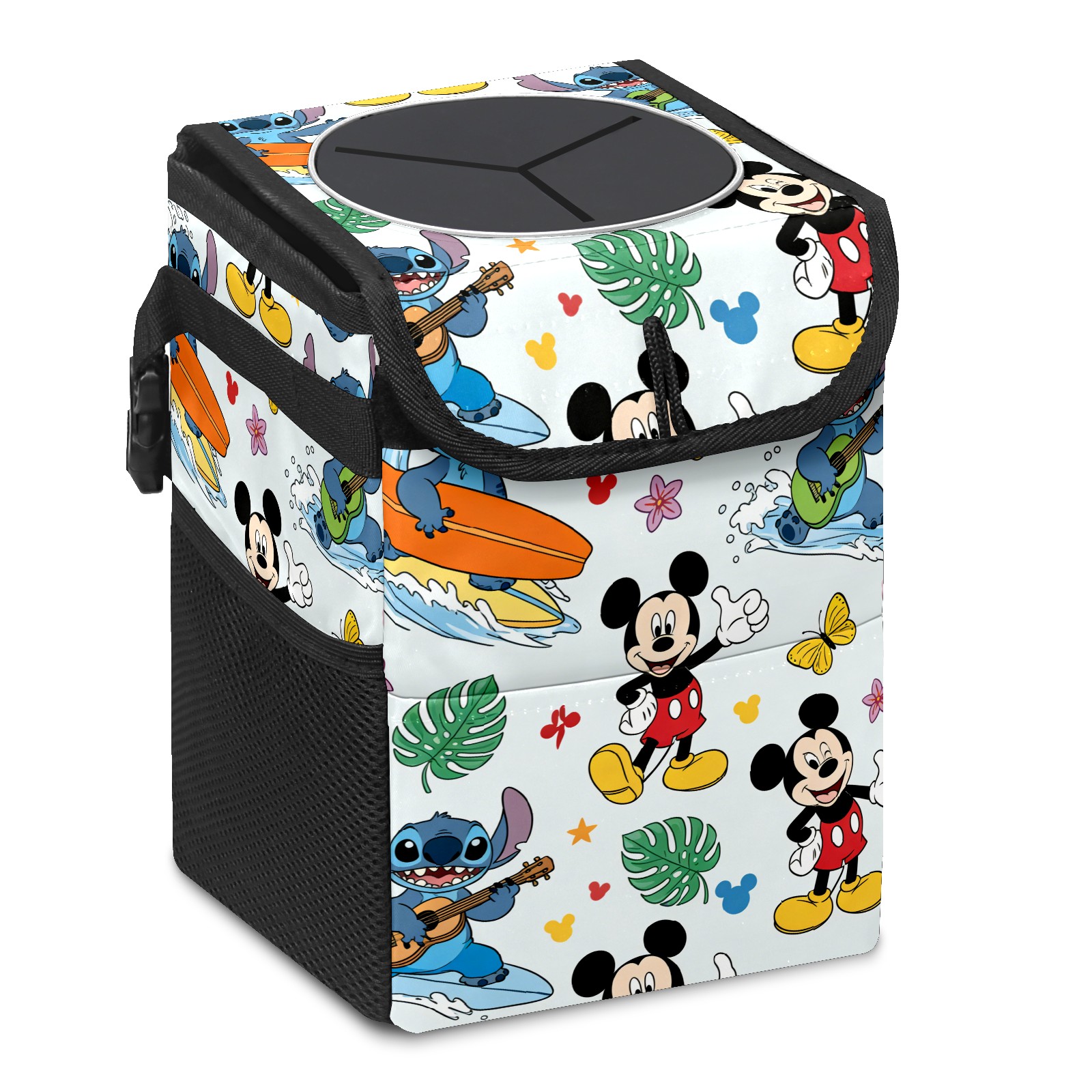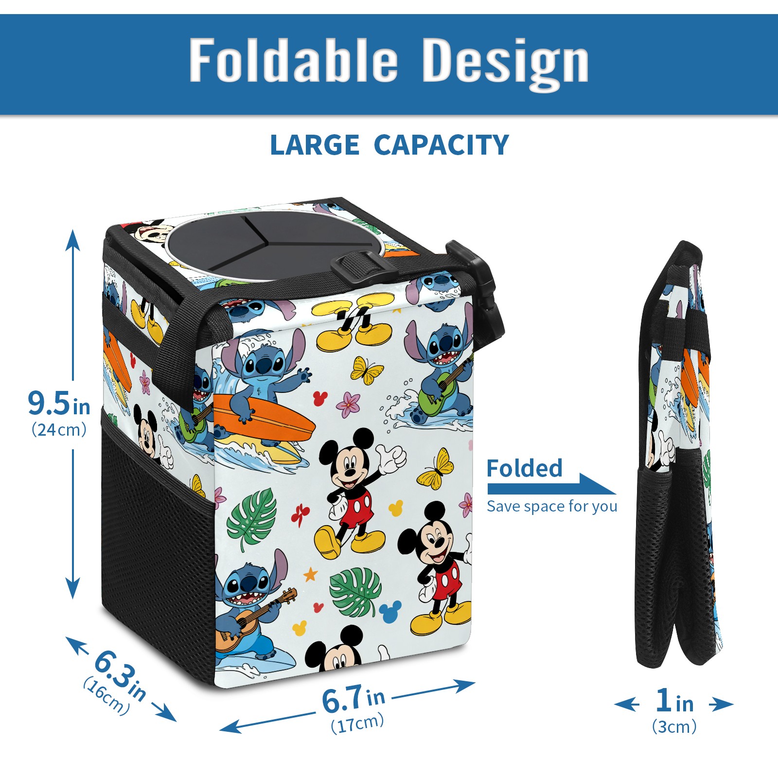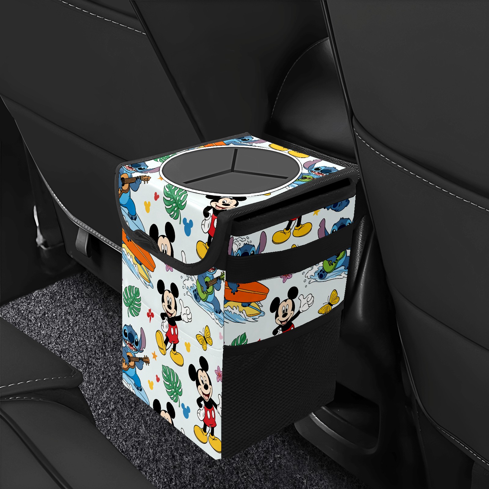 Car Trash Can with Lid, Small Portable Hanging Automotive Garbage Bin for Vehicles, Leakproof Waste Bag Container for SUV Truck Van Interior Auto Travel Road Trips(Vibrant Character Blue)