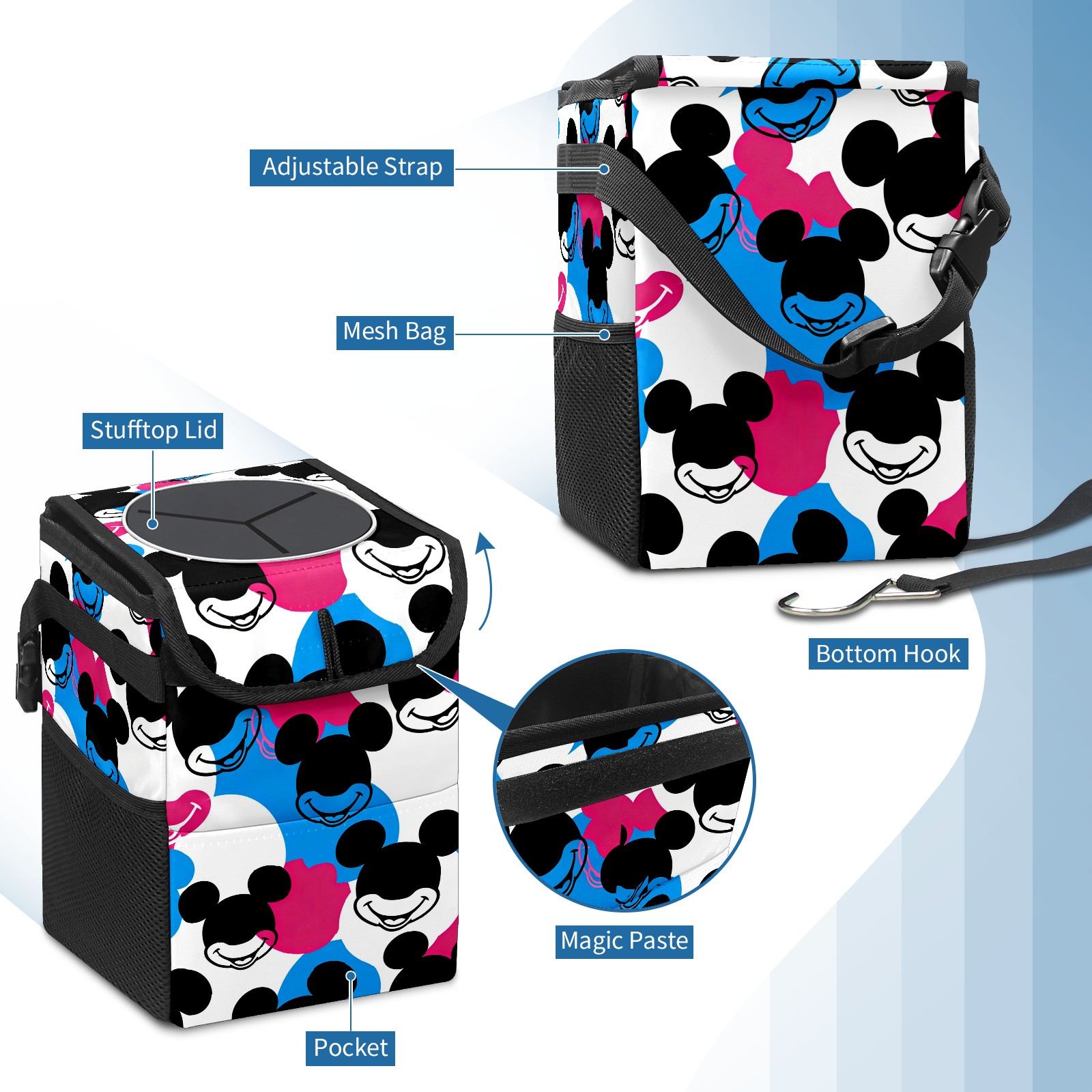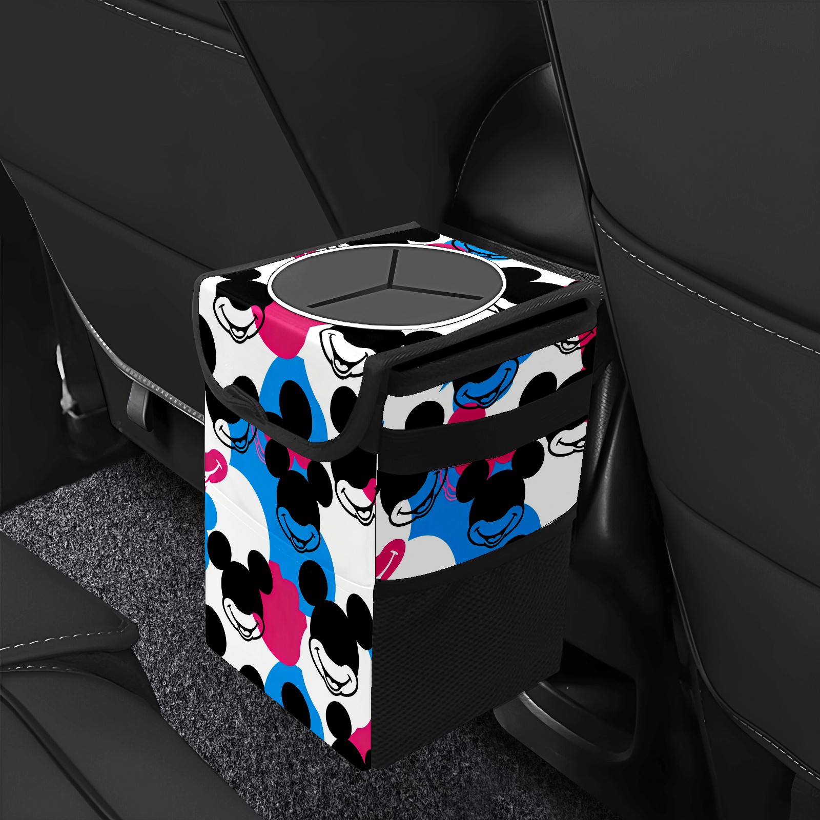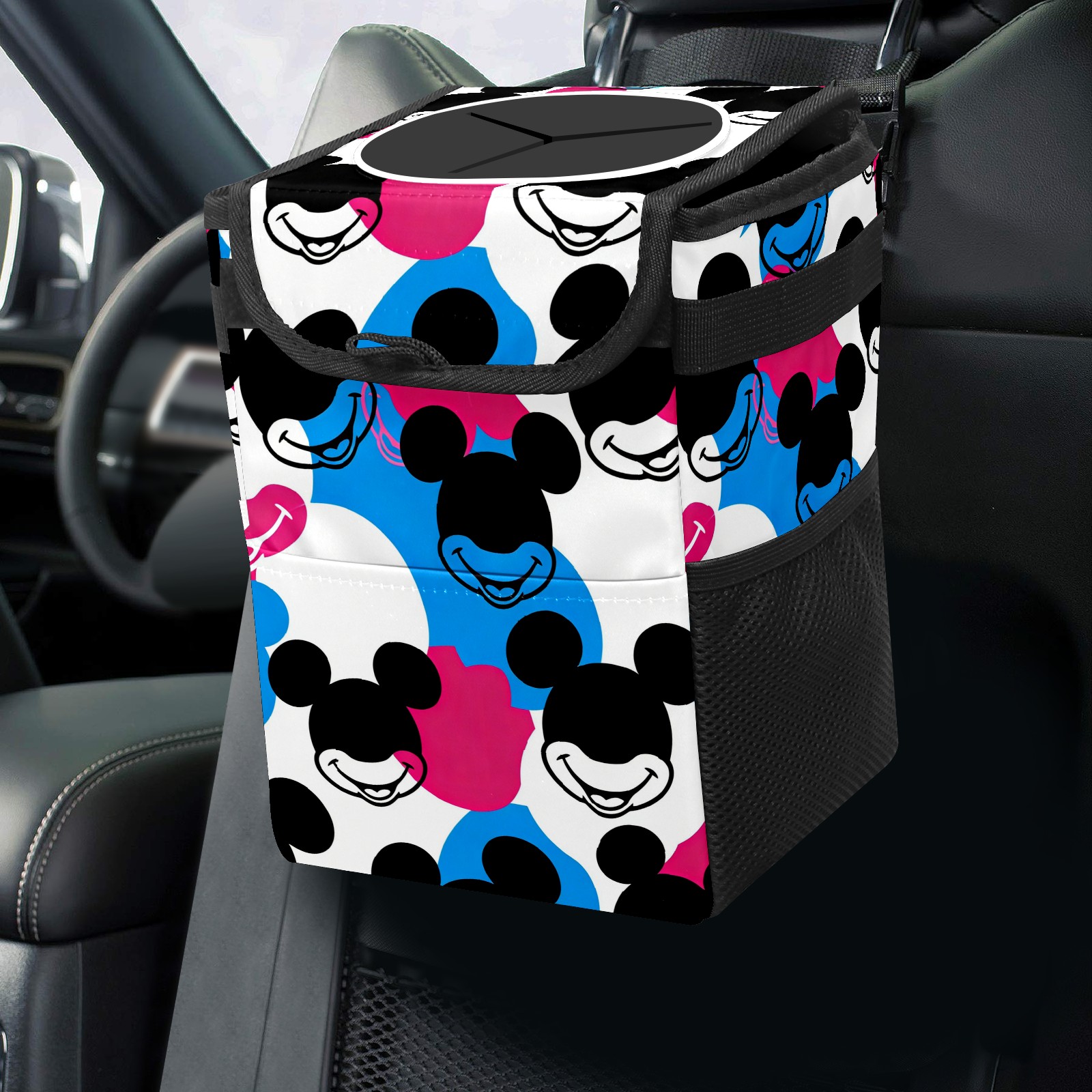Car Trash Can with Lid, Small Portable Hanging Automotive Garbage Bin for Vehicles, Leakproof Waste Bag Container for SUV Truck Van Interior Auto Travel Road Trips(Dynamic Mouse Black)