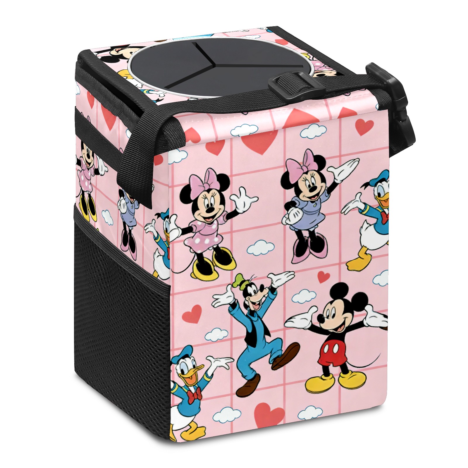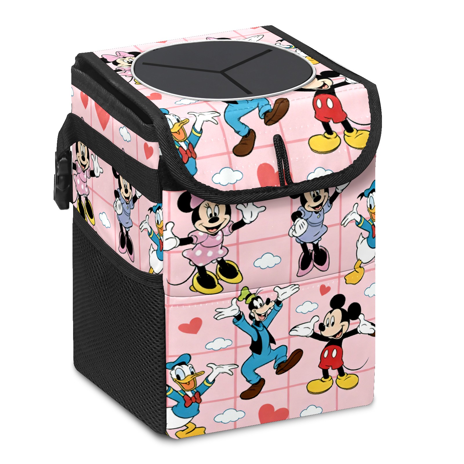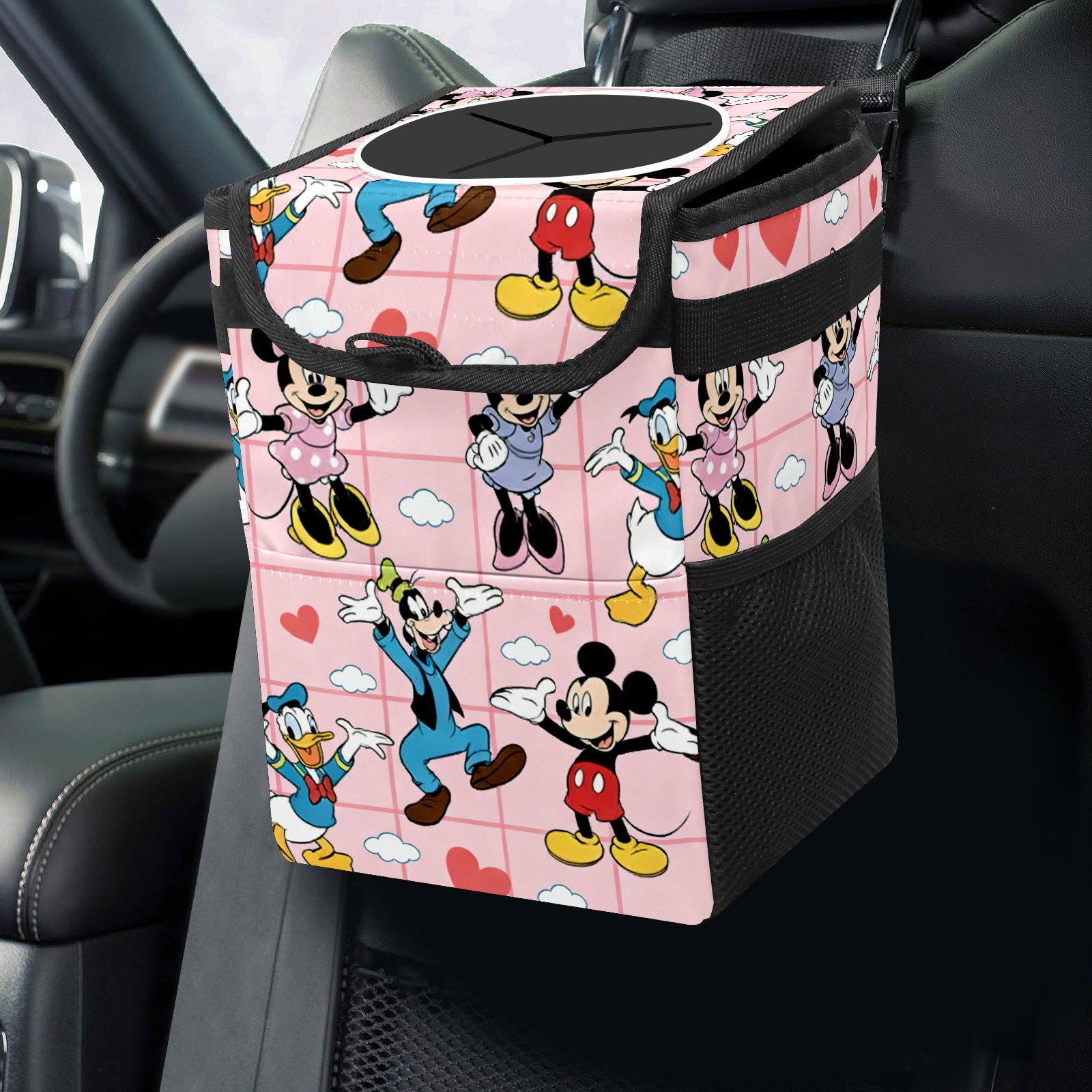 Car Trash Can with Lid, Small Portable Hanging Automotive Garbage Bin for Vehicles, Leakproof Waste Bag Container for SUV Truck Van Interior Auto Travel Road Trips(Dreamy Character Pink)