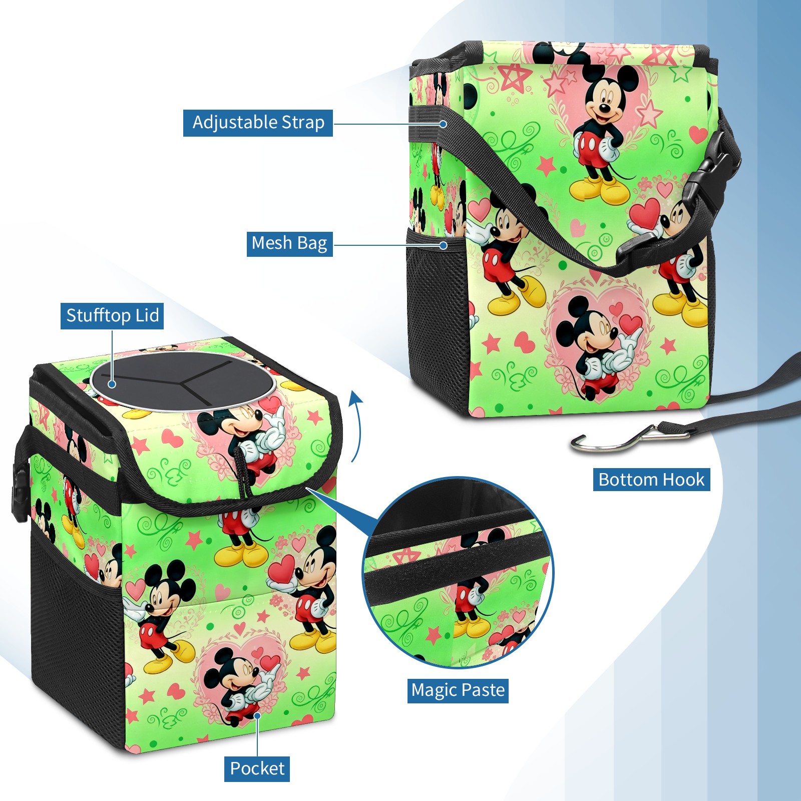 Car Trash Can with Lid, Small Portable Hanging Automotive Garbage Bin for Vehicles, Leakproof Waste Bag Container for SUV Truck Van Interior Auto Travel Road Trips(Fresh Mouse Green)