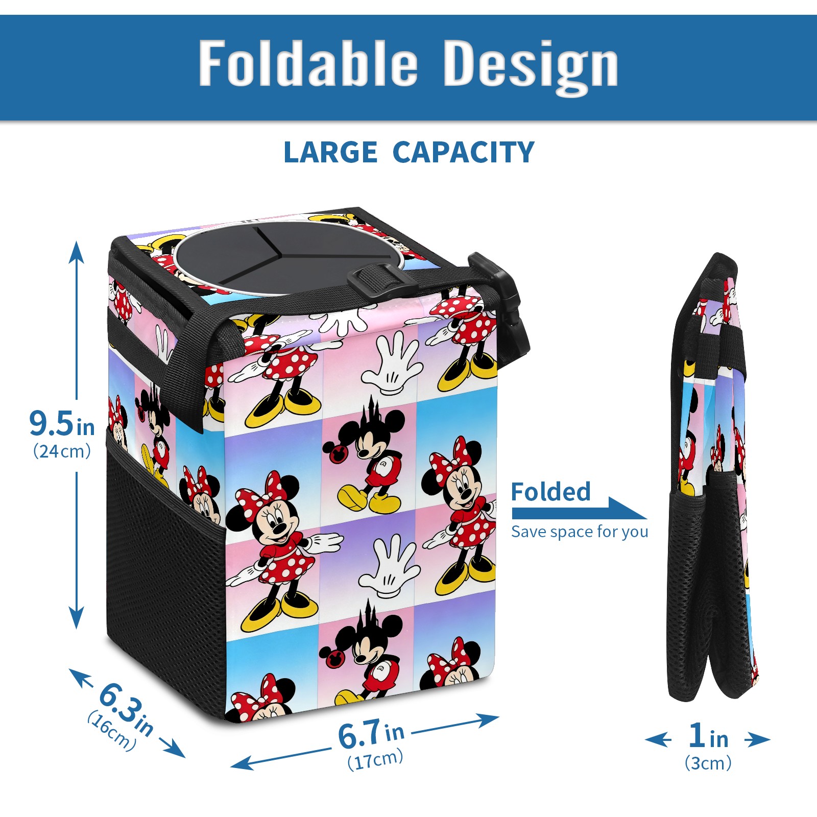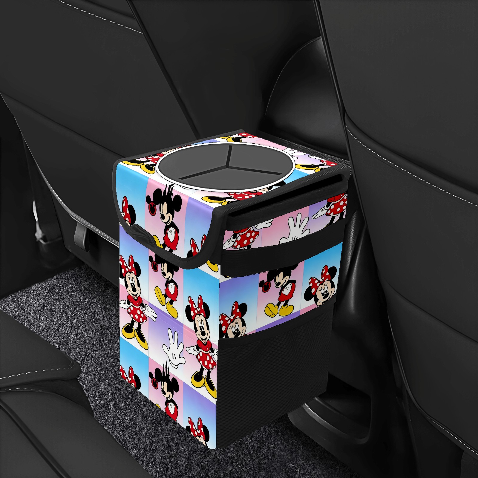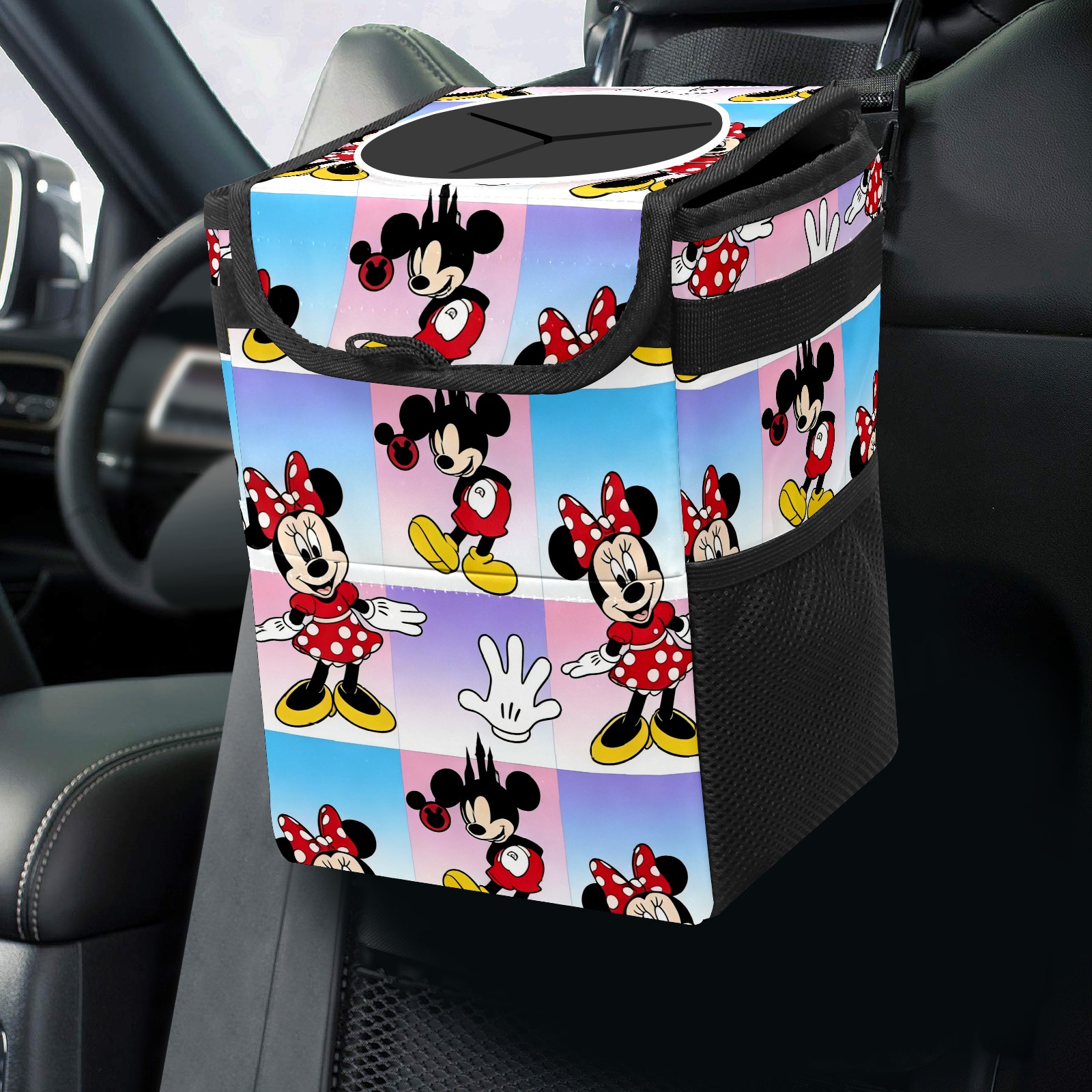 Car Trash Can with Lid, Small Portable Hanging Automotive Garbage Bin for Vehicles, Leakproof Waste Bag Container for SUV Truck Van Interior Auto Travel Road Trips(Mouse Red-Black)