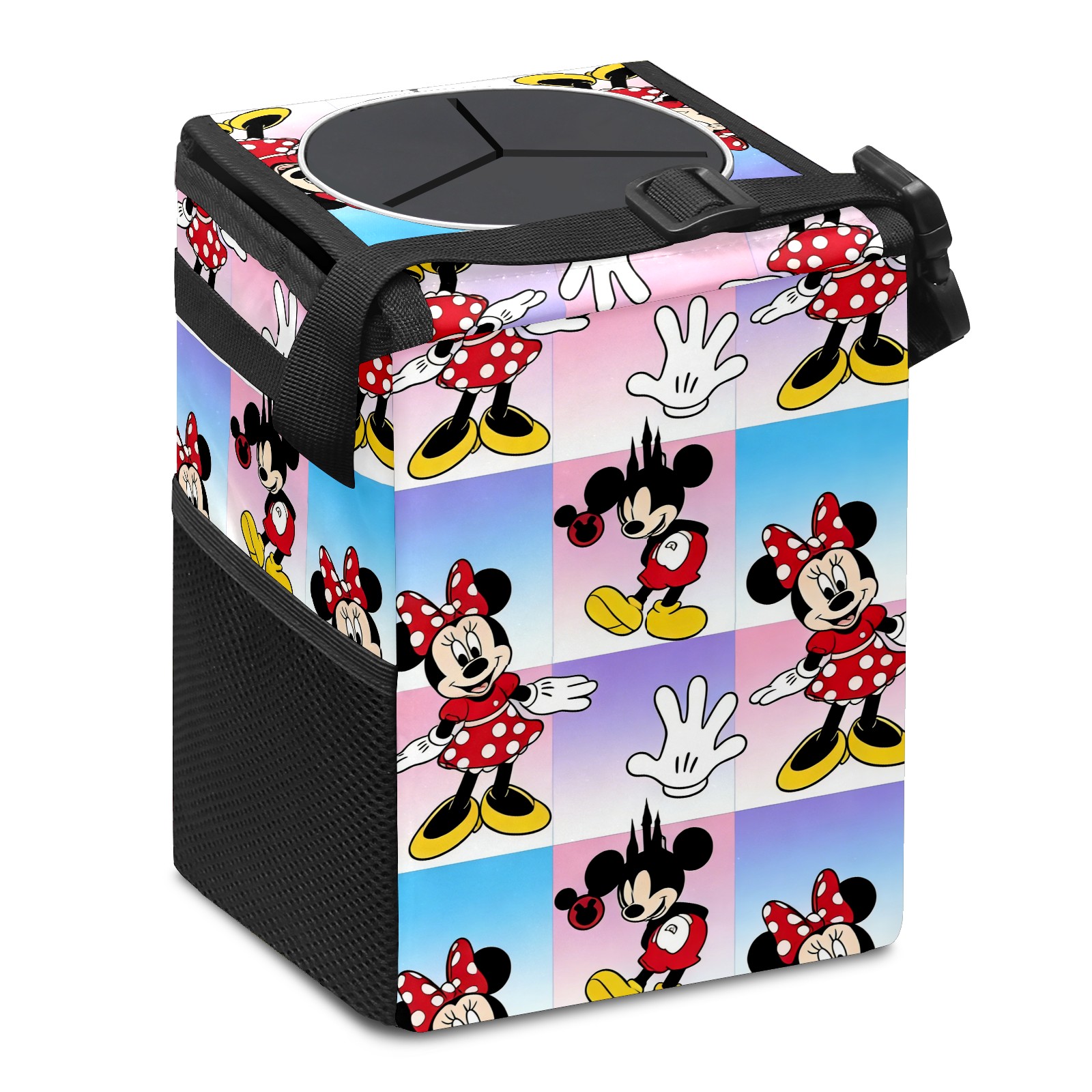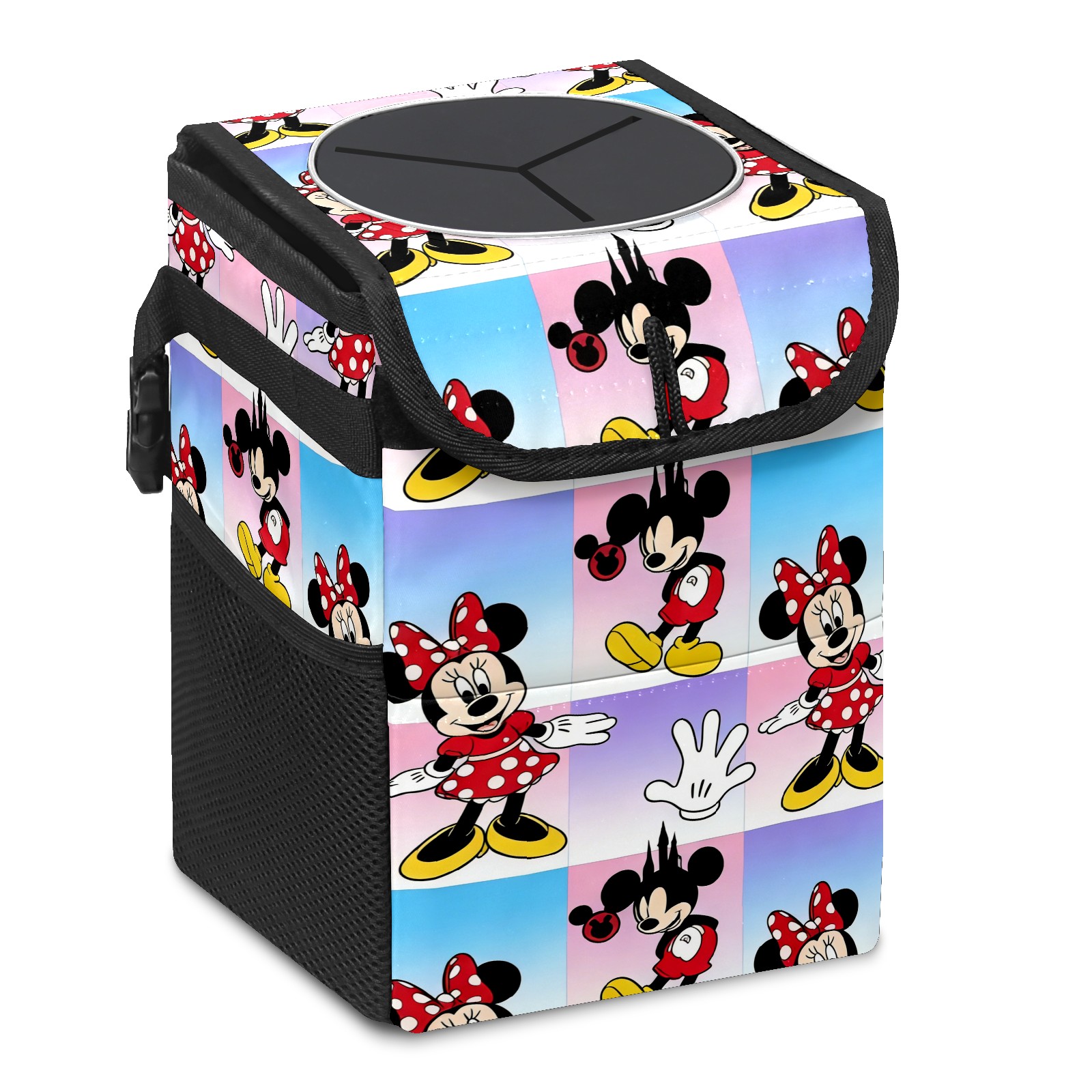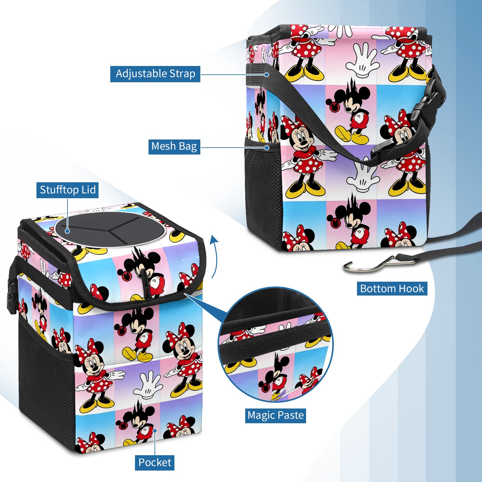 Car Trash Can with Lid, Small Portable Hanging Automotive Garbage Bin for Vehicles, Leakproof Waste Bag Container for SUV Truck Van Interior Auto Travel Road Trips(Mouse Red-Black)