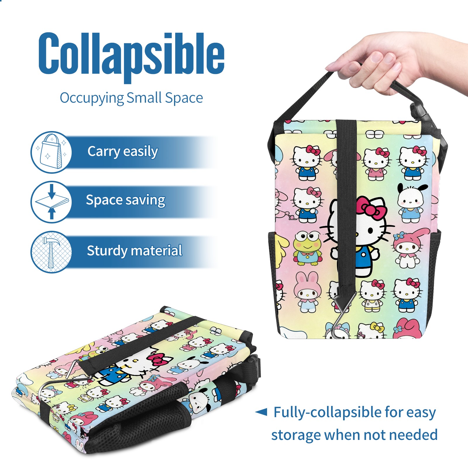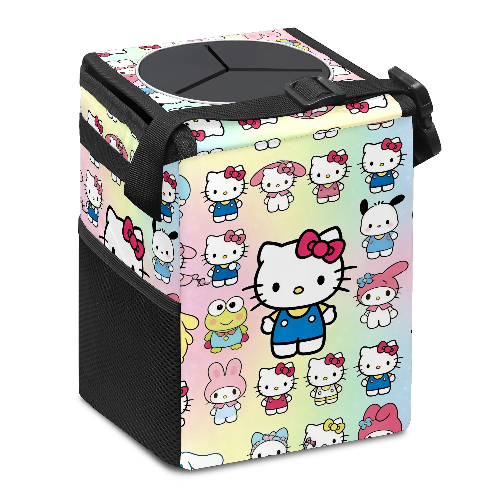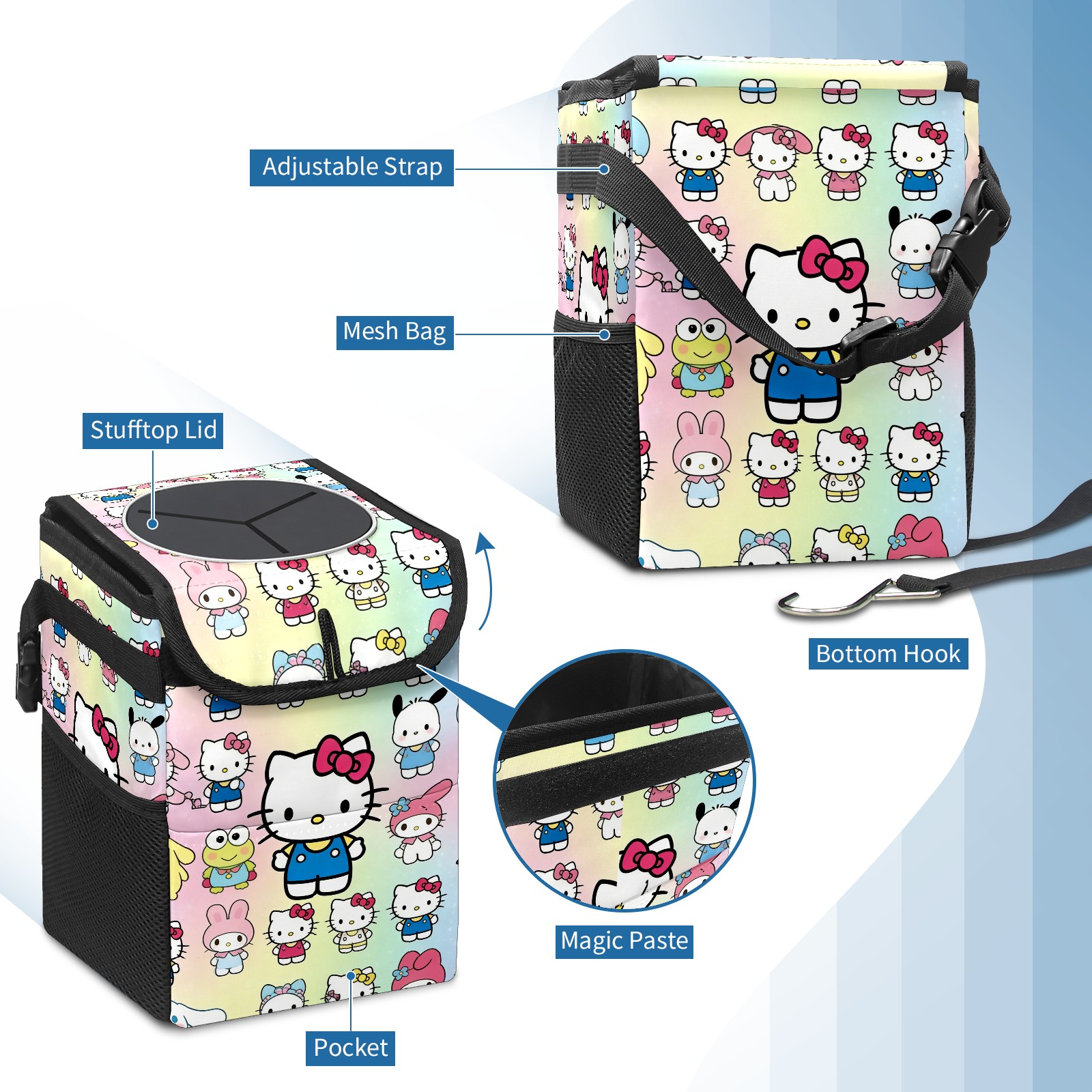 Car Trash Can with Lid, Small Portable Hanging Automotive Garbage Bin for Vehicles, Leakproof Waste Bag Container for SUV Truck Van Interior Auto Travel Road Trips(Cartoon Character Multi)