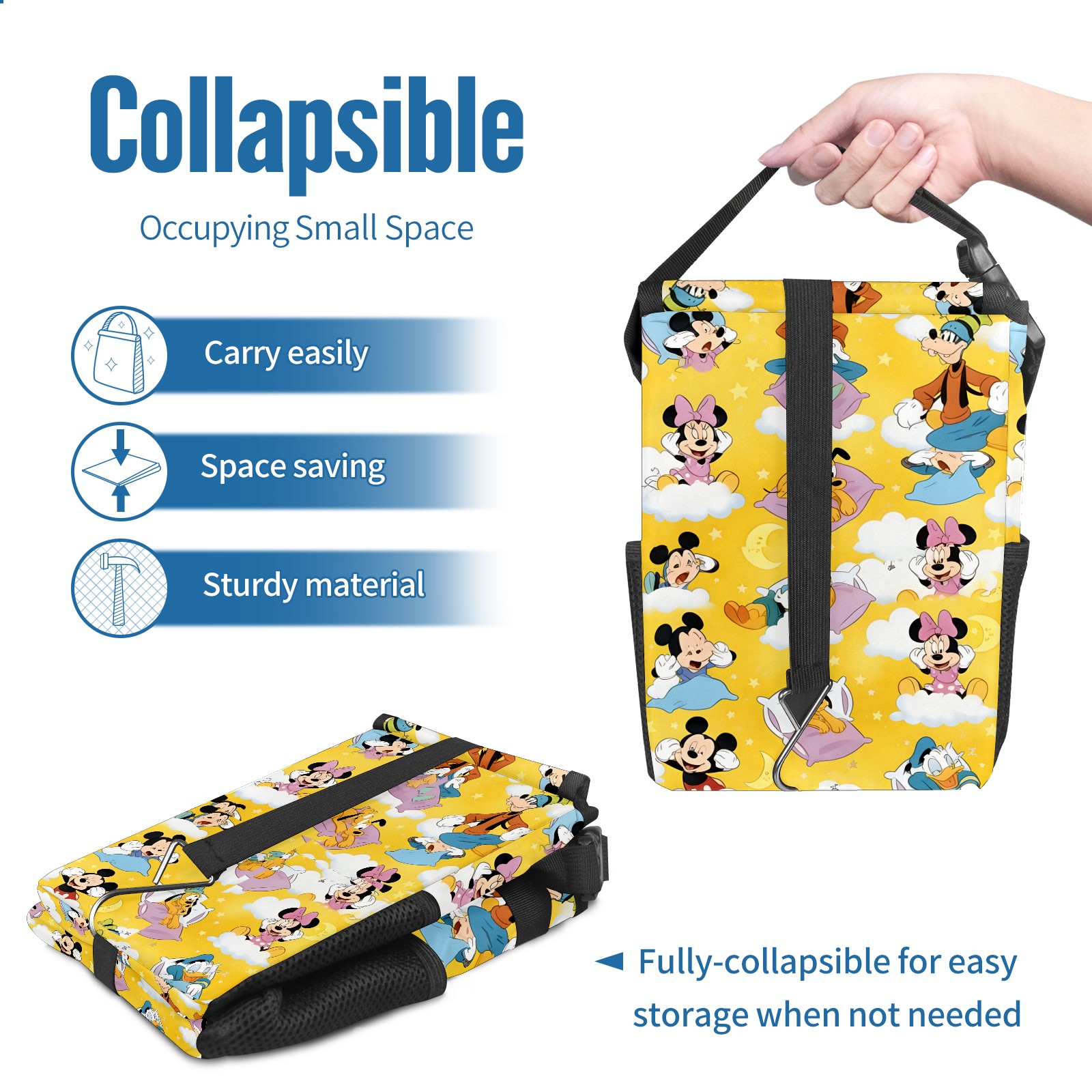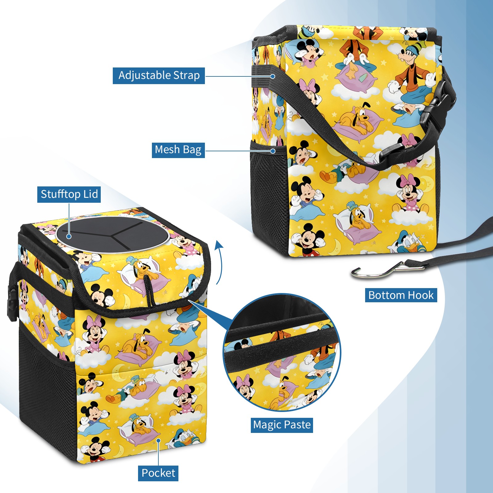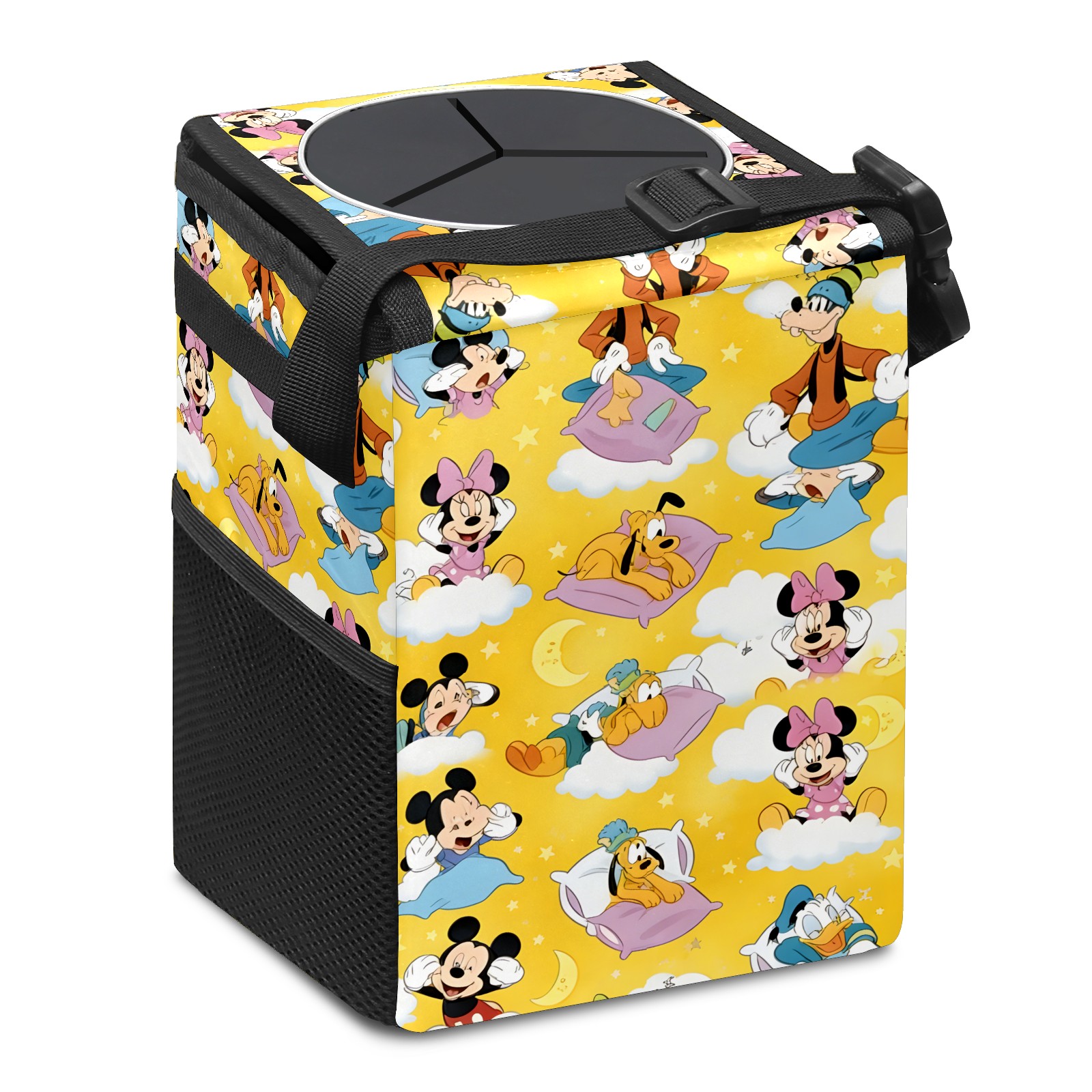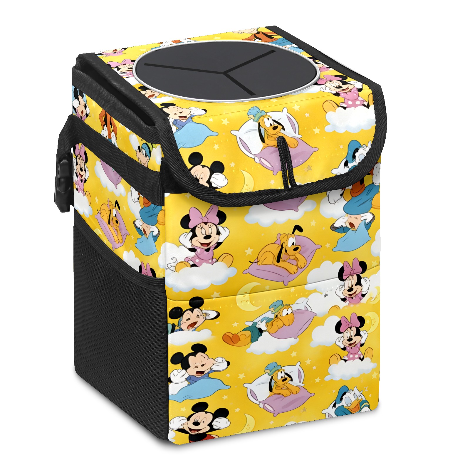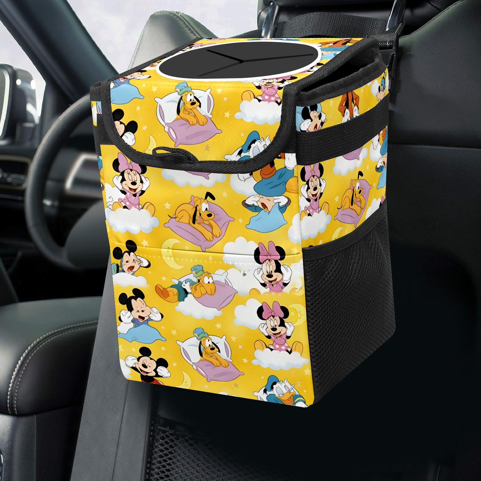 Car Trash Can with Lid, Small Portable Hanging Automotive Garbage Bin for Vehicles, Leakproof Waste Bag Container for SUV Truck Van Interior Auto Travel Road Trips(Cheerful Character Yellow)