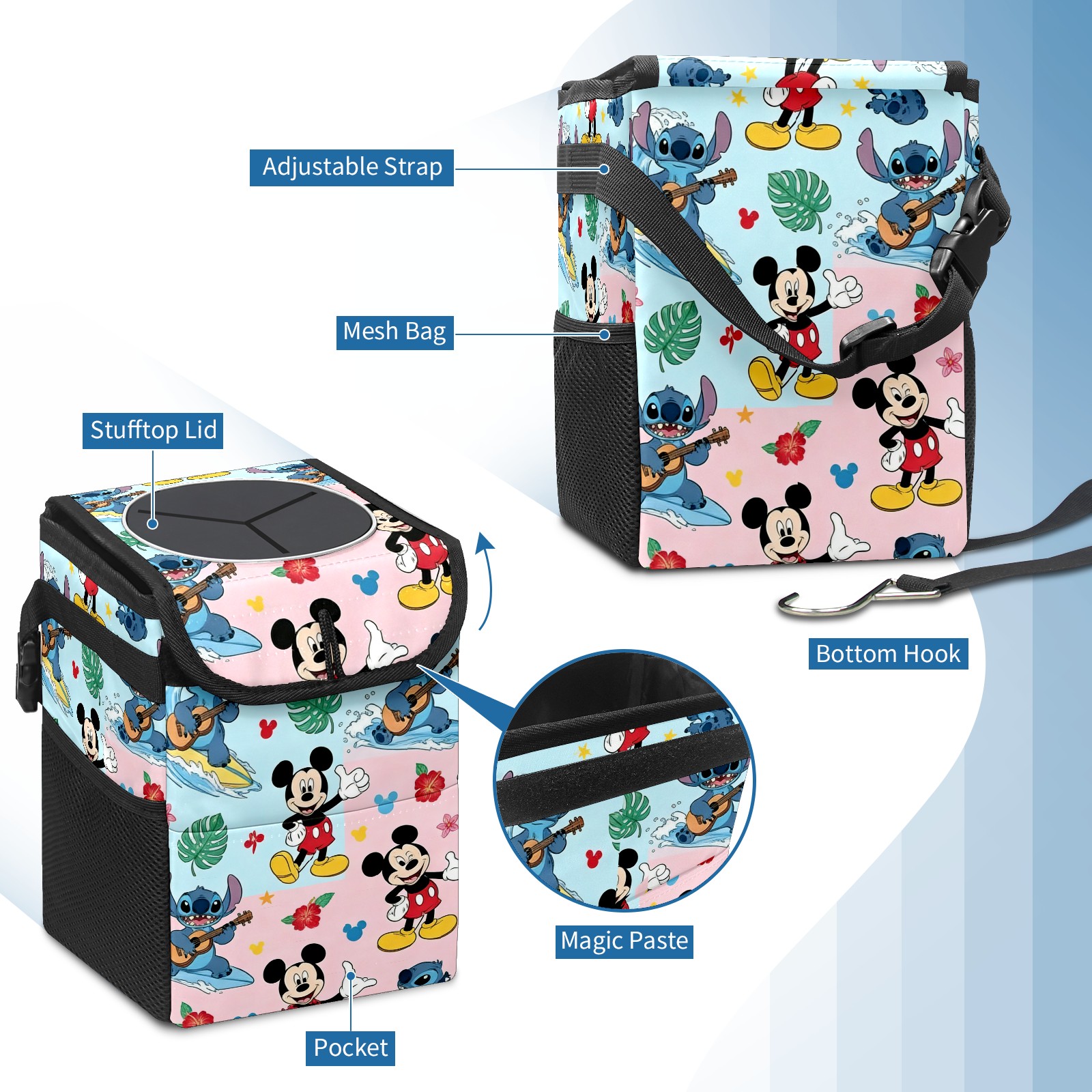 Car Trash Can with Lid, Small Portable Hanging Automotive Garbage Bin for Vehicles, Leakproof Waste Bag Container for SUV Truck Van Interior Auto Travel Road Trips(Dreamy StMi Blue)
