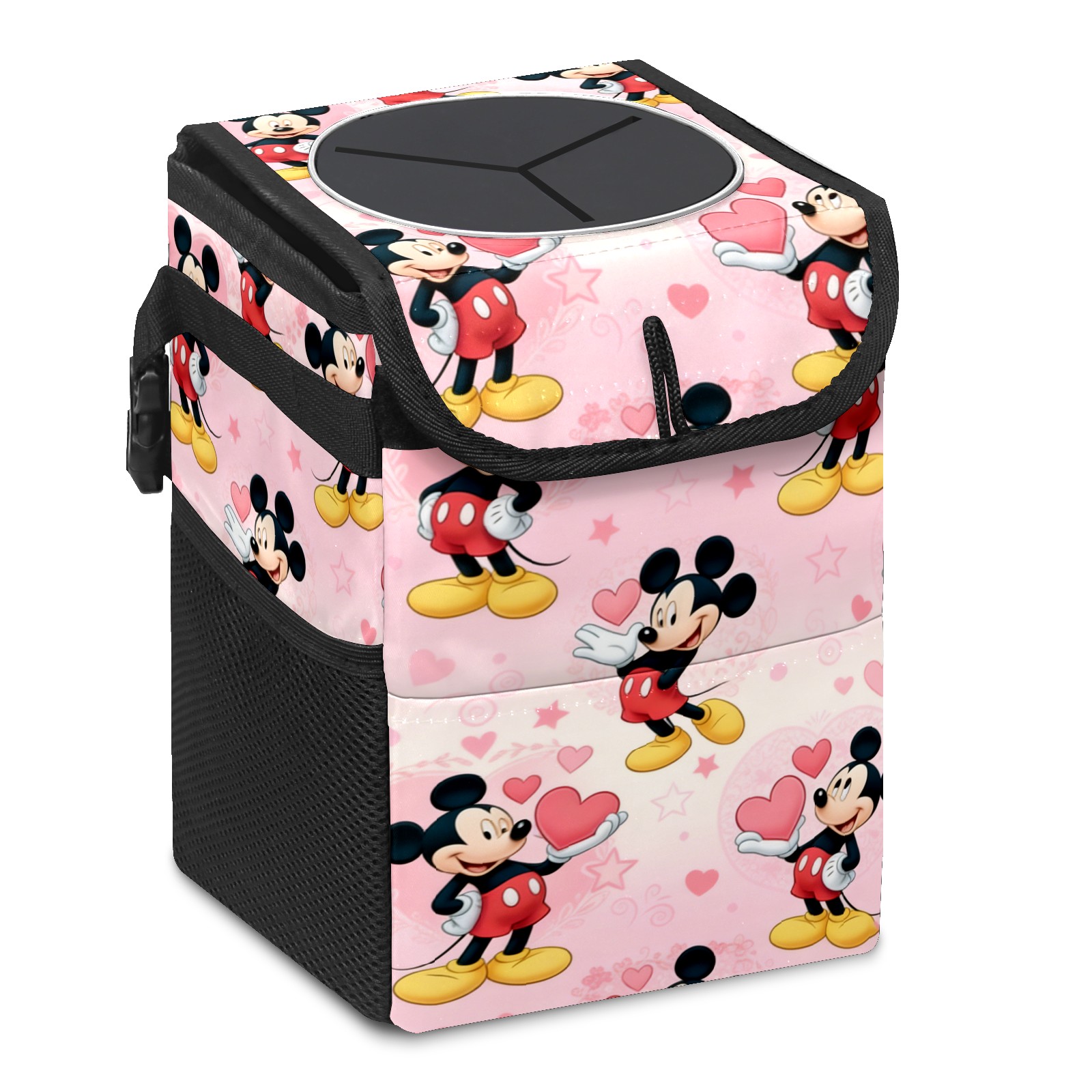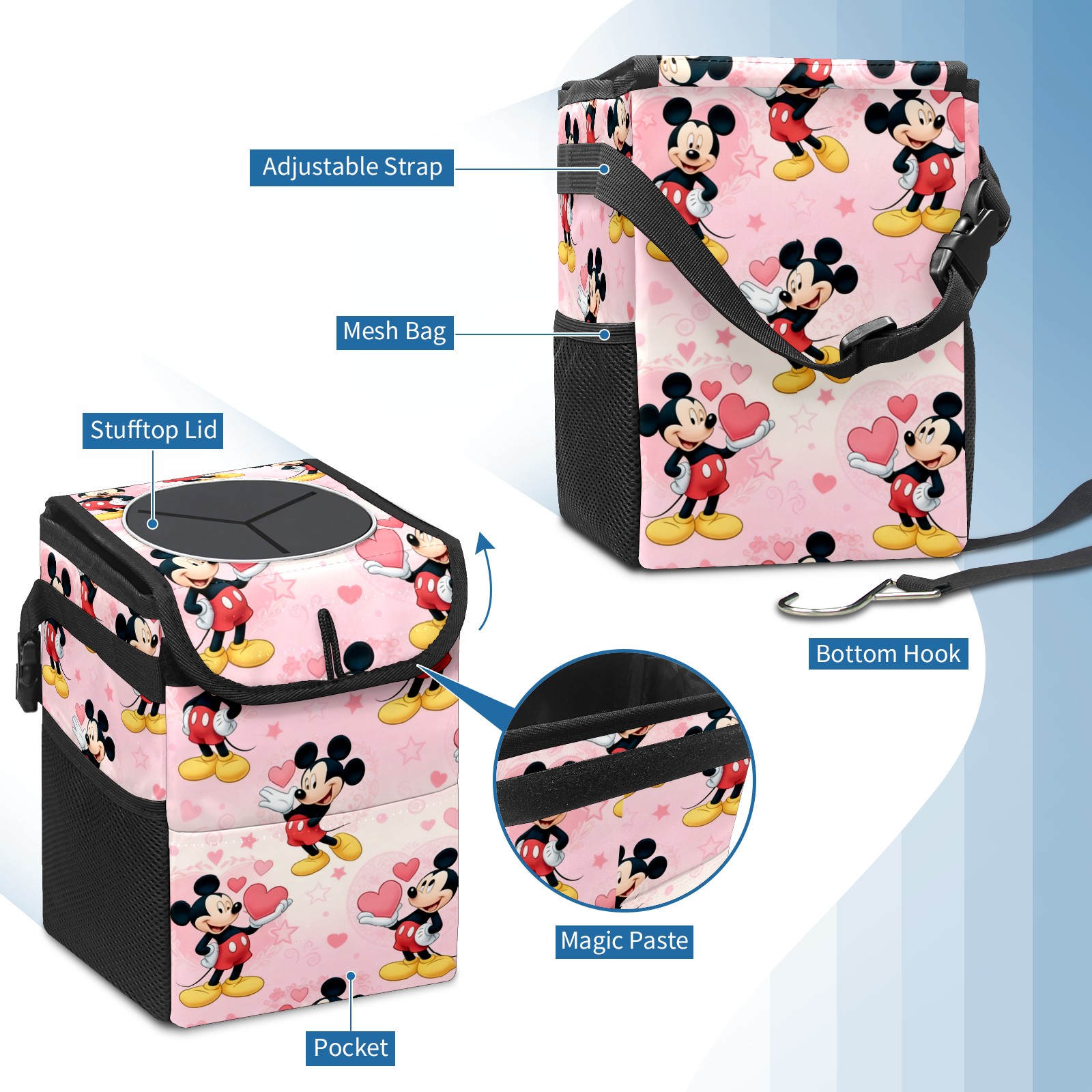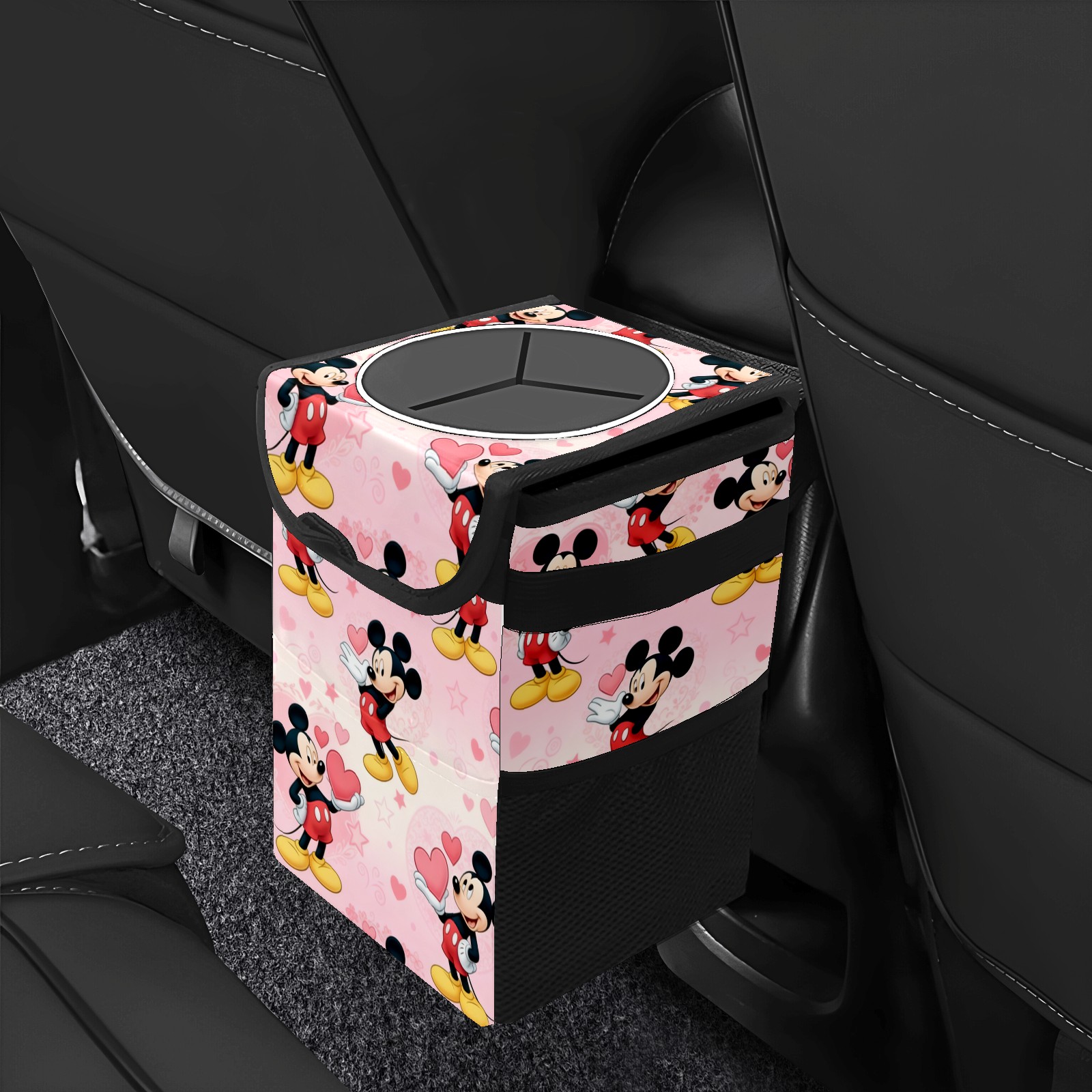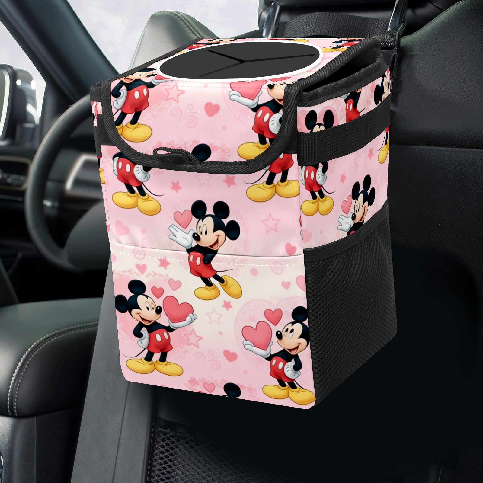 Car Trash Can with Lid, Small Portable Hanging Automotive Garbage Bin for Vehicles, Leakproof Waste Bag Container for SUV Truck Van Interior Auto Travel Road Trips(Fiery Mouse Red)