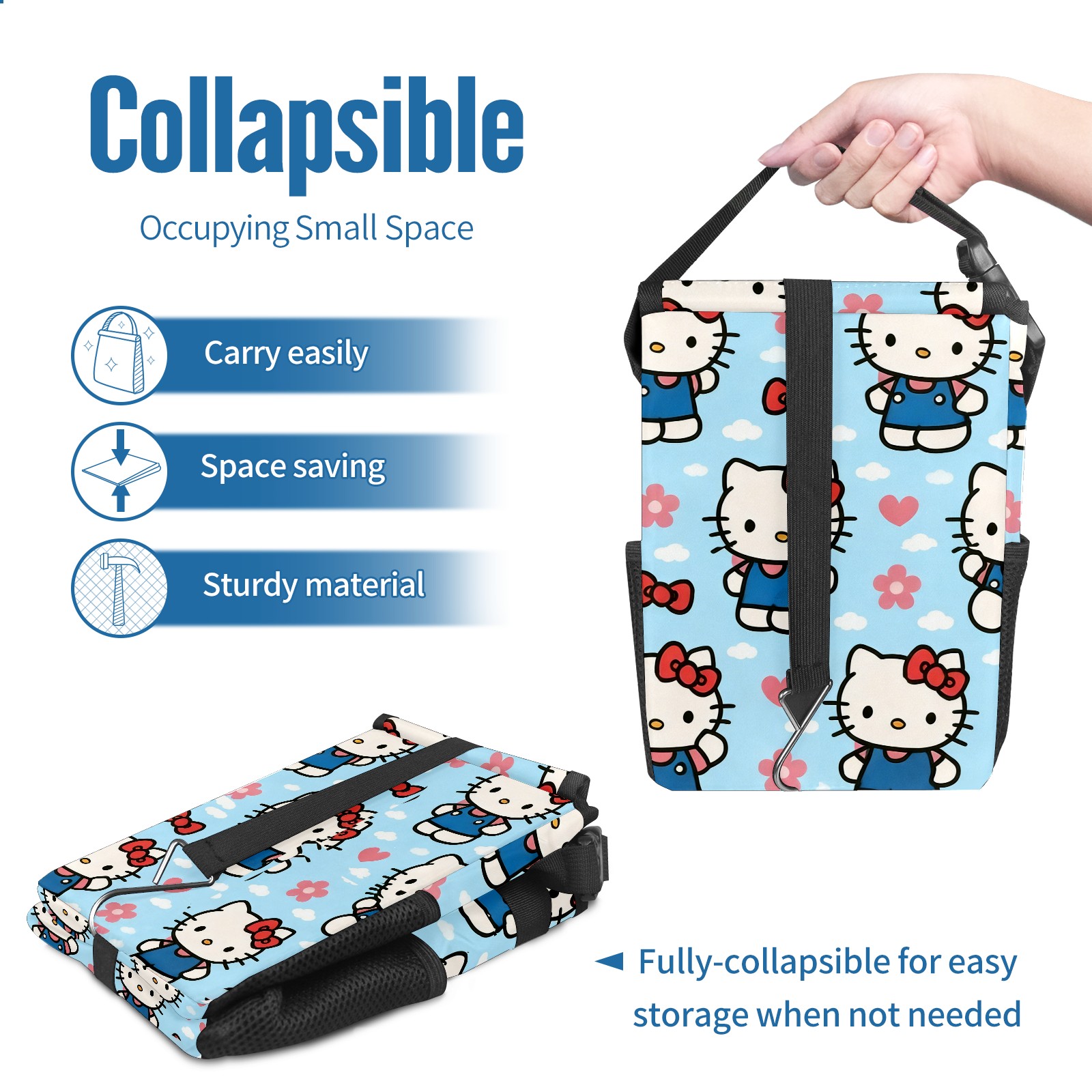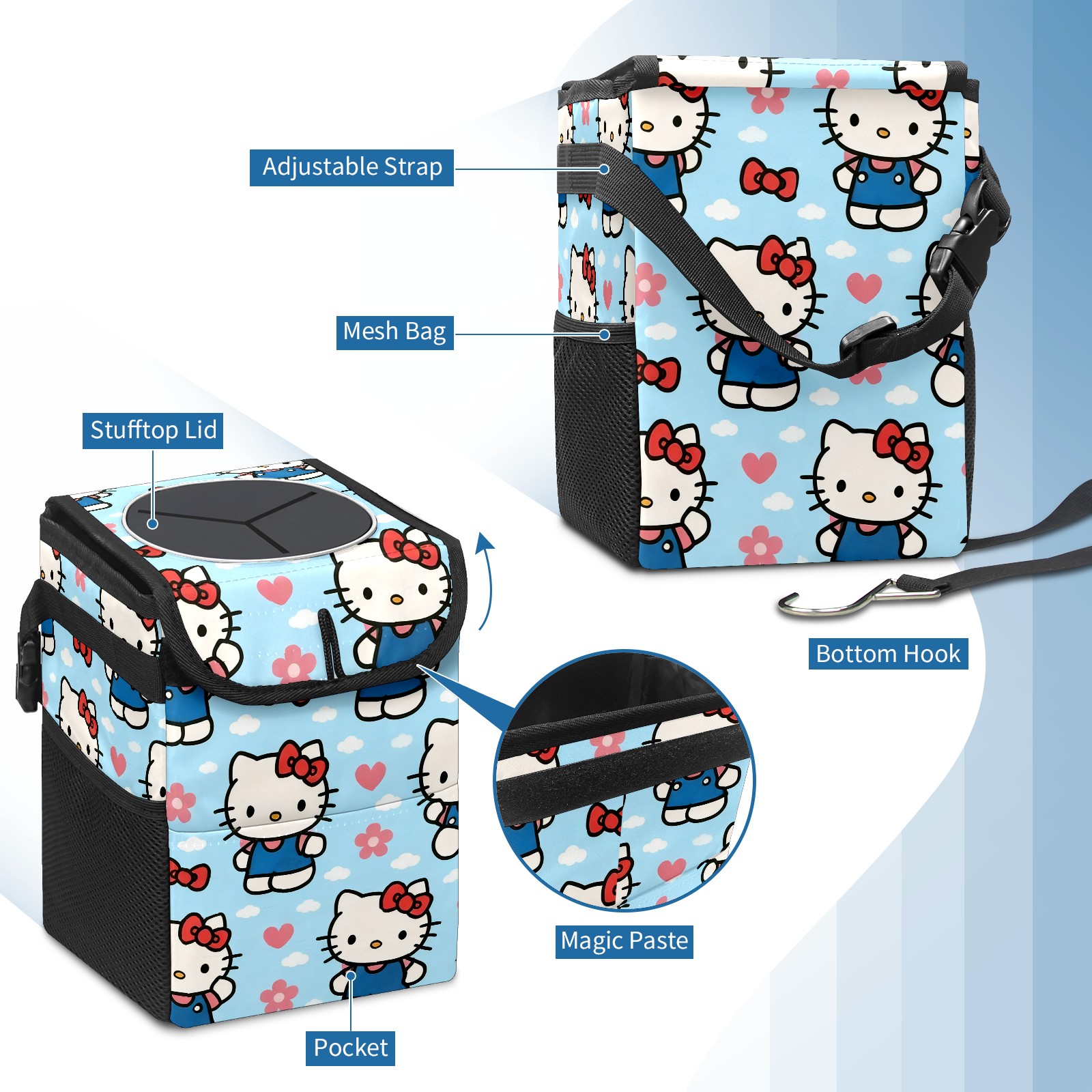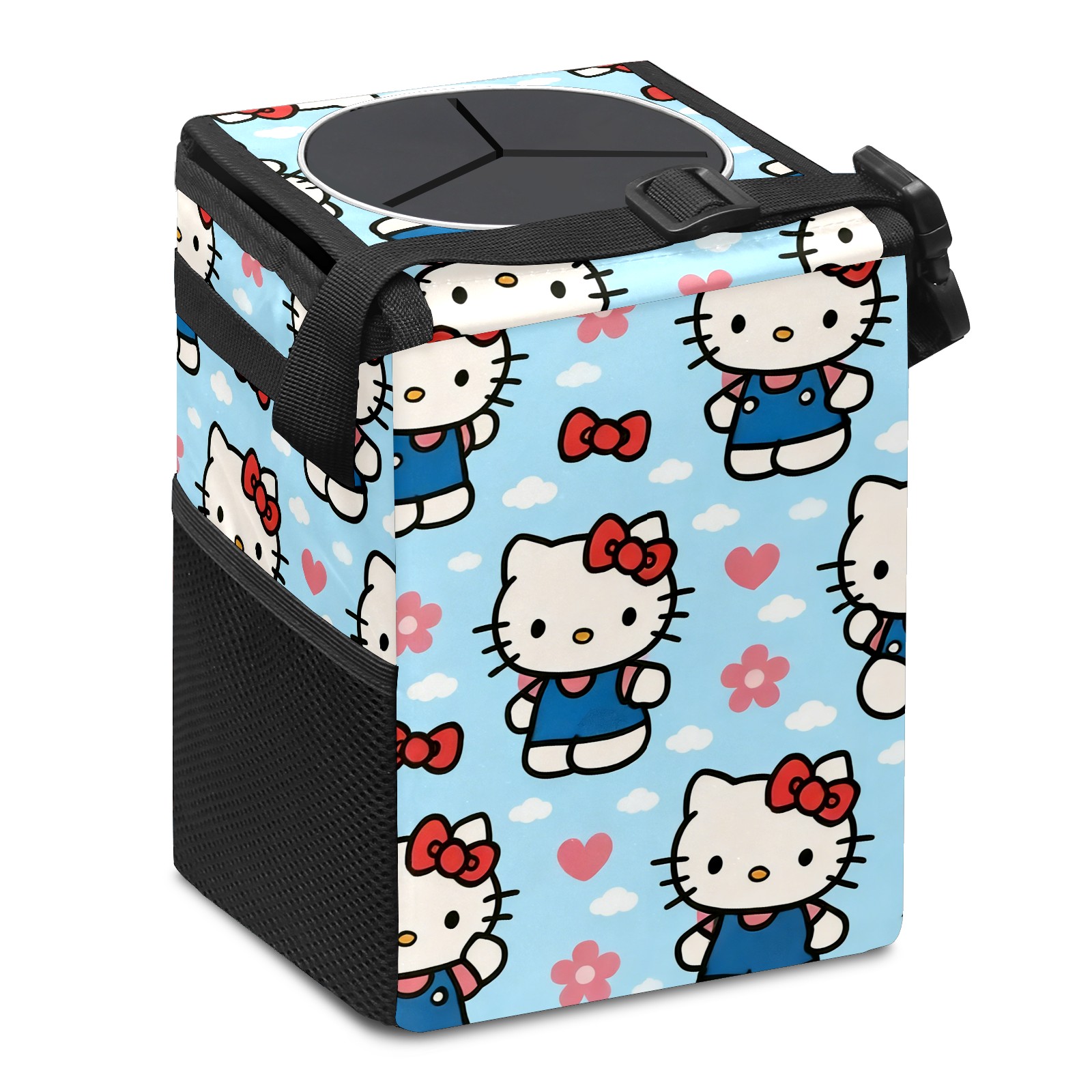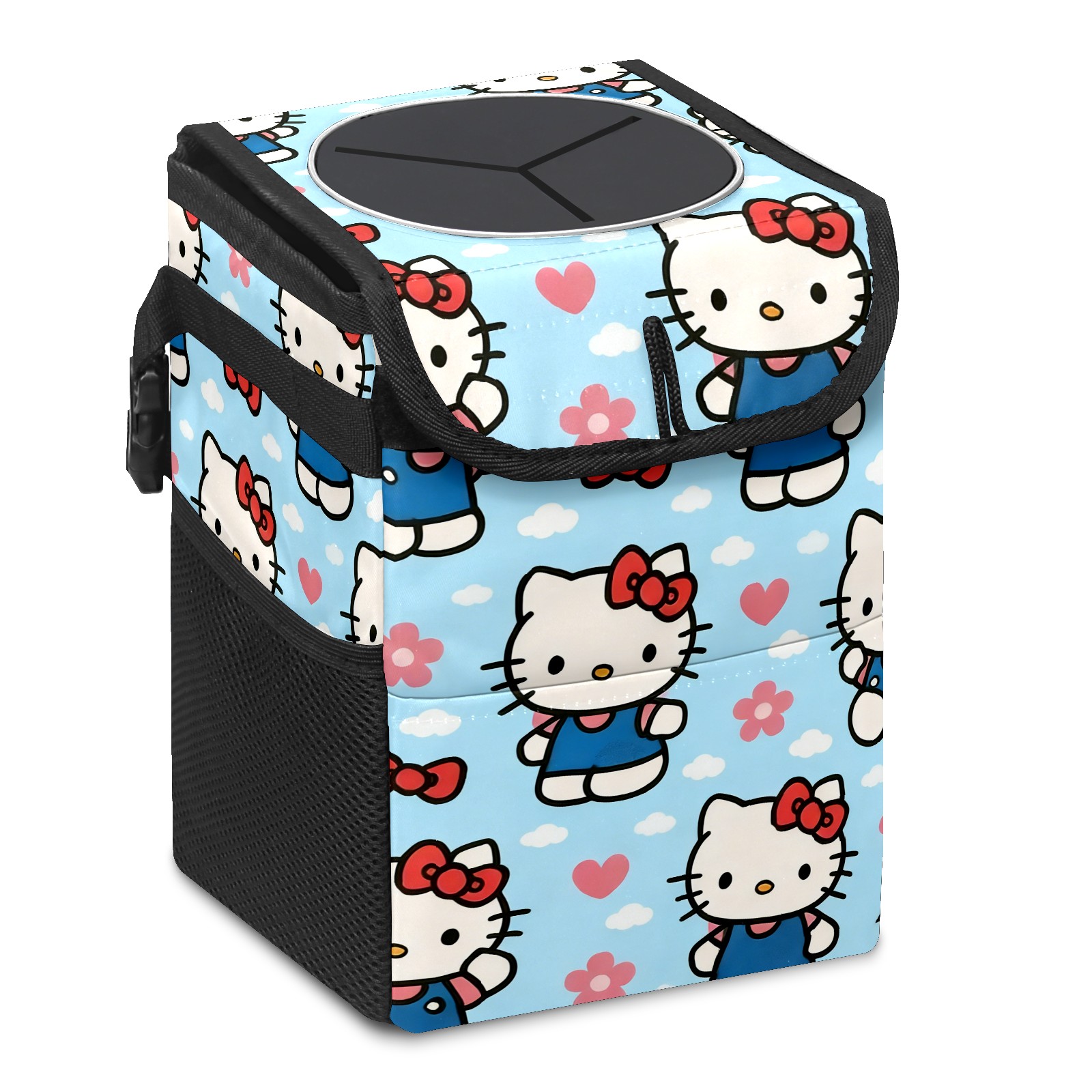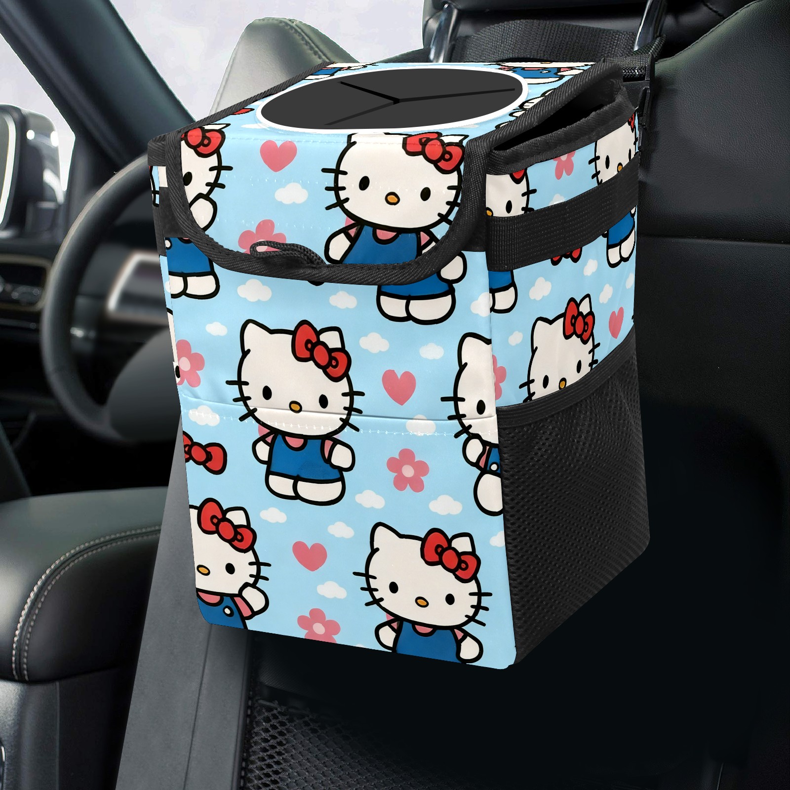 Car Trash Can with Lid, Small Portable Hanging Automotive Garbage Bin for Vehicles, Leakproof Waste Bag Container for SUV Truck Van Interior Auto Travel Road Trips(Warm Hello Kitty Pink)