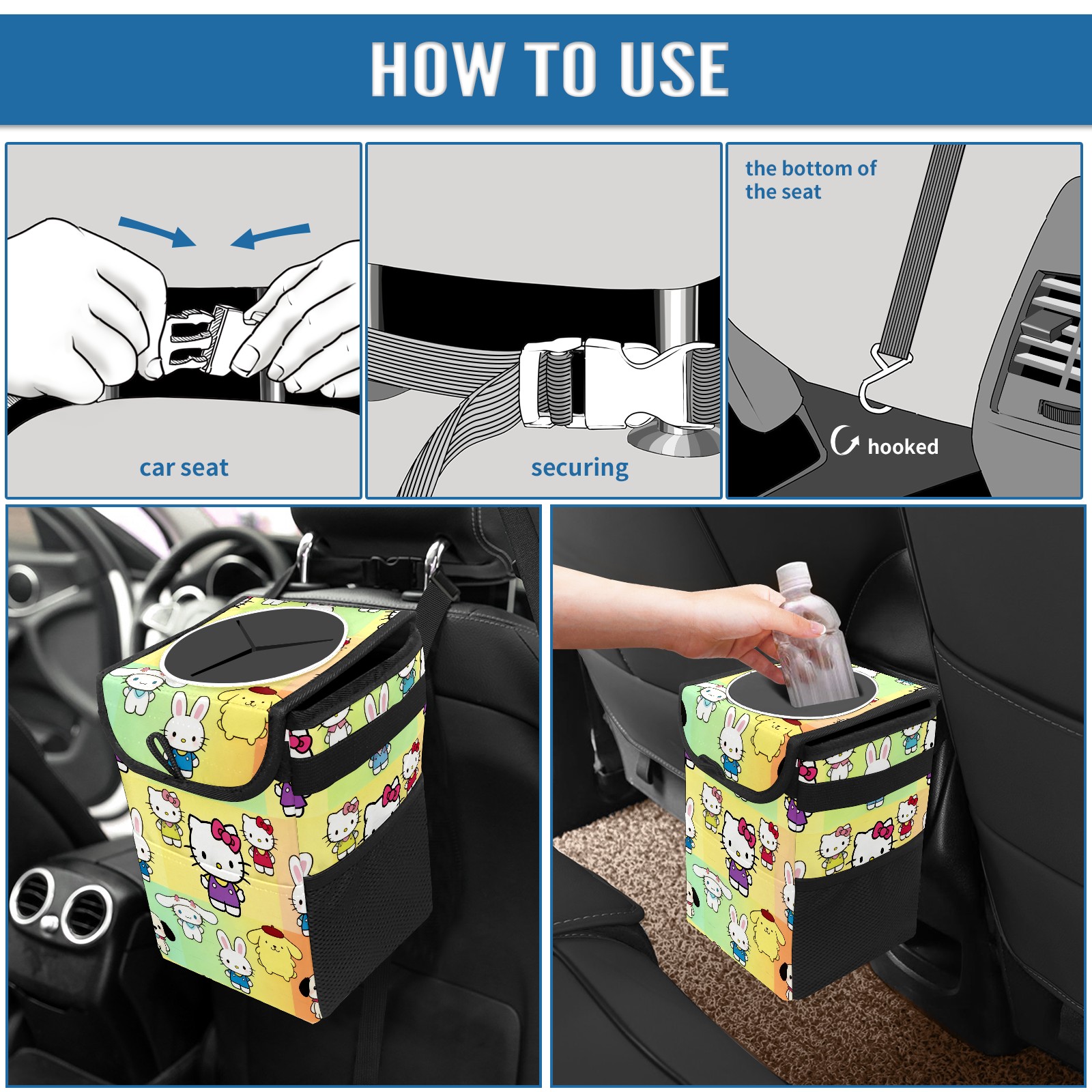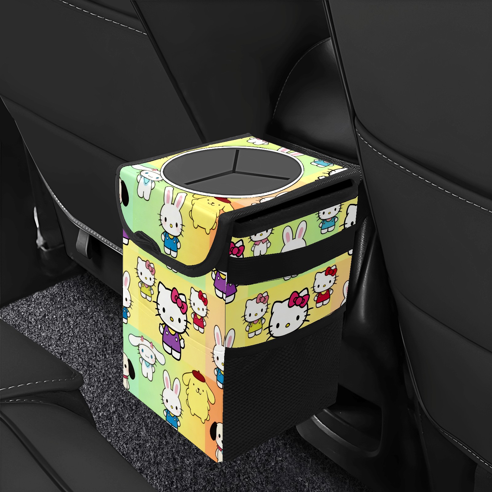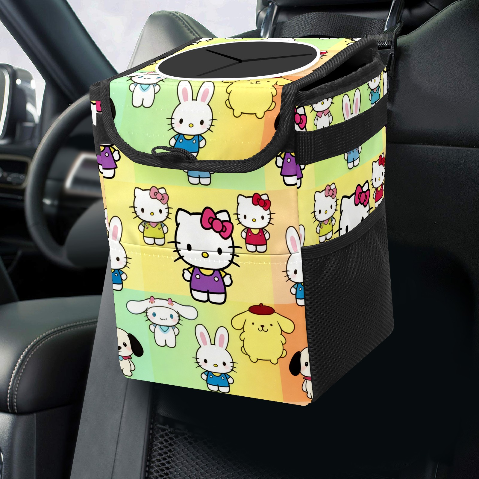 Car Trash Can with Lid, Small Portable Hanging Automotive Garbage Bin for Vehicles, Leakproof Waste Bag Container for SUV Truck Van Interior Auto Travel Road Trips(Rabbit Character Multi)