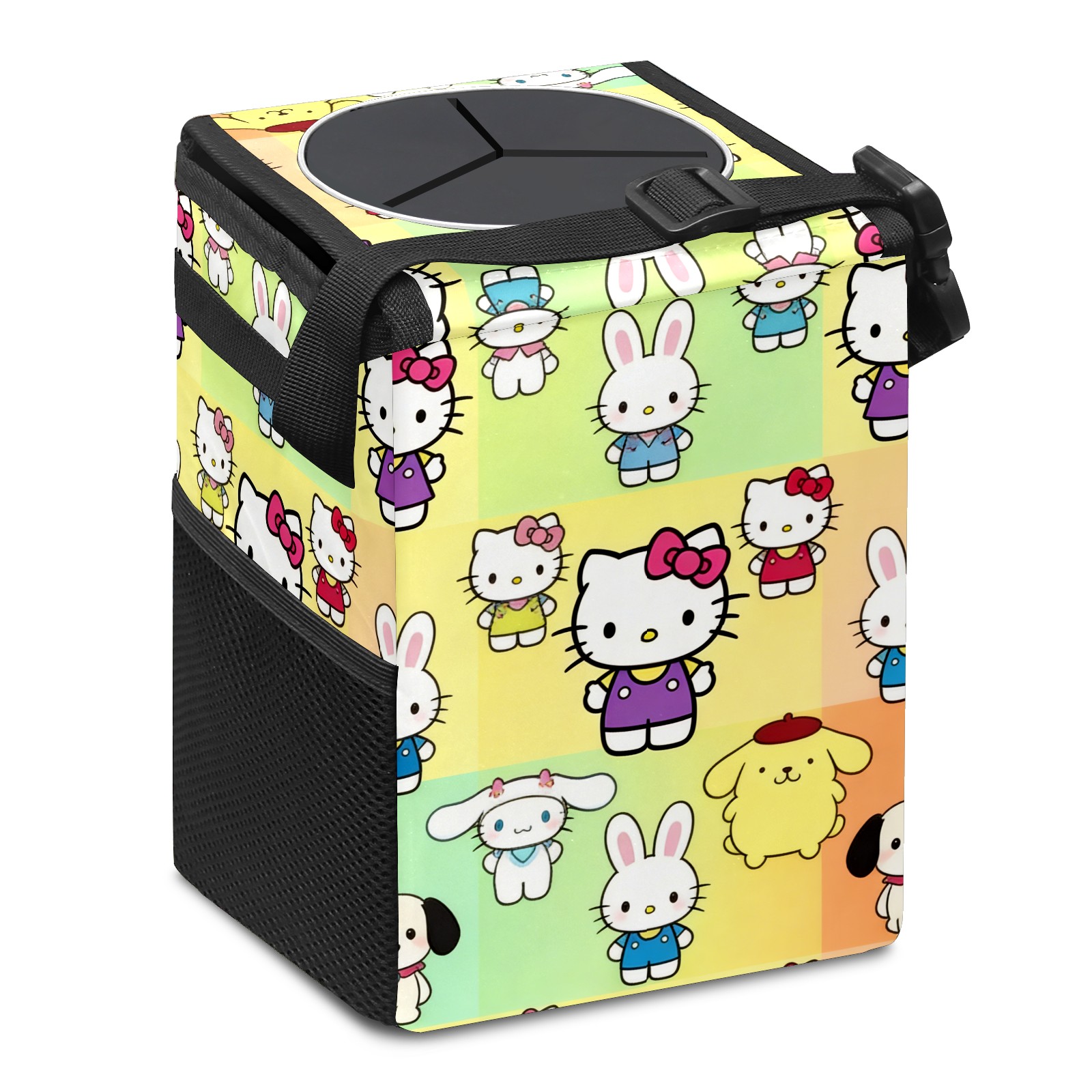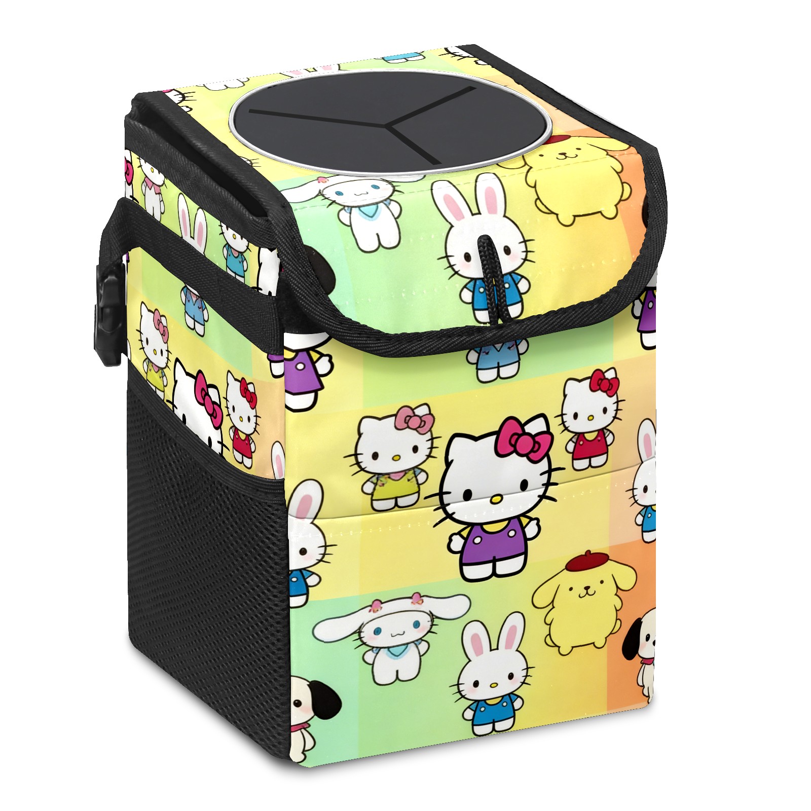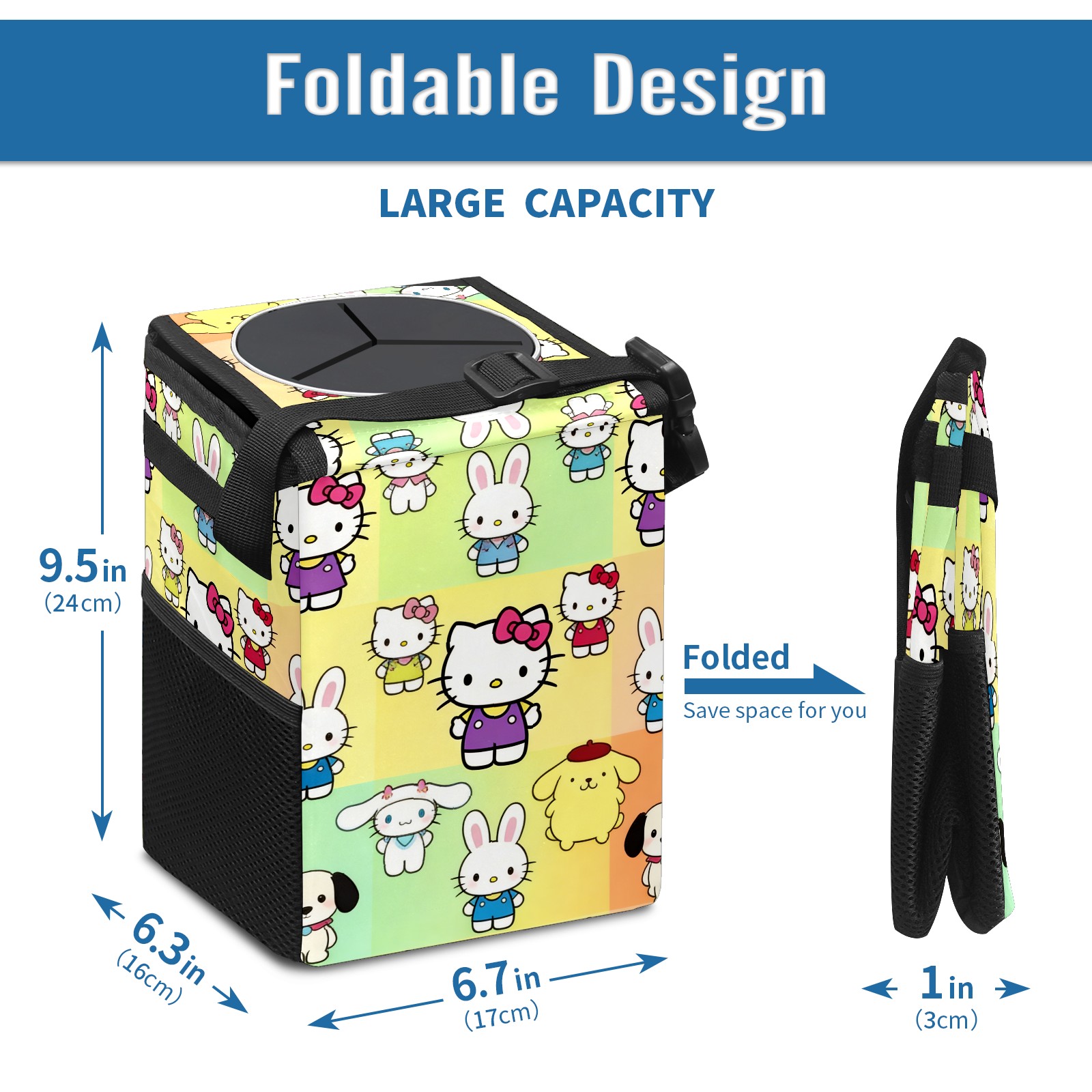 Car Trash Can with Lid, Small Portable Hanging Automotive Garbage Bin for Vehicles, Leakproof Waste Bag Container for SUV Truck Van Interior Auto Travel Road Trips(Rabbit Character Multi)