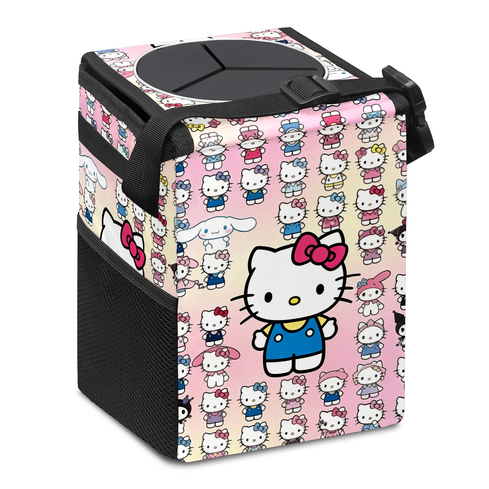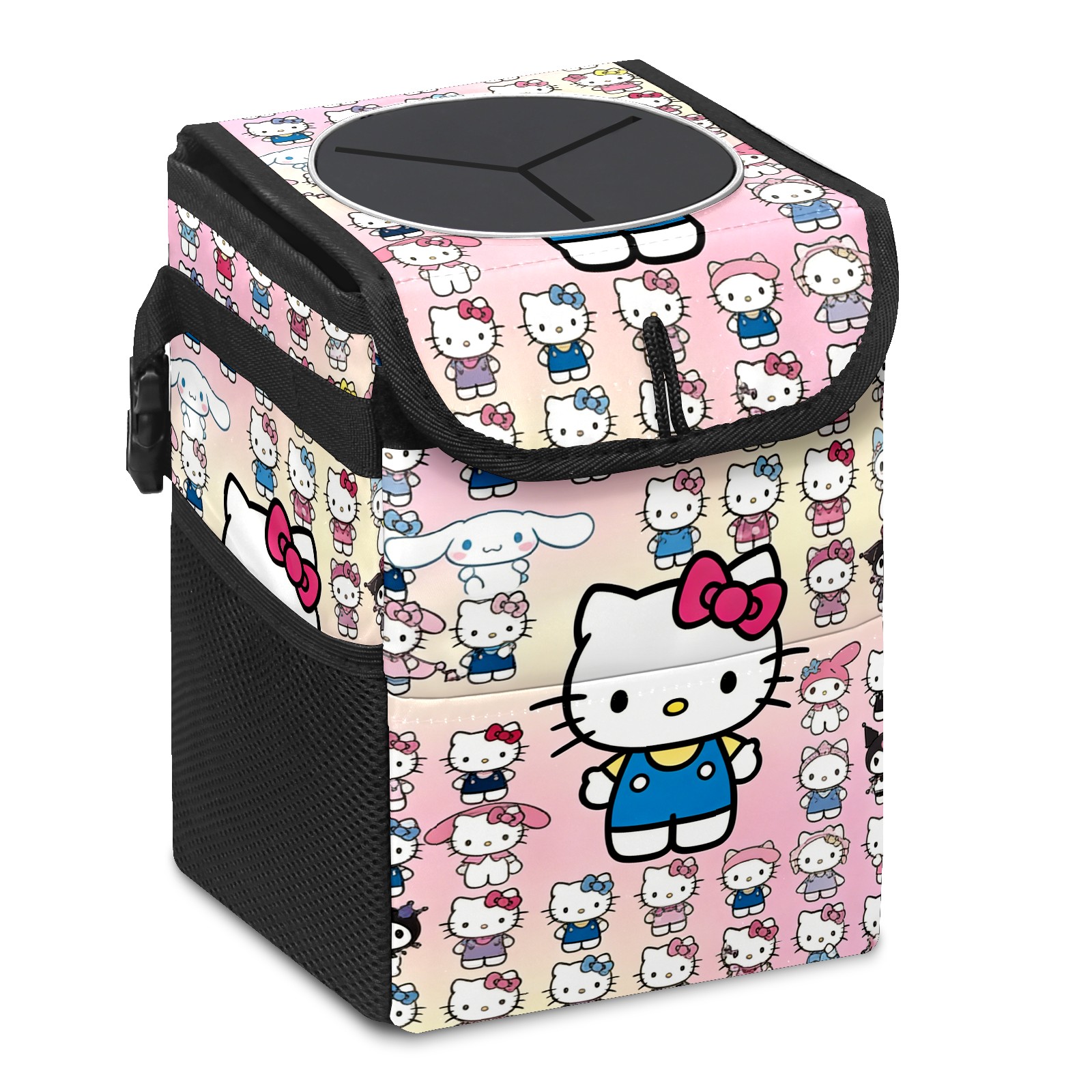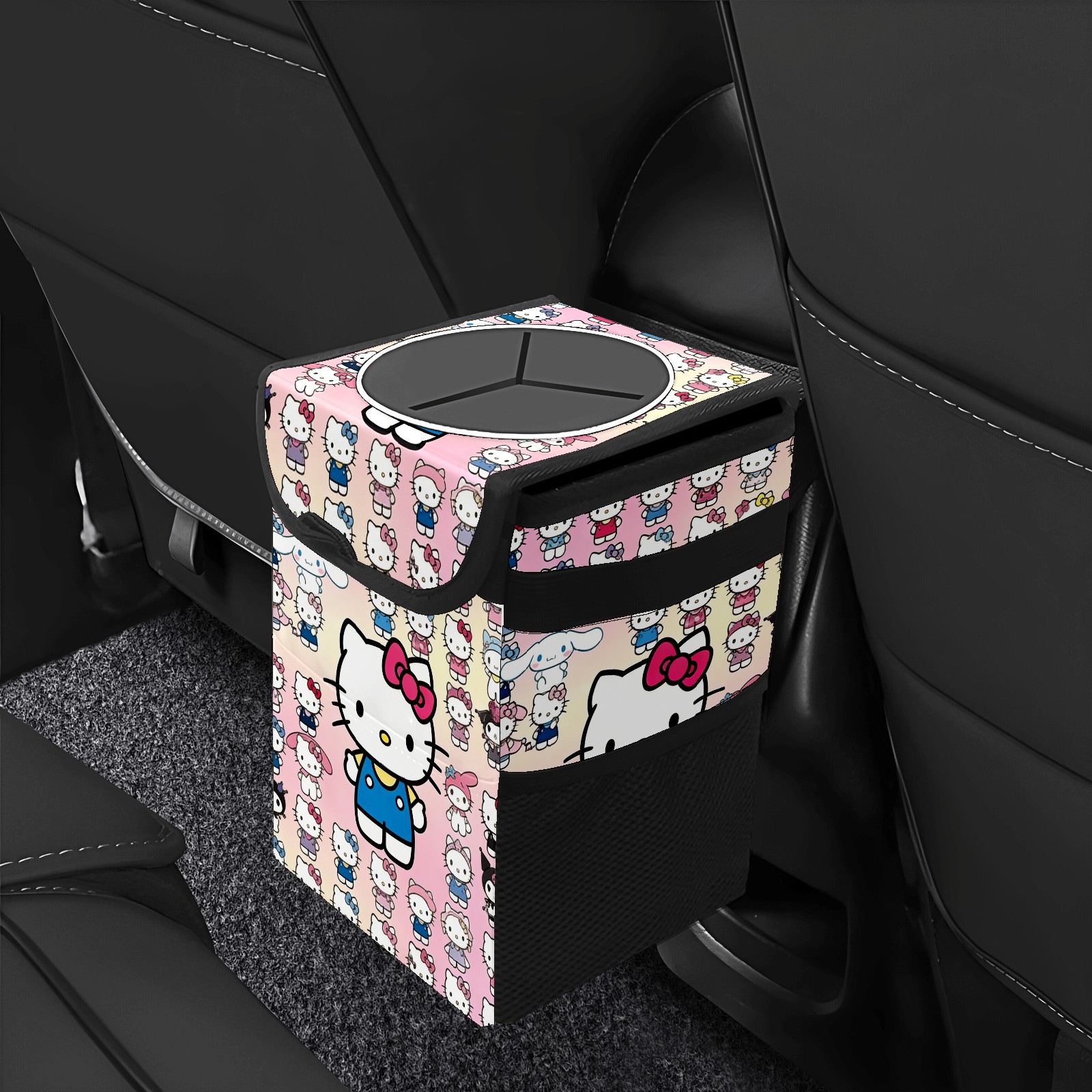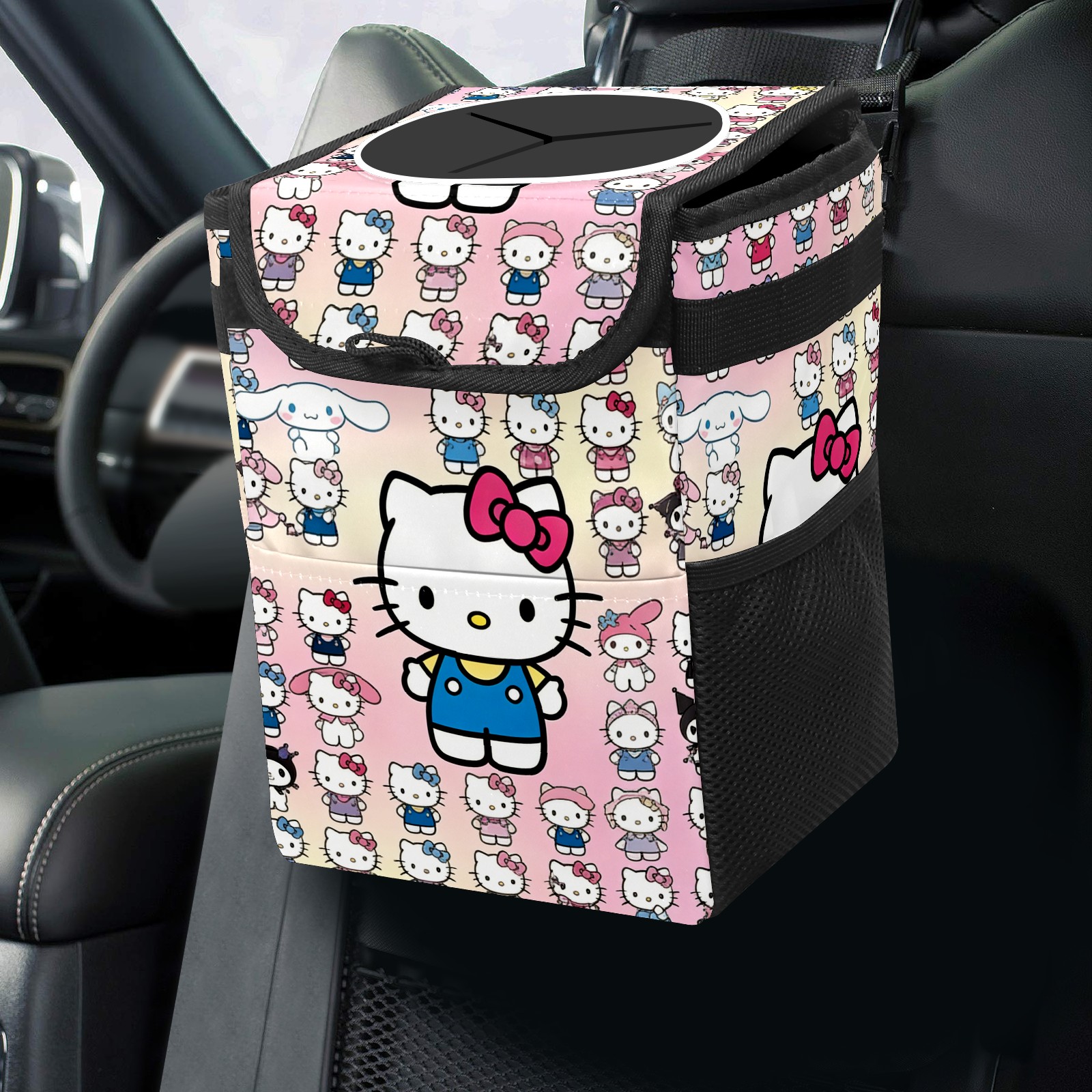 Car Trash Can with Lid, Small Portable Hanging Automotive Garbage Bin for Vehicles, Leakproof Waste Bag Container for SUV Truck Van Interior Auto Travel Road Trips(Hello Kitty Pink)