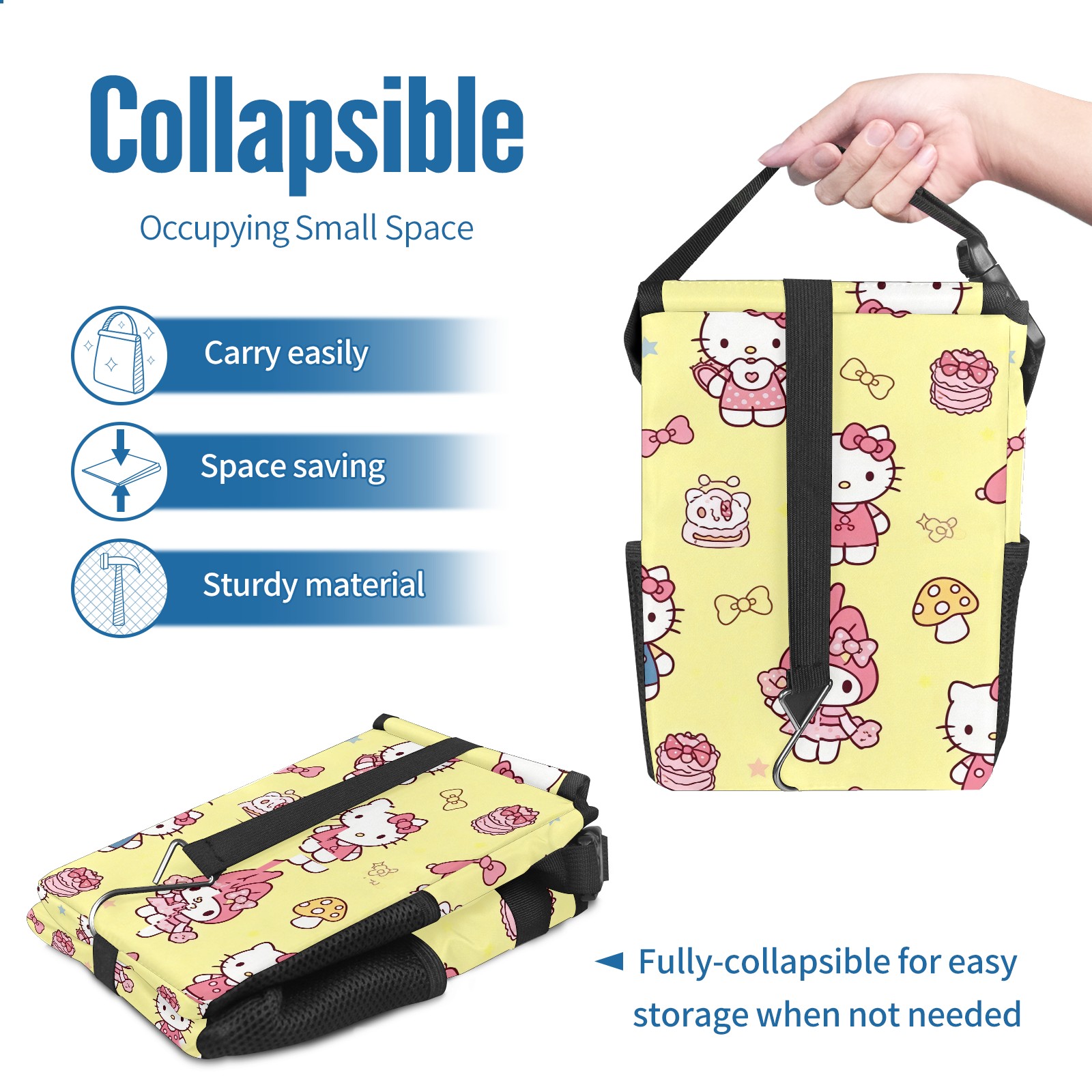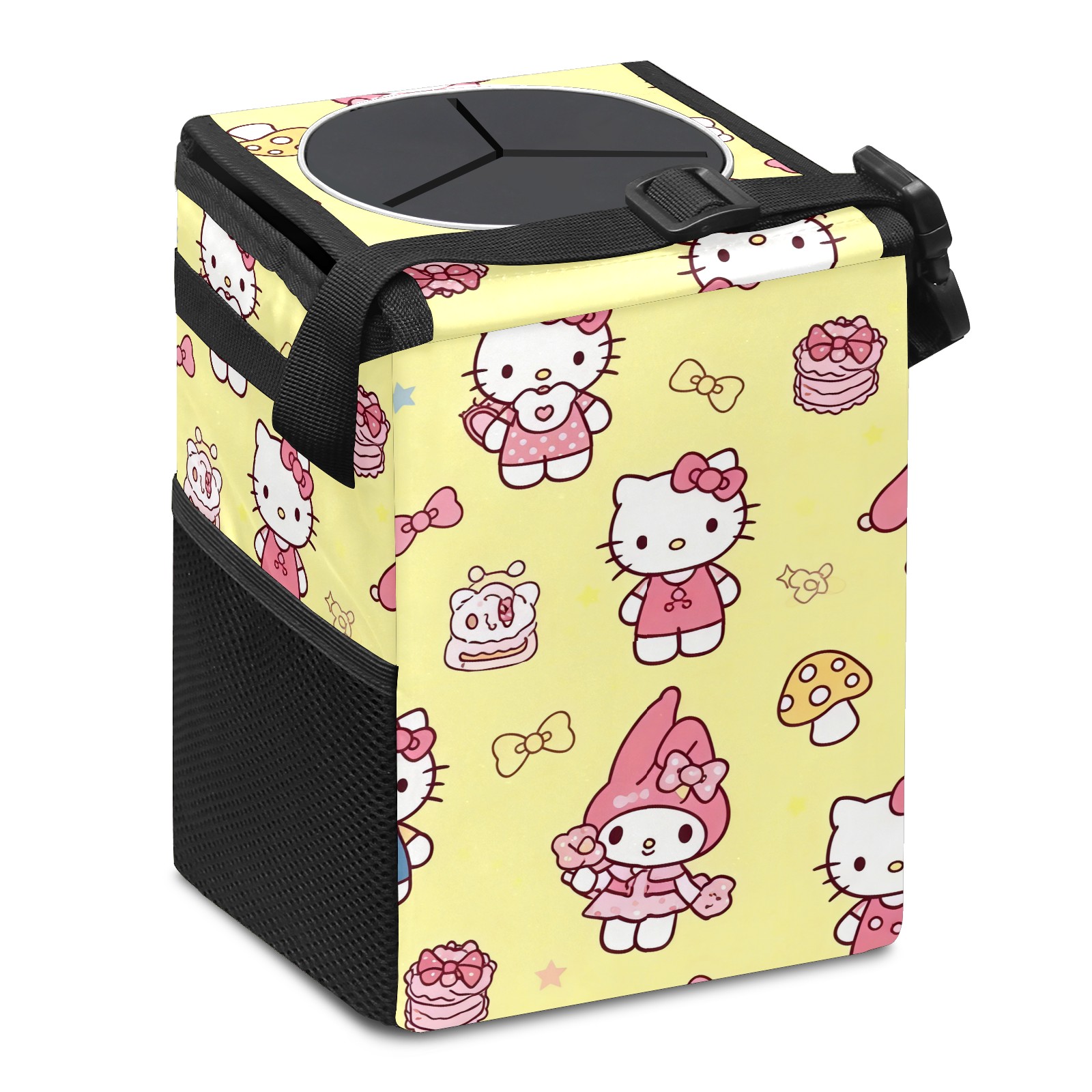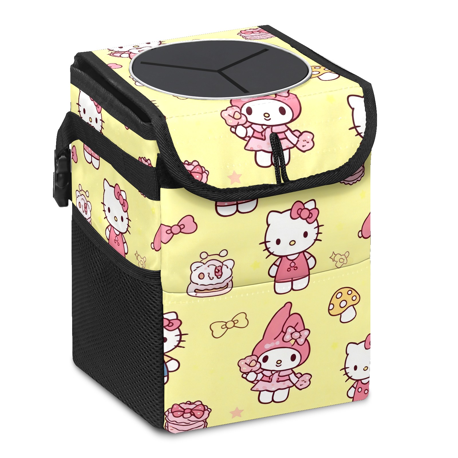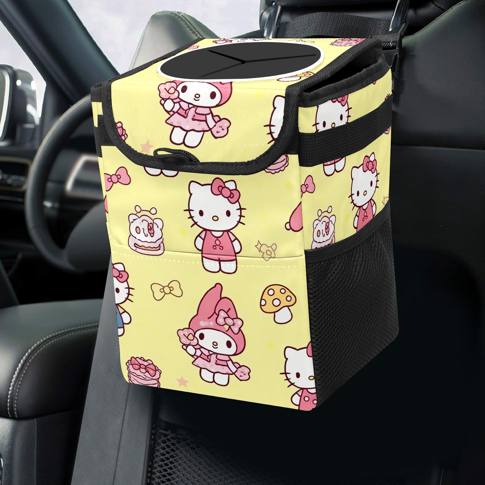 Car Trash Can with Lid, Small Portable Hanging Automotive Garbage Bin for Vehicles, Leakproof Waste Bag Container for SUV Truck Van Interior Auto Travel Road Trips(Bright Cat Yellow)