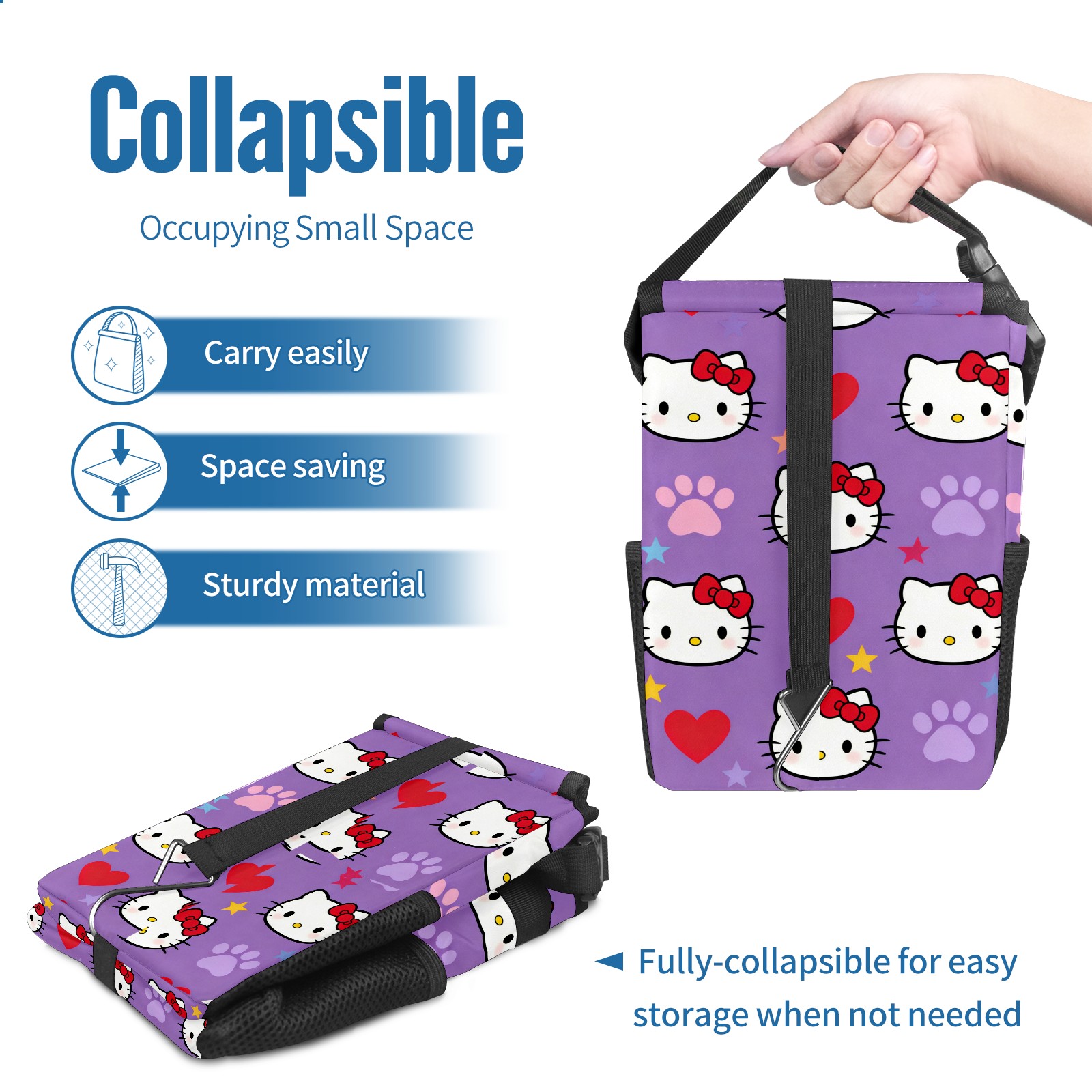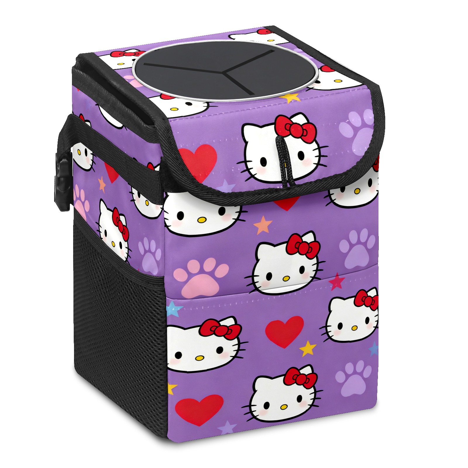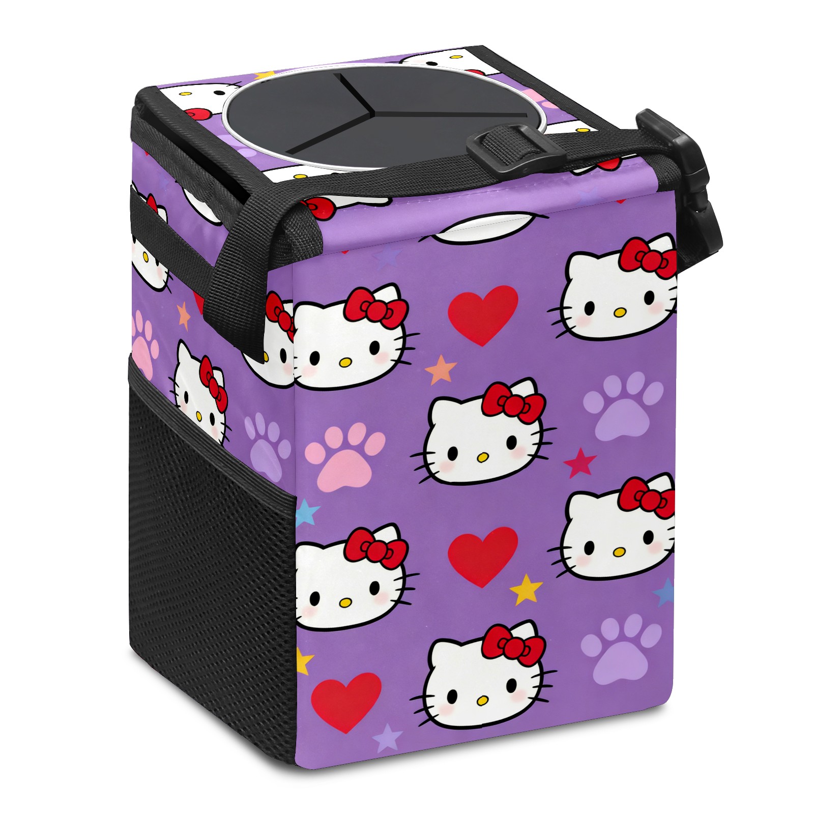 Car Trash Can with Lid, Small Portable Hanging Automotive Garbage Bin for Vehicles, Leakproof Waste Bag Container for SUV Truck Van Interior Auto Travel Road Trips(Hello Kitty Purple)