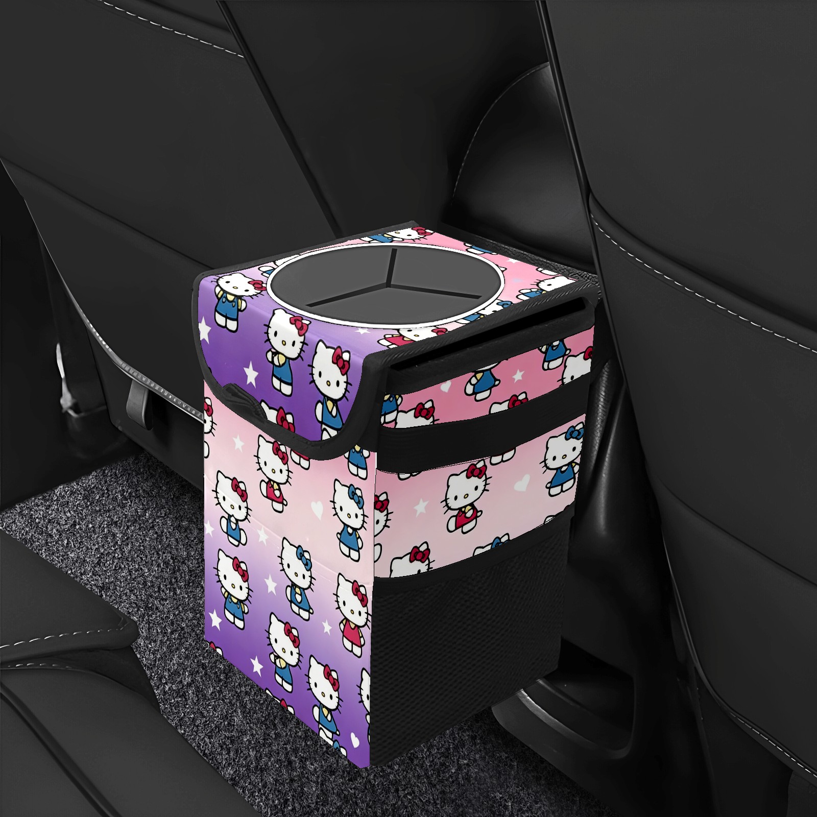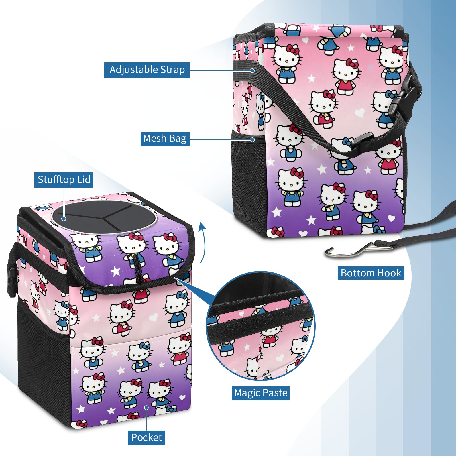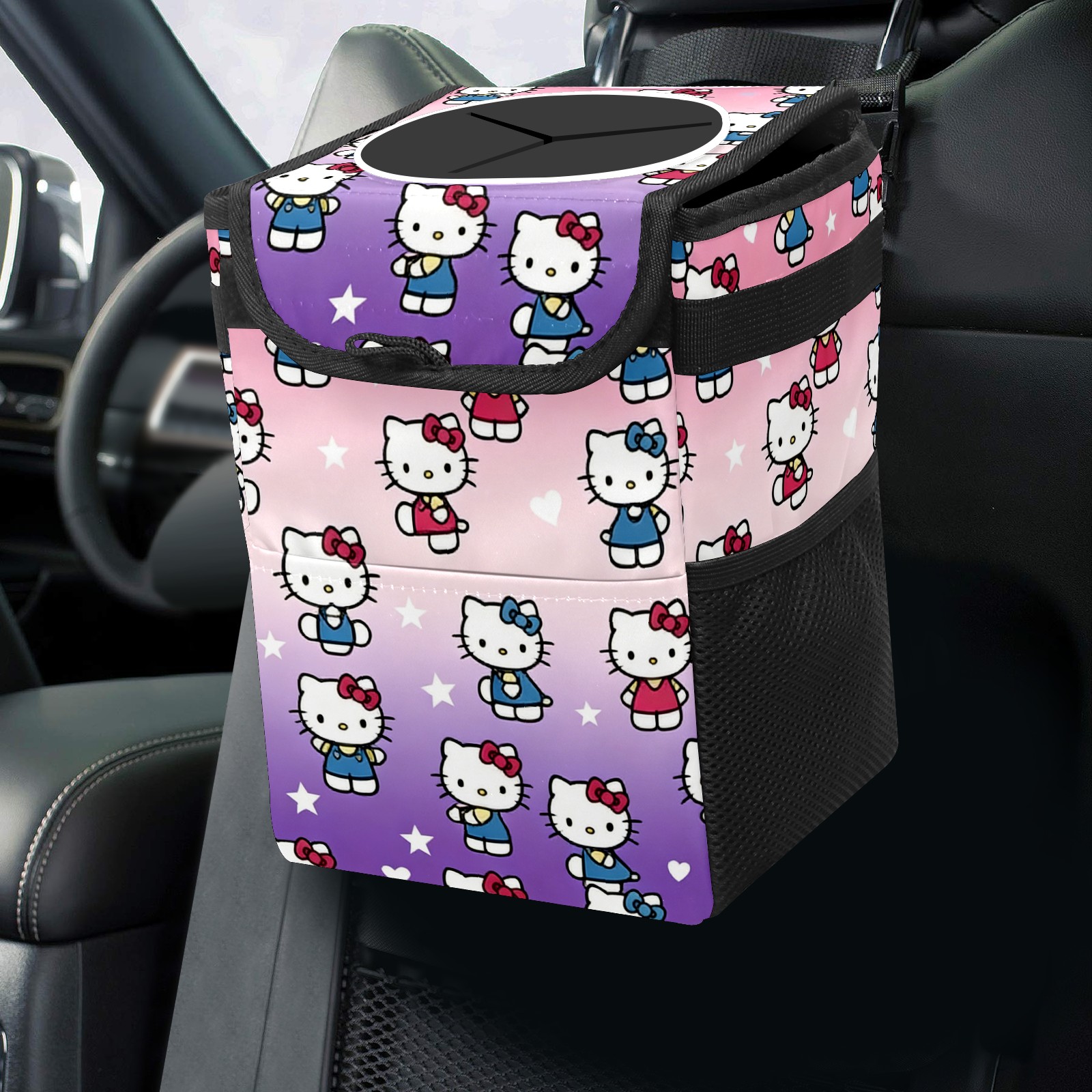Car Trash Can with Lid, Small Portable Hanging Automotive Garbage Bin for Vehicles, Leakproof Waste Bag Container for SUV Truck Van Interior Auto Travel Road Trips(Dreamy Cat Purple)