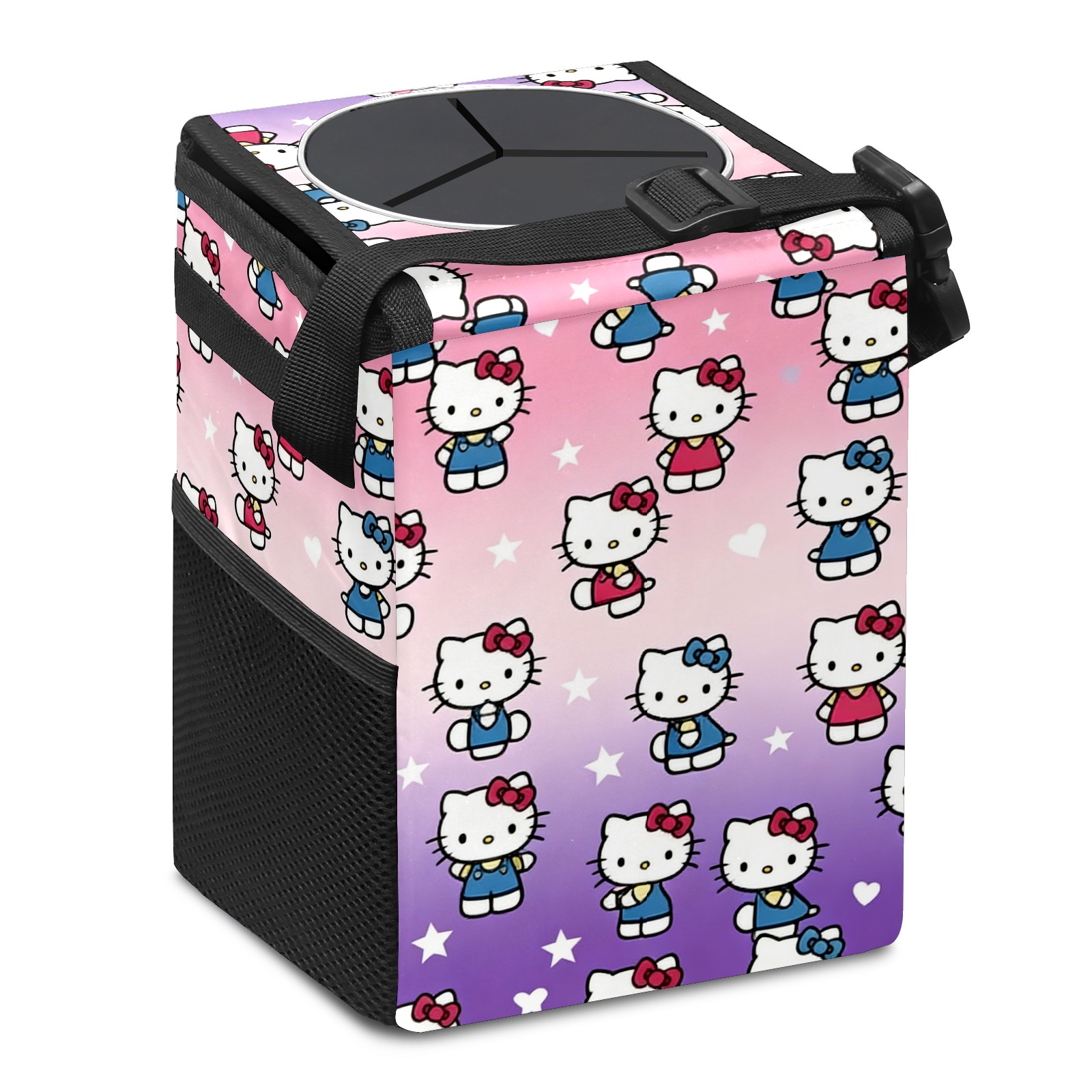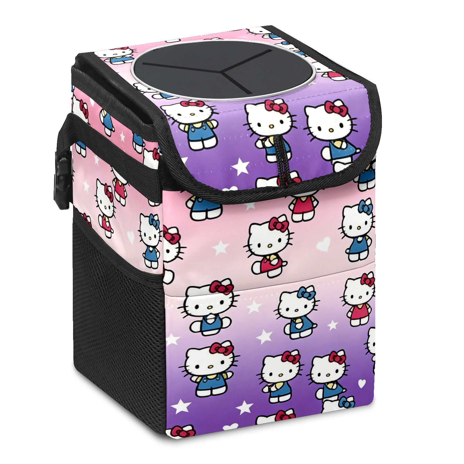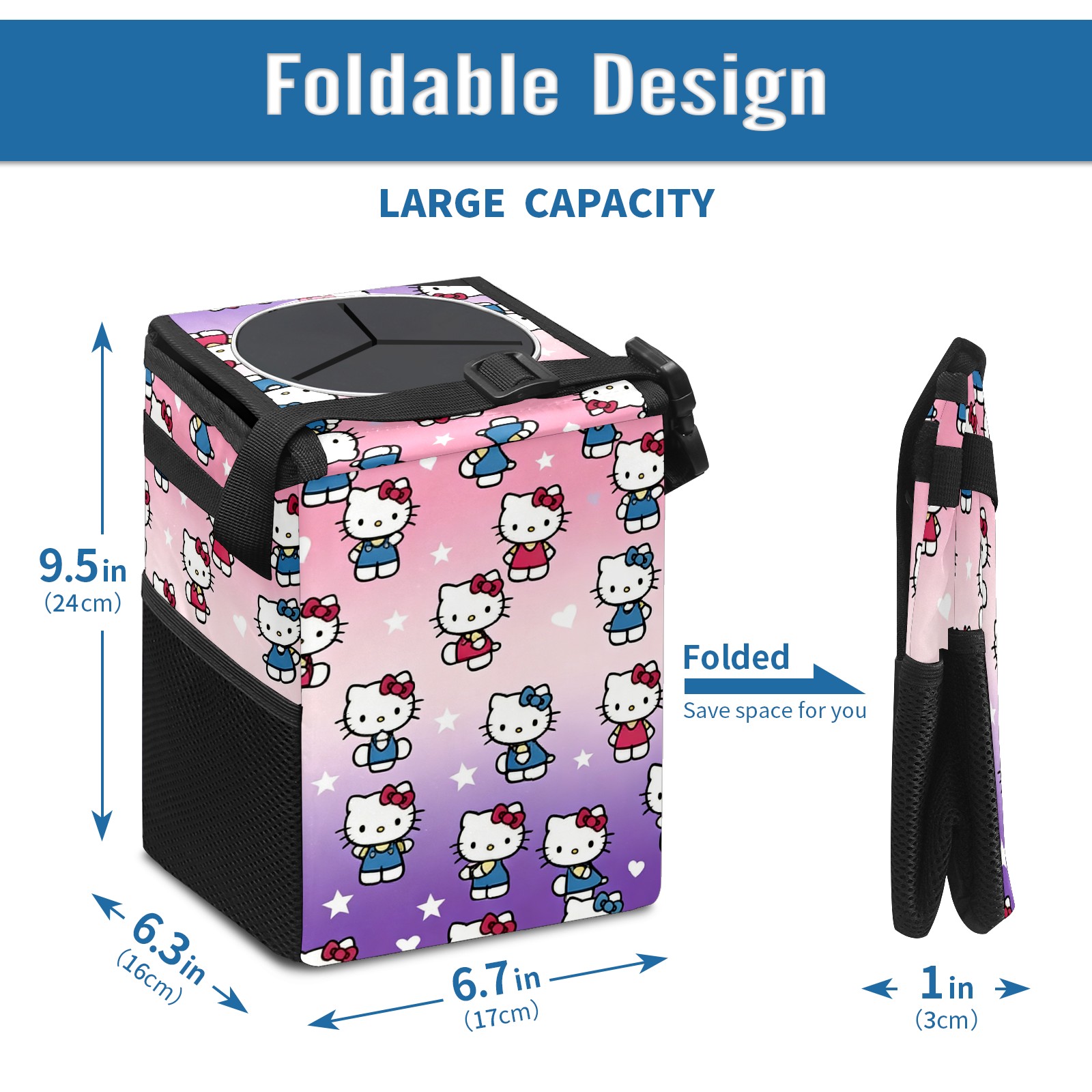 Car Trash Can with Lid, Small Portable Hanging Automotive Garbage Bin for Vehicles, Leakproof Waste Bag Container for SUV Truck Van Interior Auto Travel Road Trips(Dreamy Cat Purple)