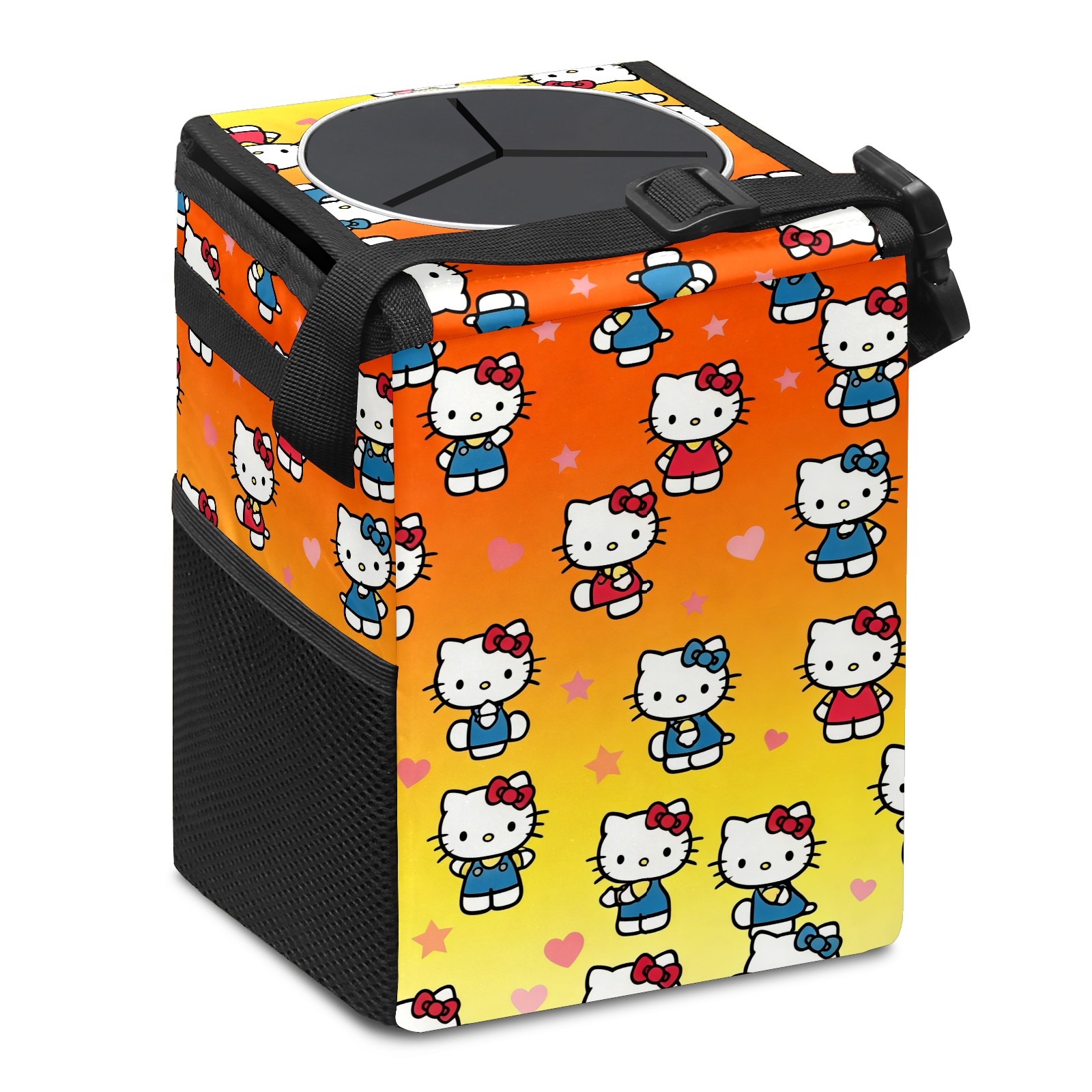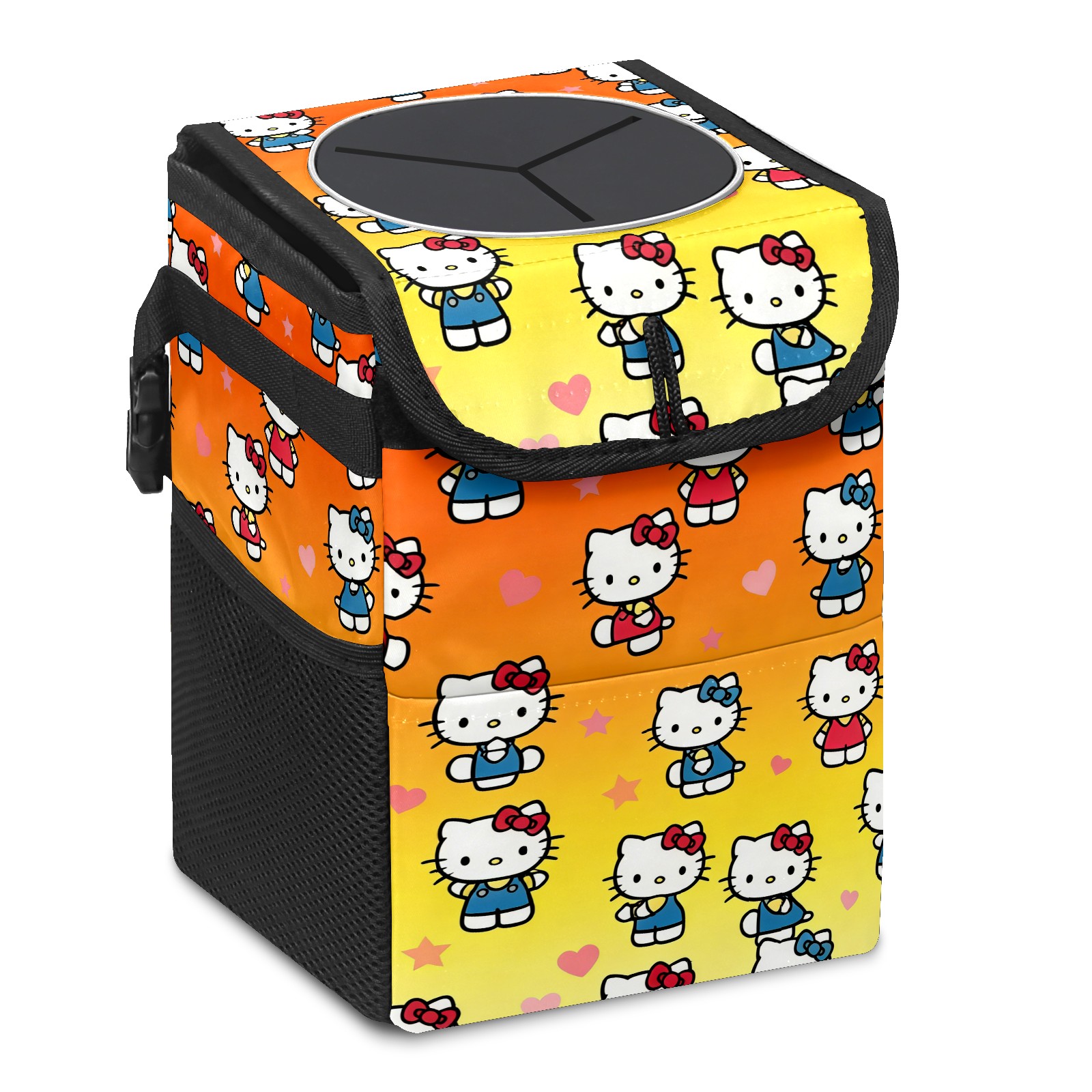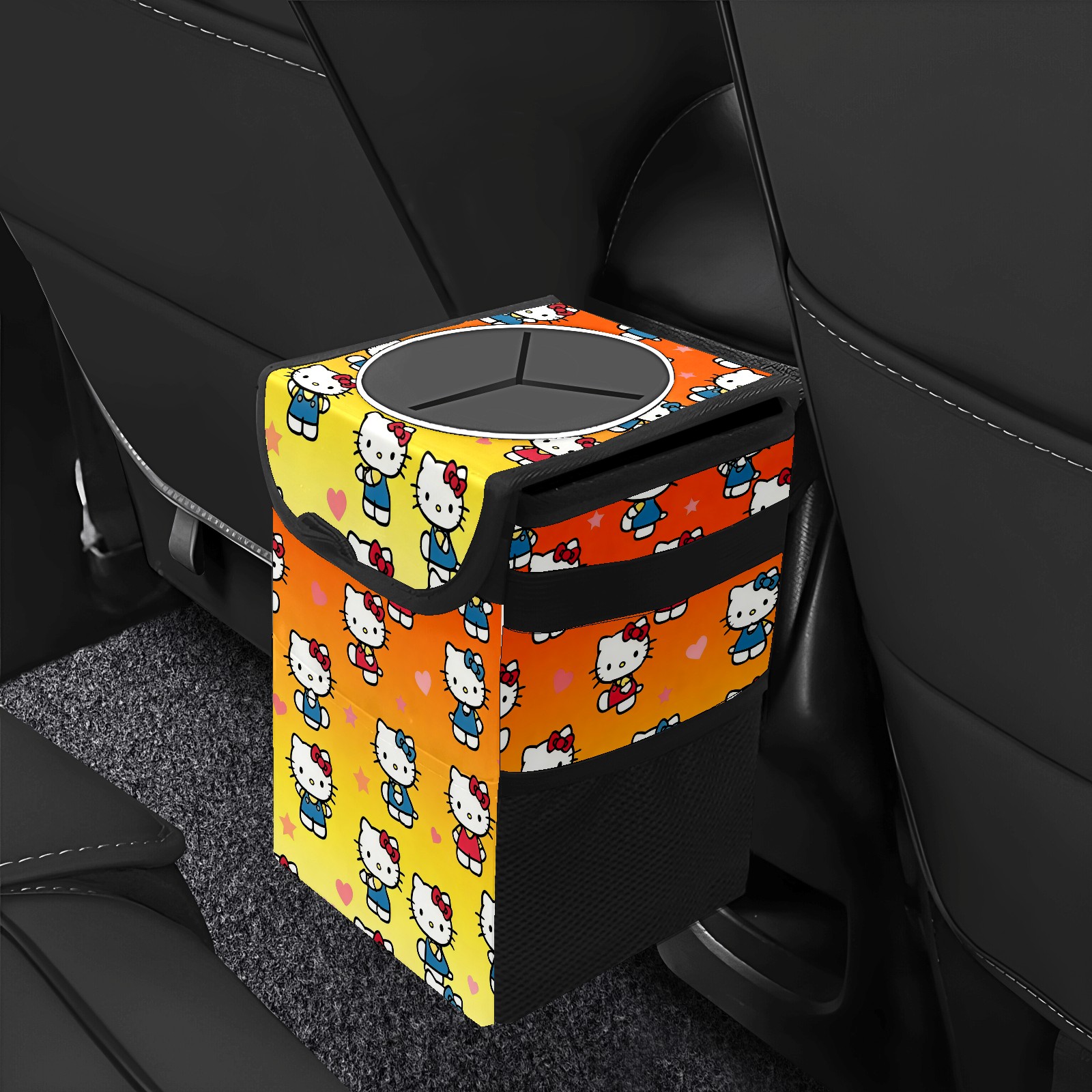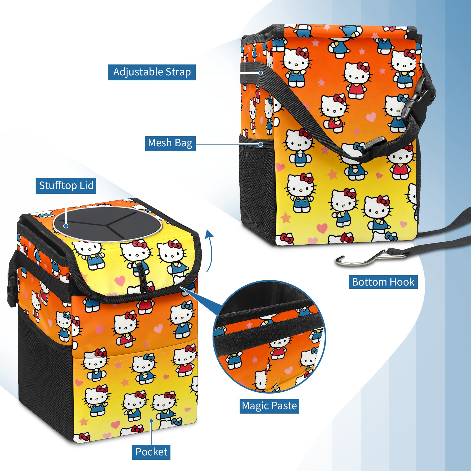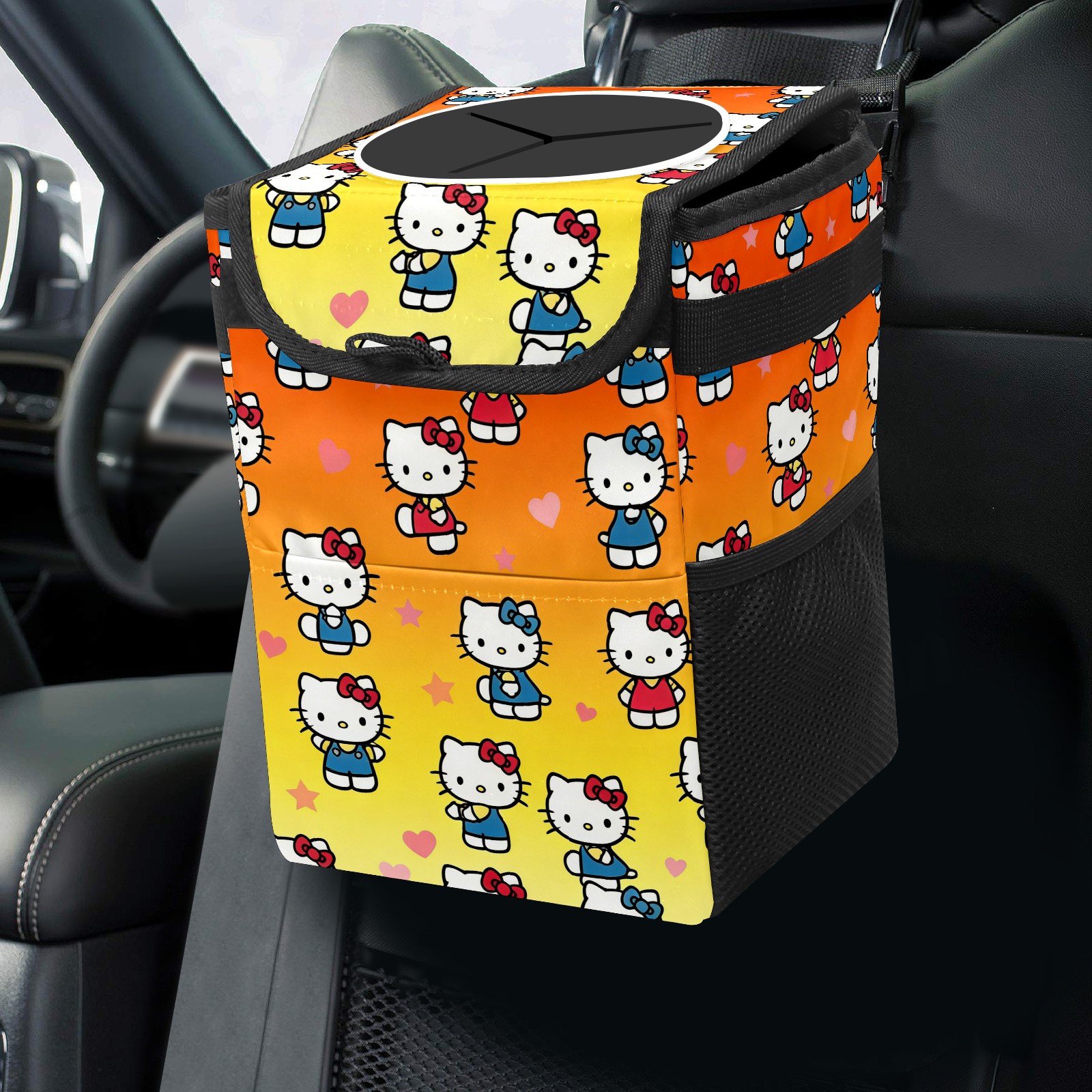 Car Trash Can with Lid, Small Portable Hanging Automotive Garbage Bin for Vehicles, Leakproof Waste Bag Container for SUV Truck Van Interior Auto Travel Road Trips(Warm Cat Orange)