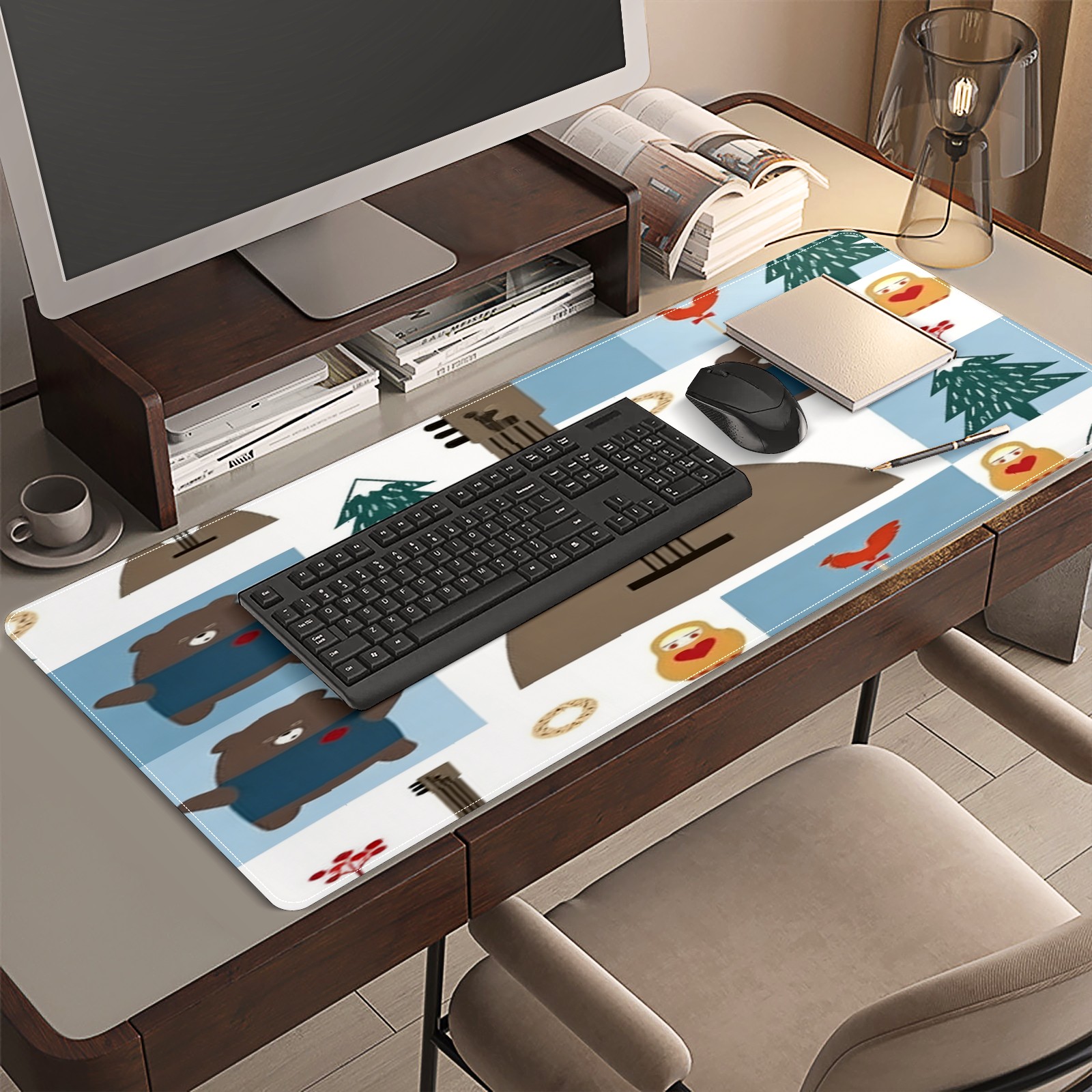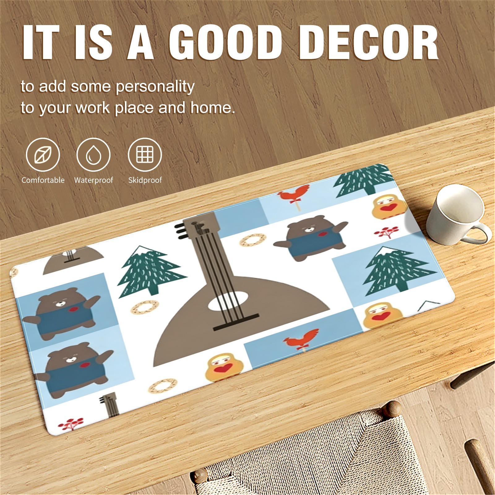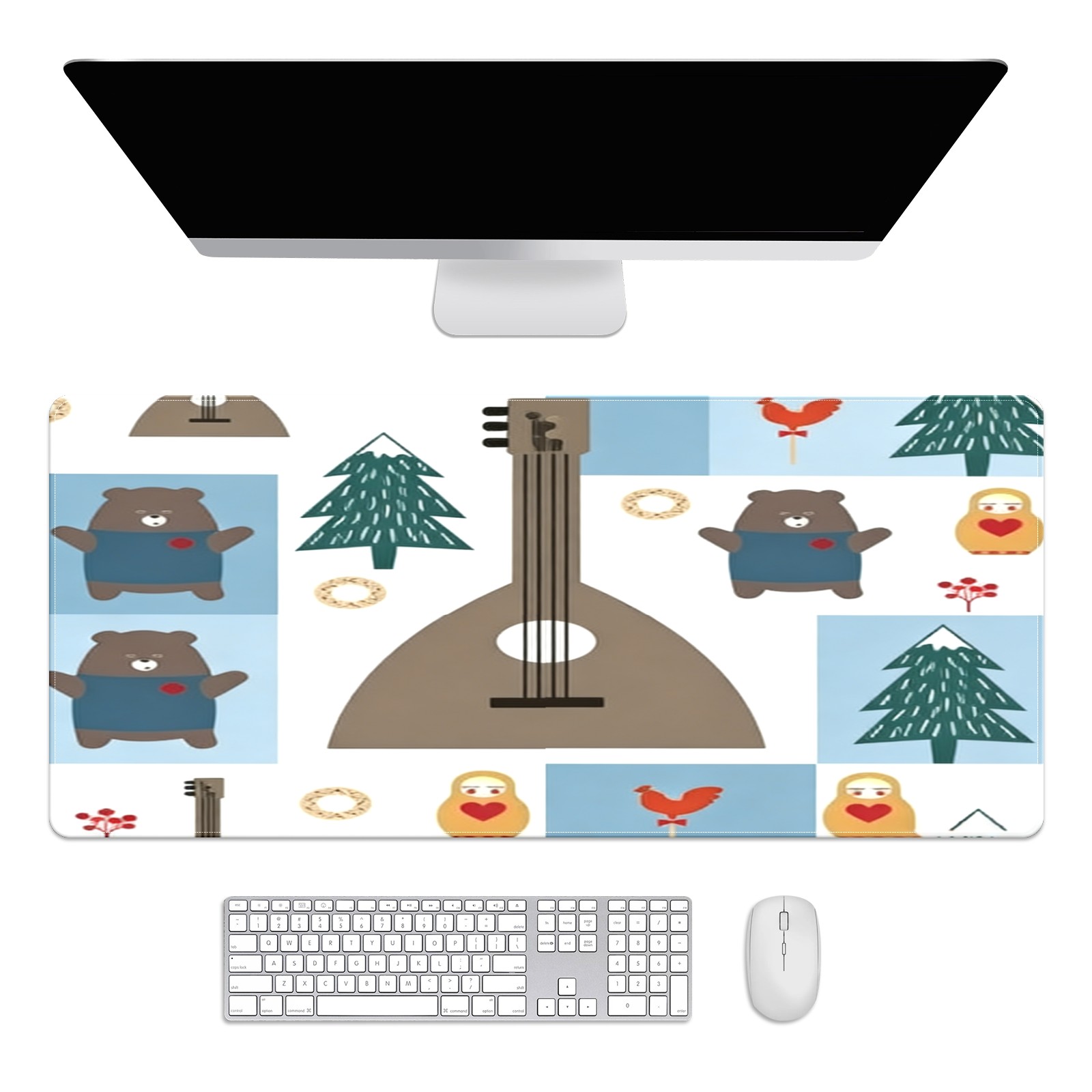 Large Gaming Mouse Pad (90x40cm), Extended Waterproof Desk Mat with Non-Slip Rubber Base, Vintage Guitars Brown for Gamers, Office & Home
