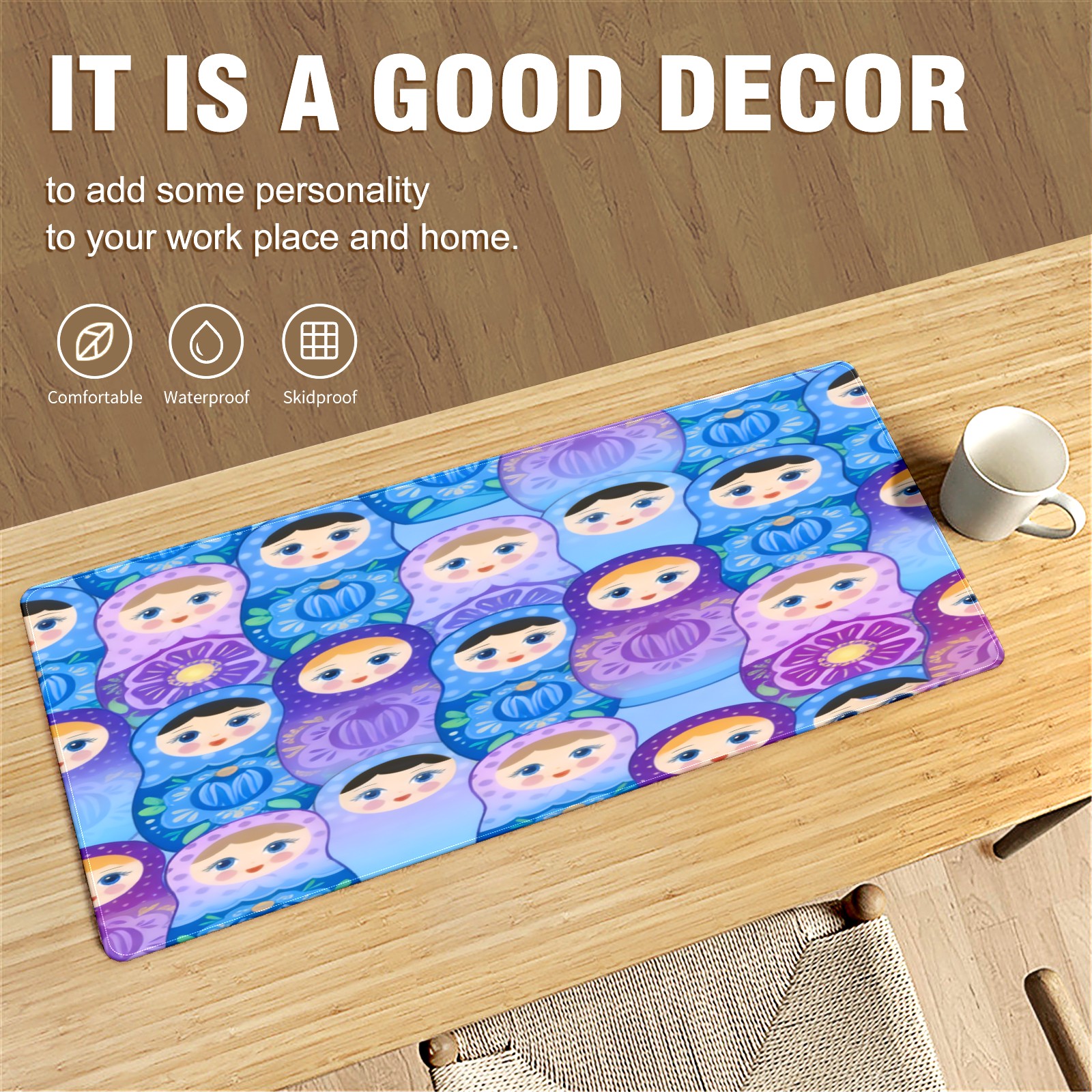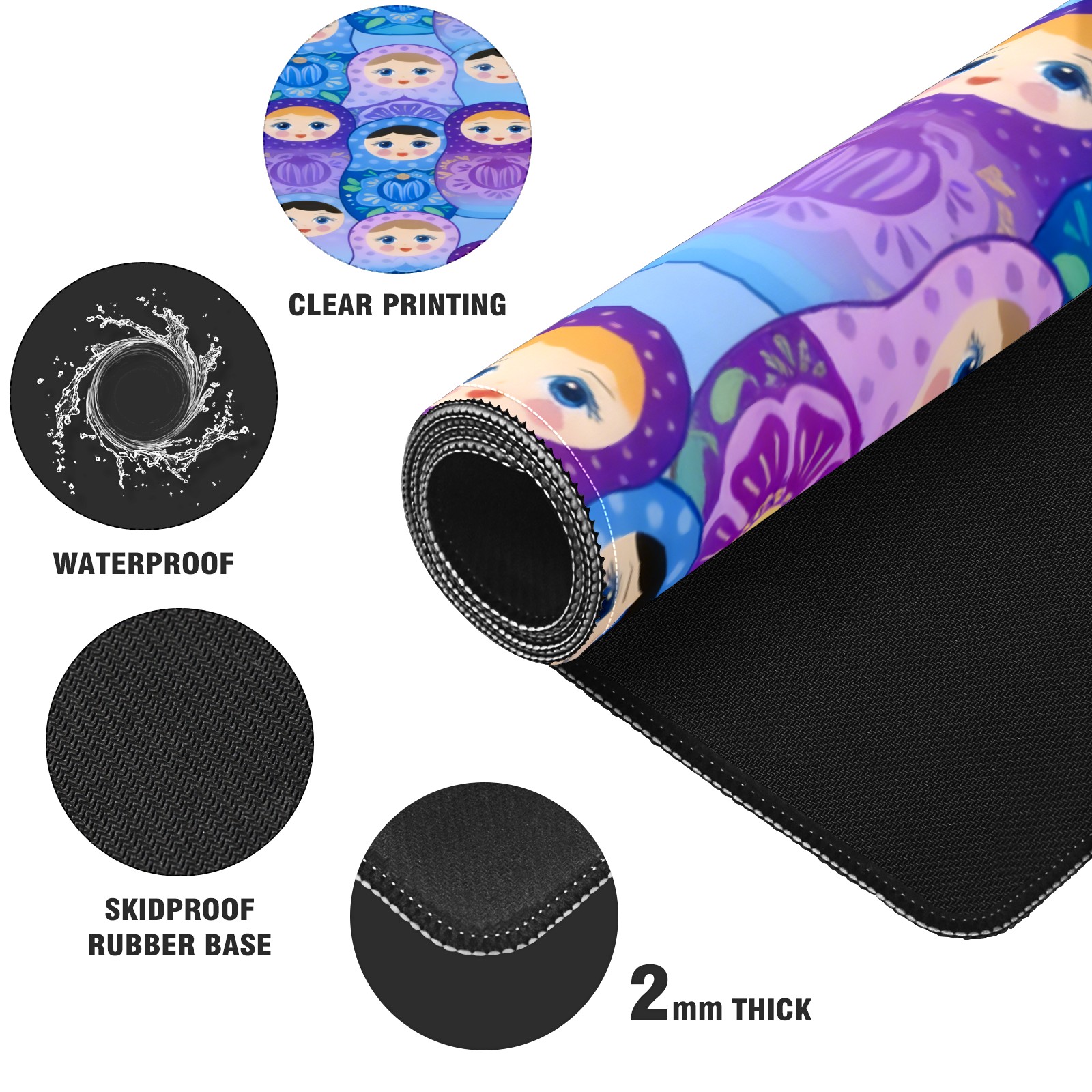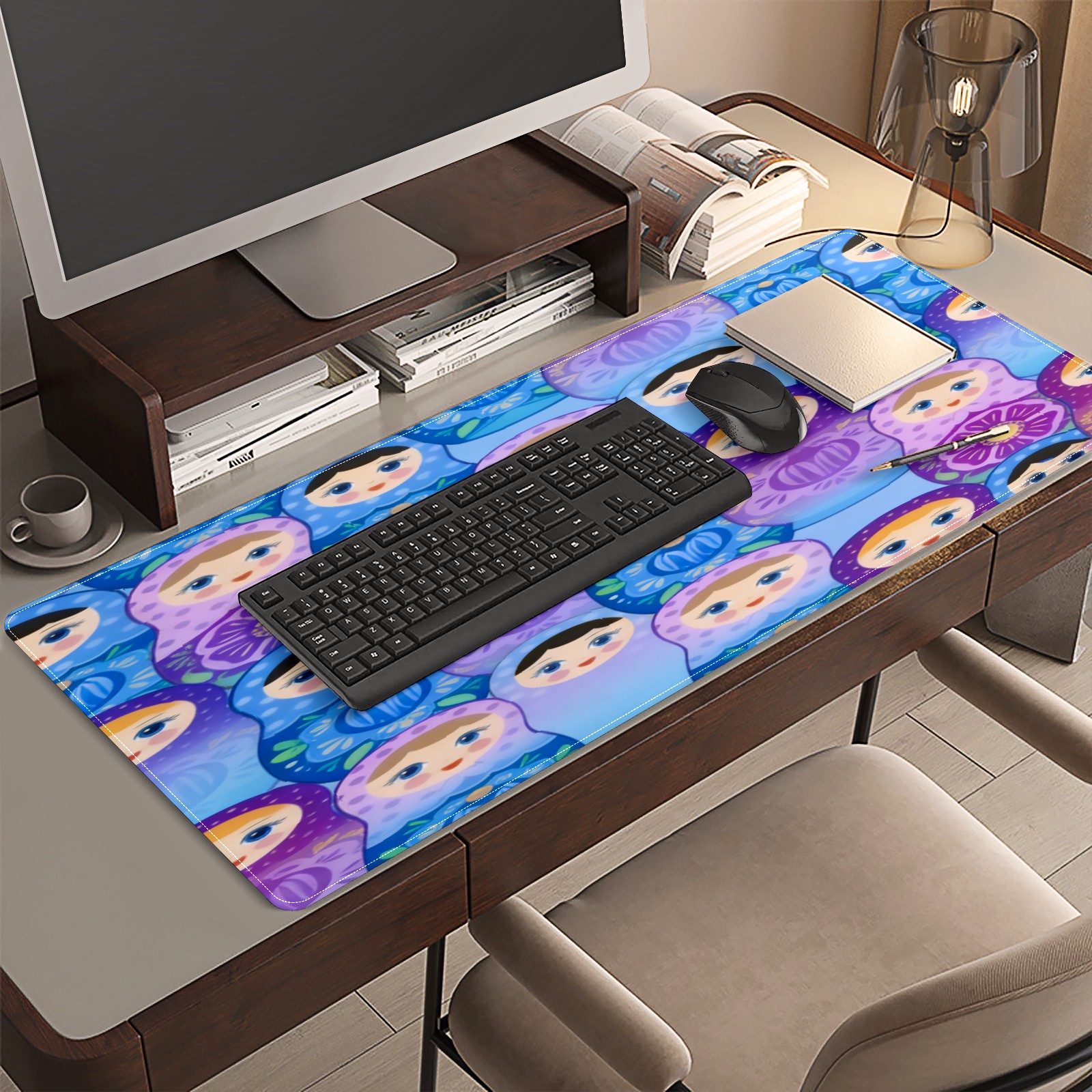 Large Gaming Mouse Pad (90x40cm), Extended Waterproof Desk Mat with Non-Slip Rubber Base, Dreamy Dolls Purple for Gamers, Office & Home