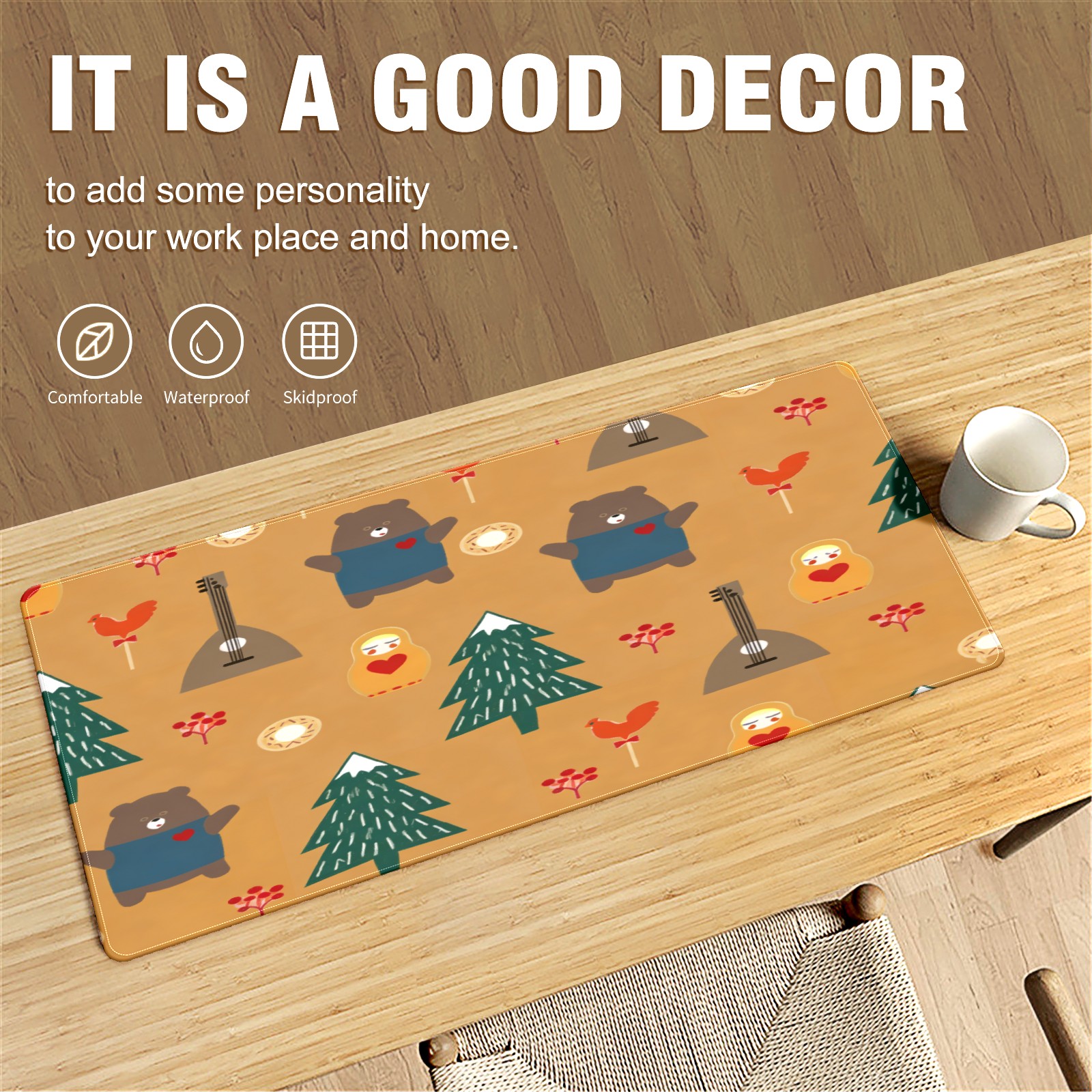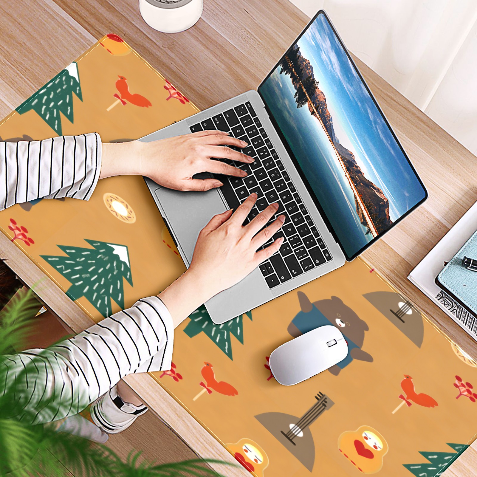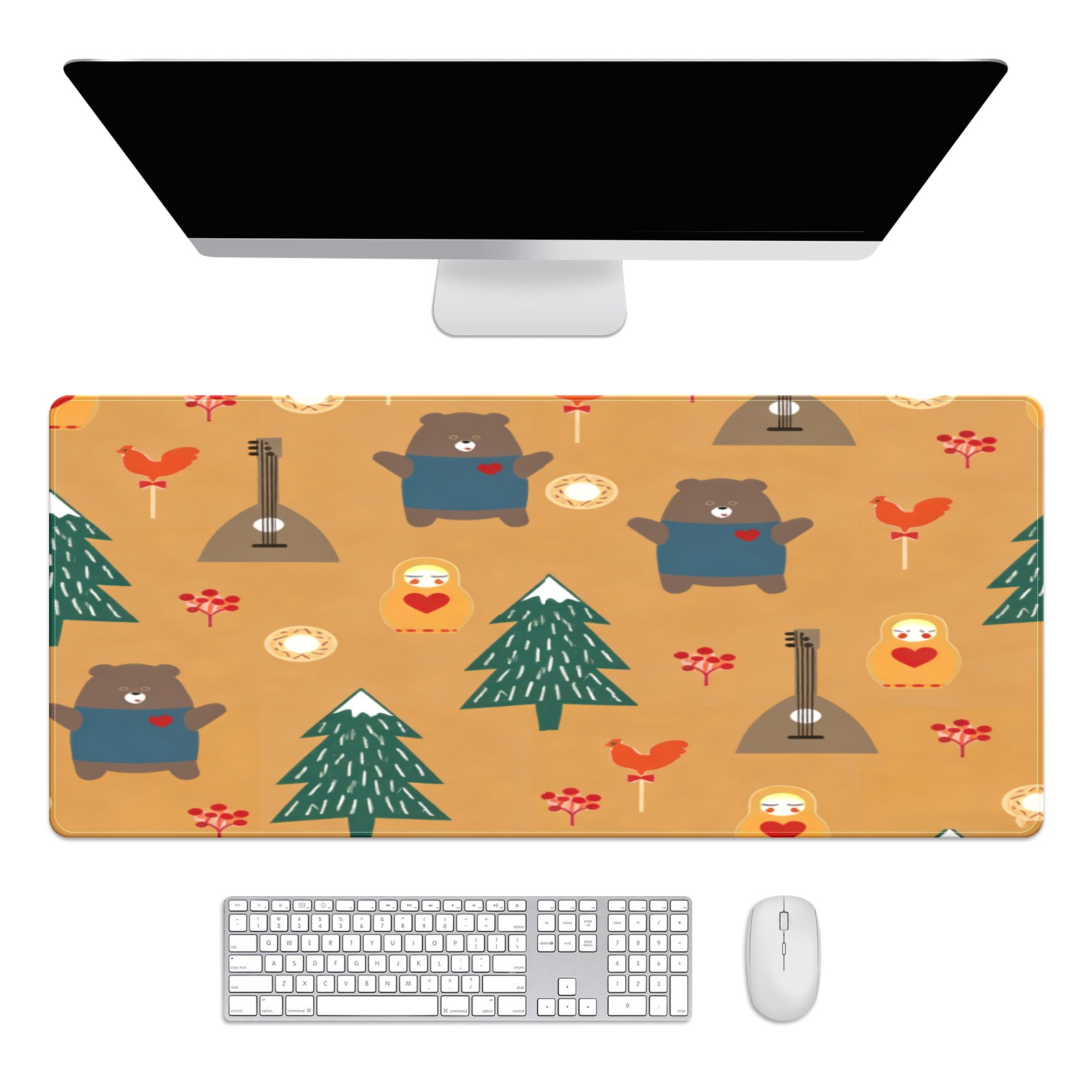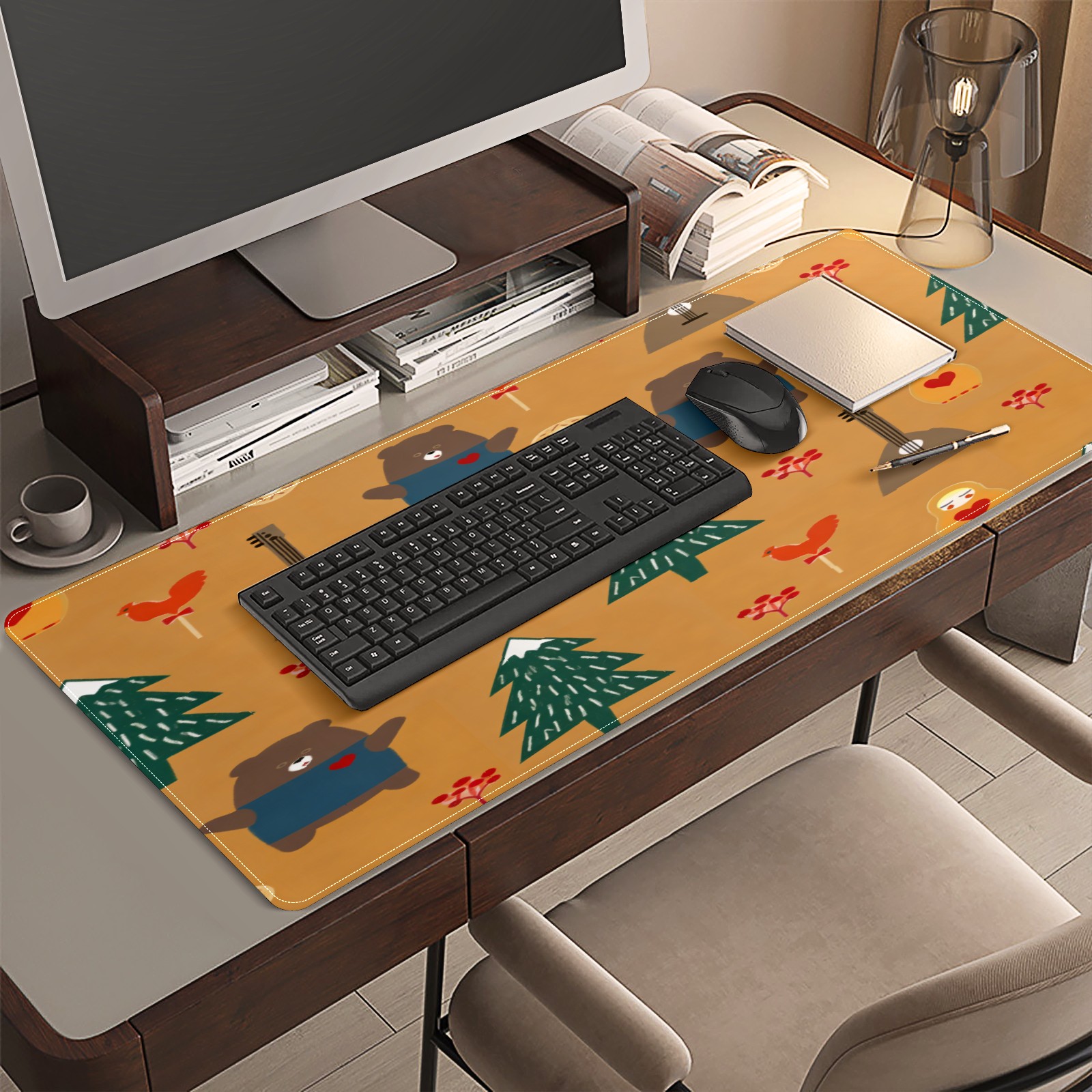 Large Gaming Mouse Pad (90x40cm), Extended Waterproof Desk Mat with Non-Slip Rubber Base, Warm Animals Brown for Gamers, Office & Home