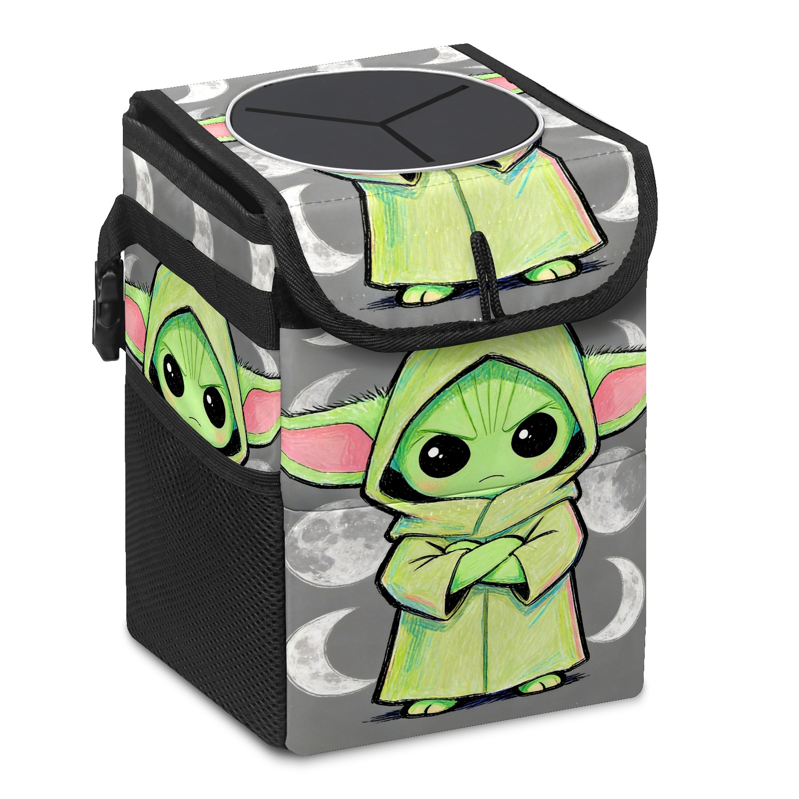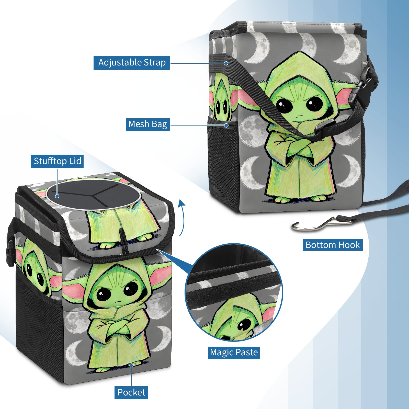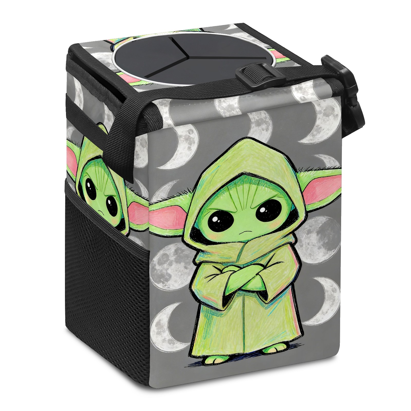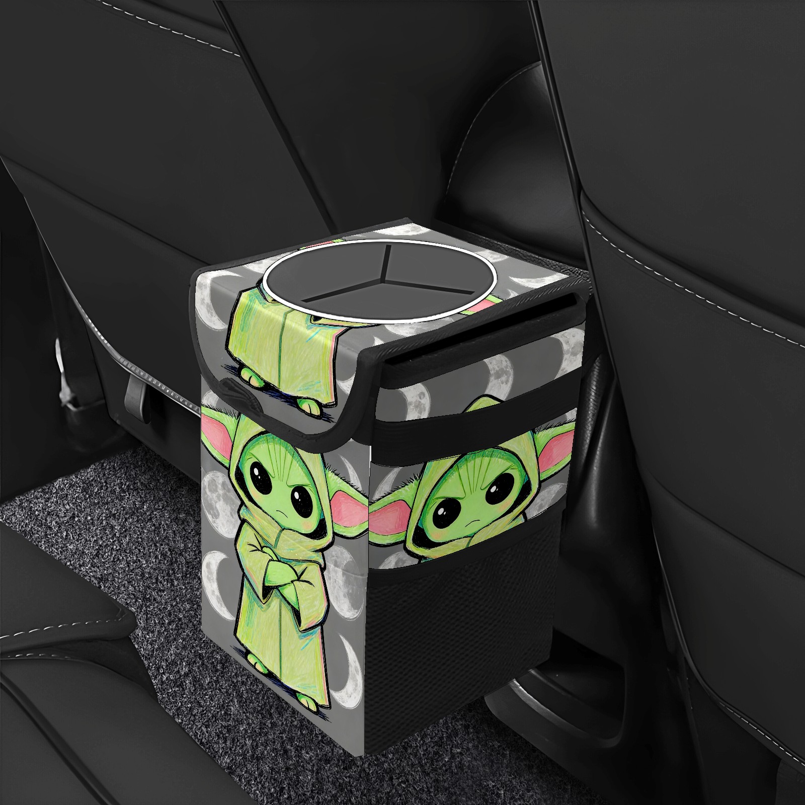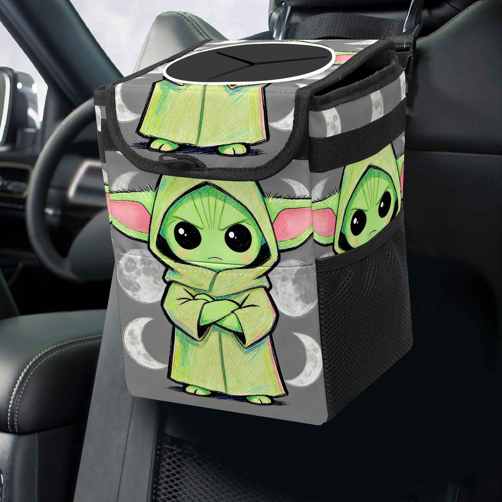 Car Trash Can with Lid, Small Portable Hanging Automotive Garbage Bin for Vehicles, Leakproof Waste Bag Container for SUV Truck Van Interior Auto Travel Road Trips(Baby Yoda)