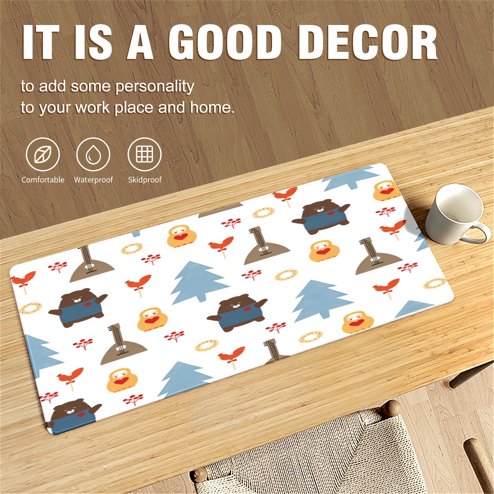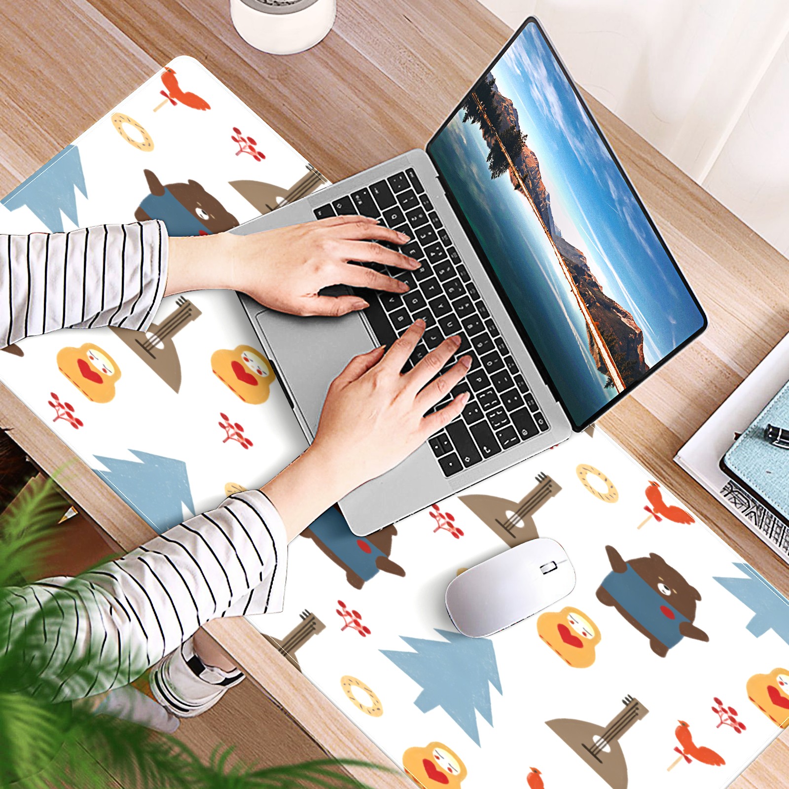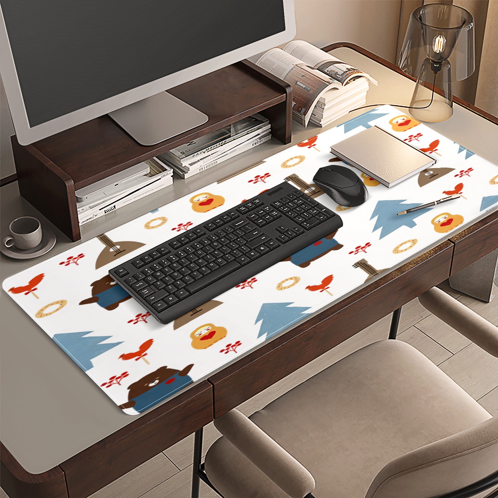Large Gaming Mouse Pad (90x40cm), Extended Waterproof Desk Mat with Non-Slip Rubber Base, Fresh Forest Brown for Gamers, Office & Home