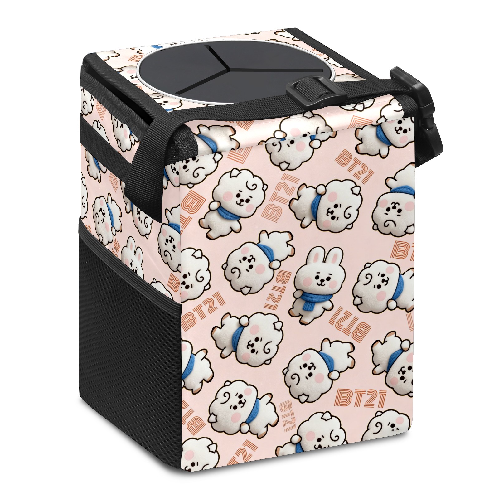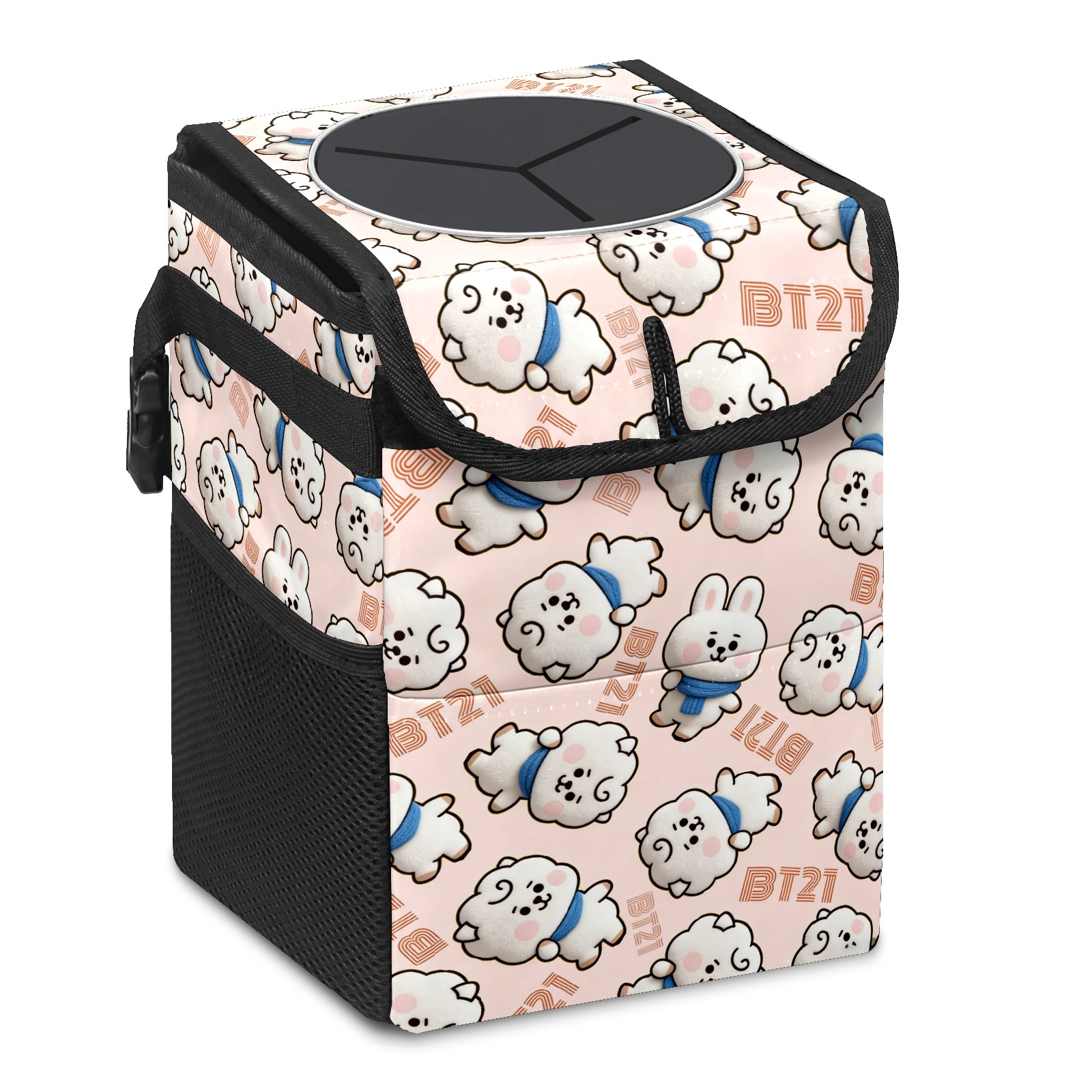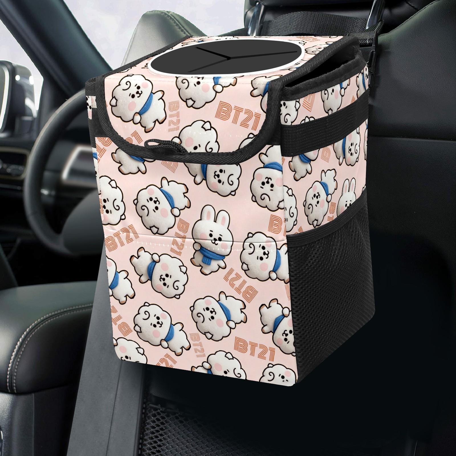 Car Trash Can with Lid, Small Portable Hanging Automotive Garbage Bin for Vehicles, Leakproof Waste Bag Container for SUV Truck Van Interior Auto Travel Road Trips(Blush Puppies)