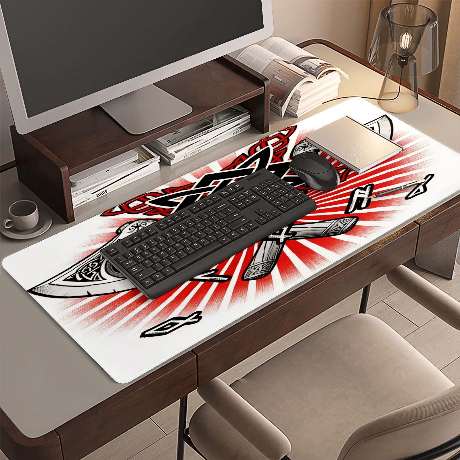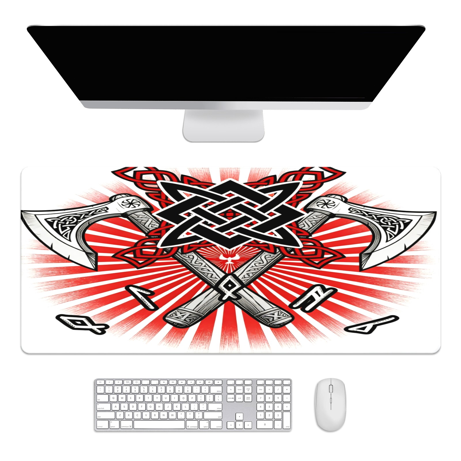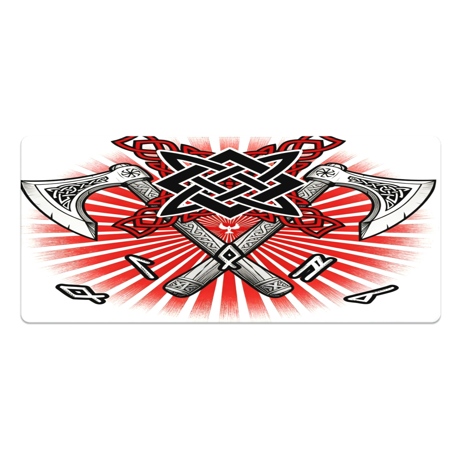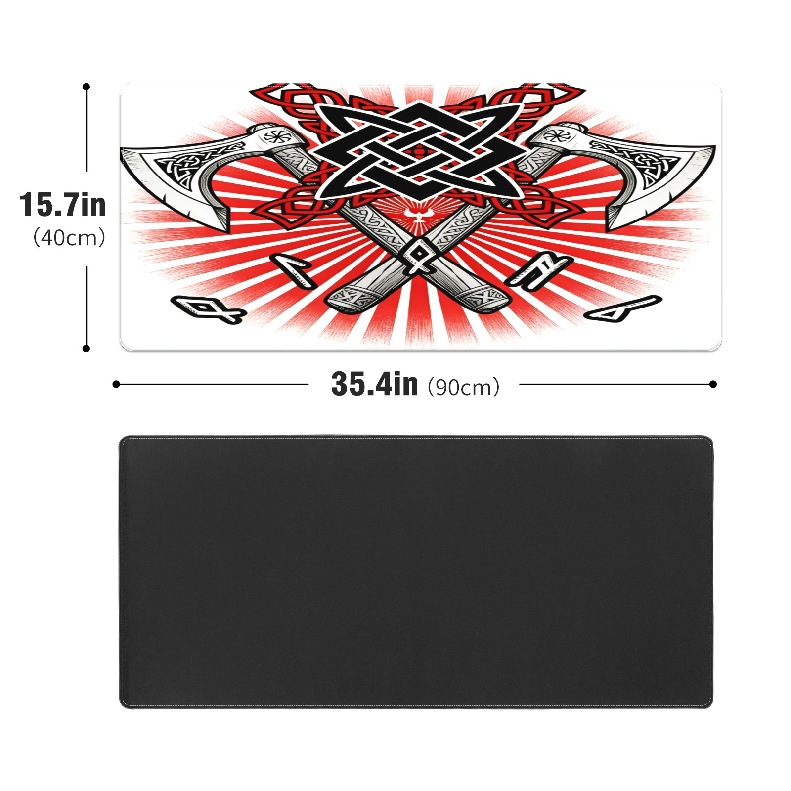 Large Gaming Mouse Pad (90x40cm), Extended Waterproof Desk Mat with Non-Slip Rubber Base, Cool Axes Red for Gamers, Office & Home