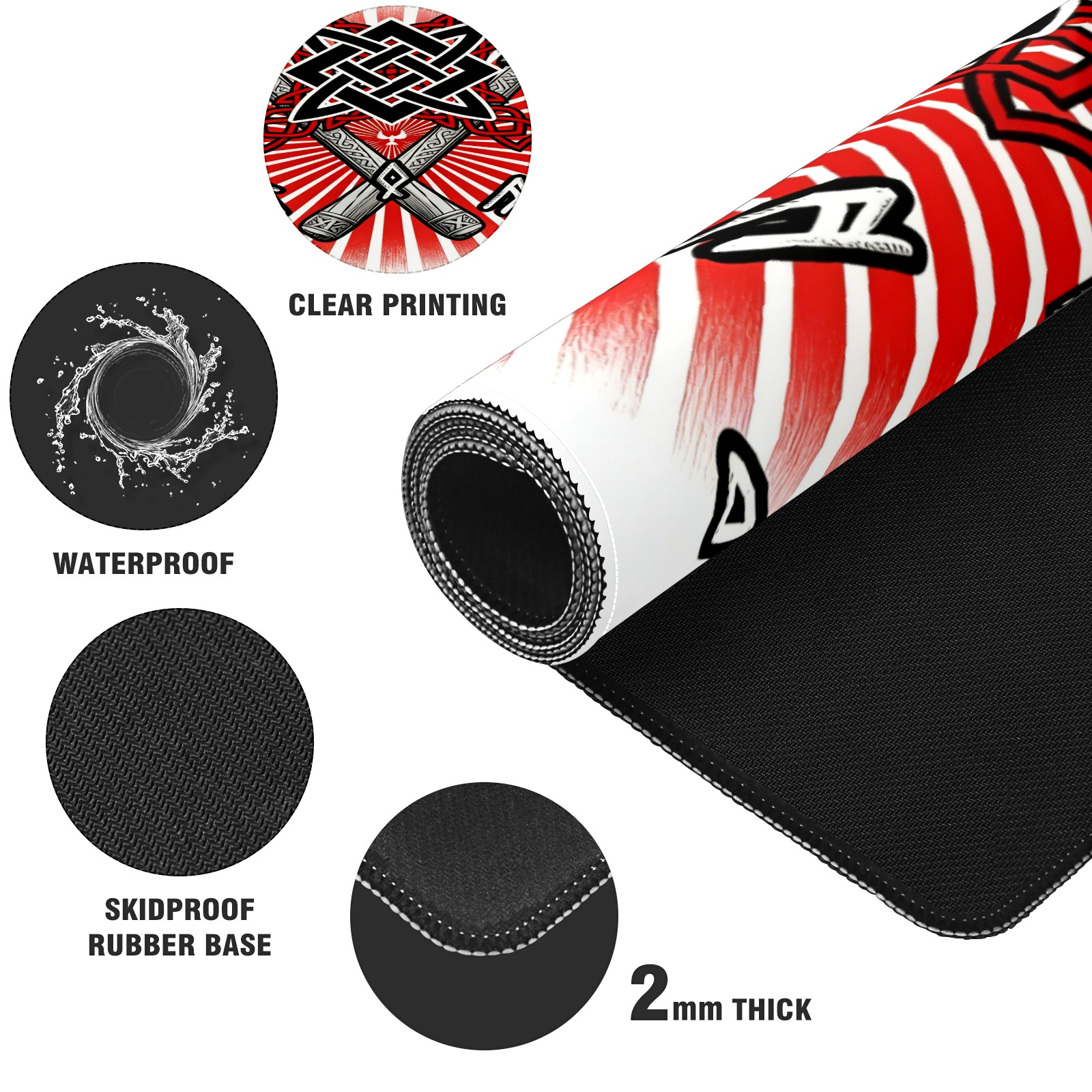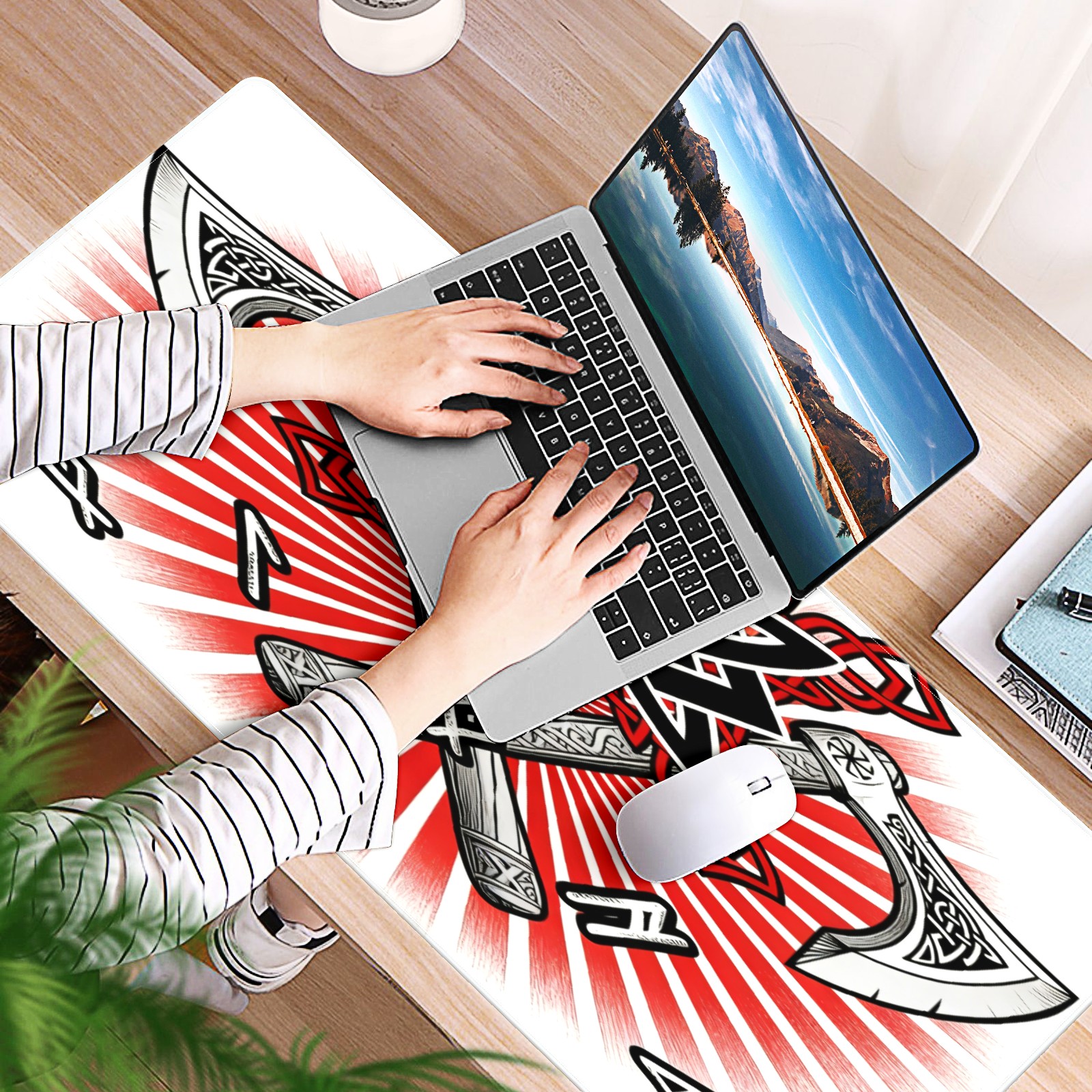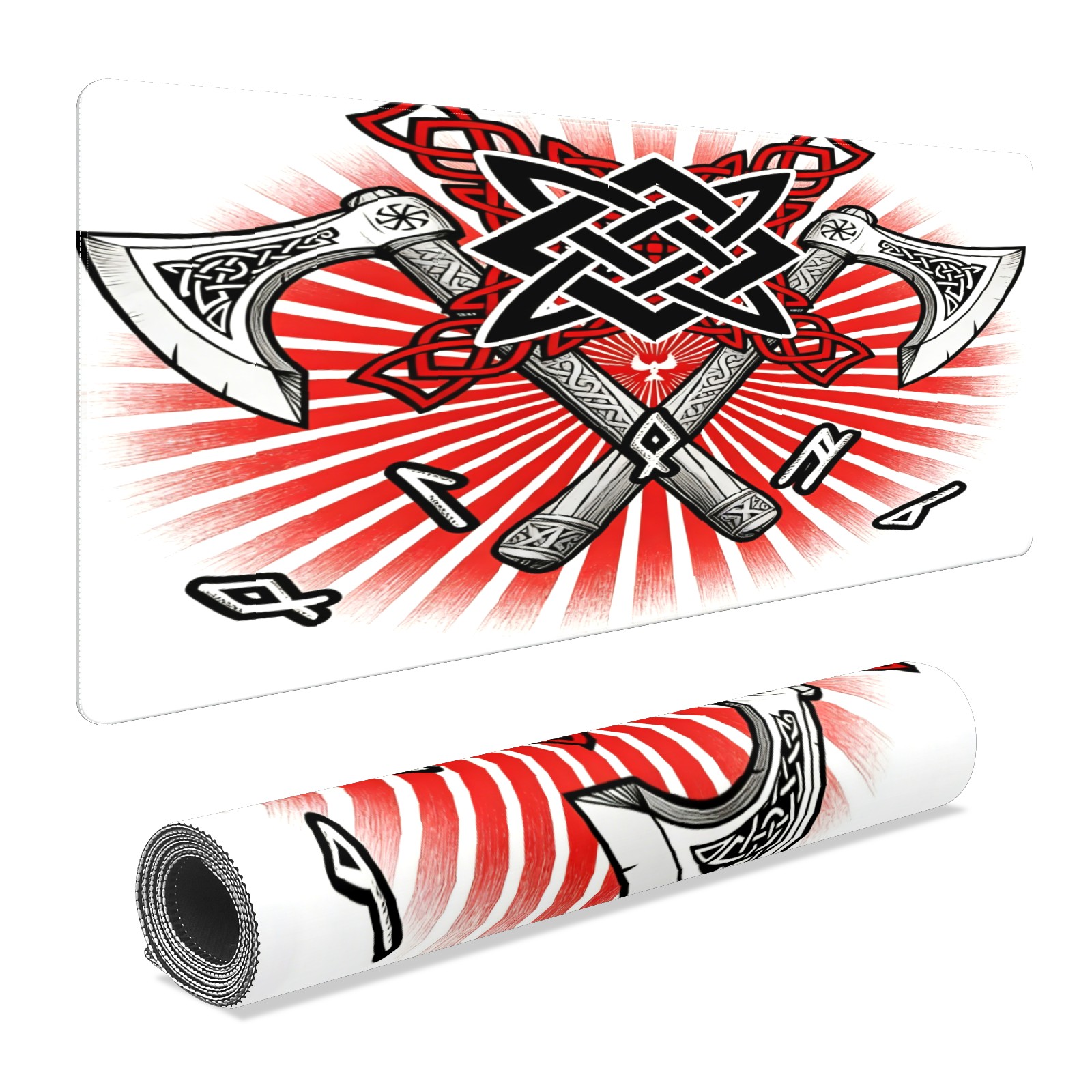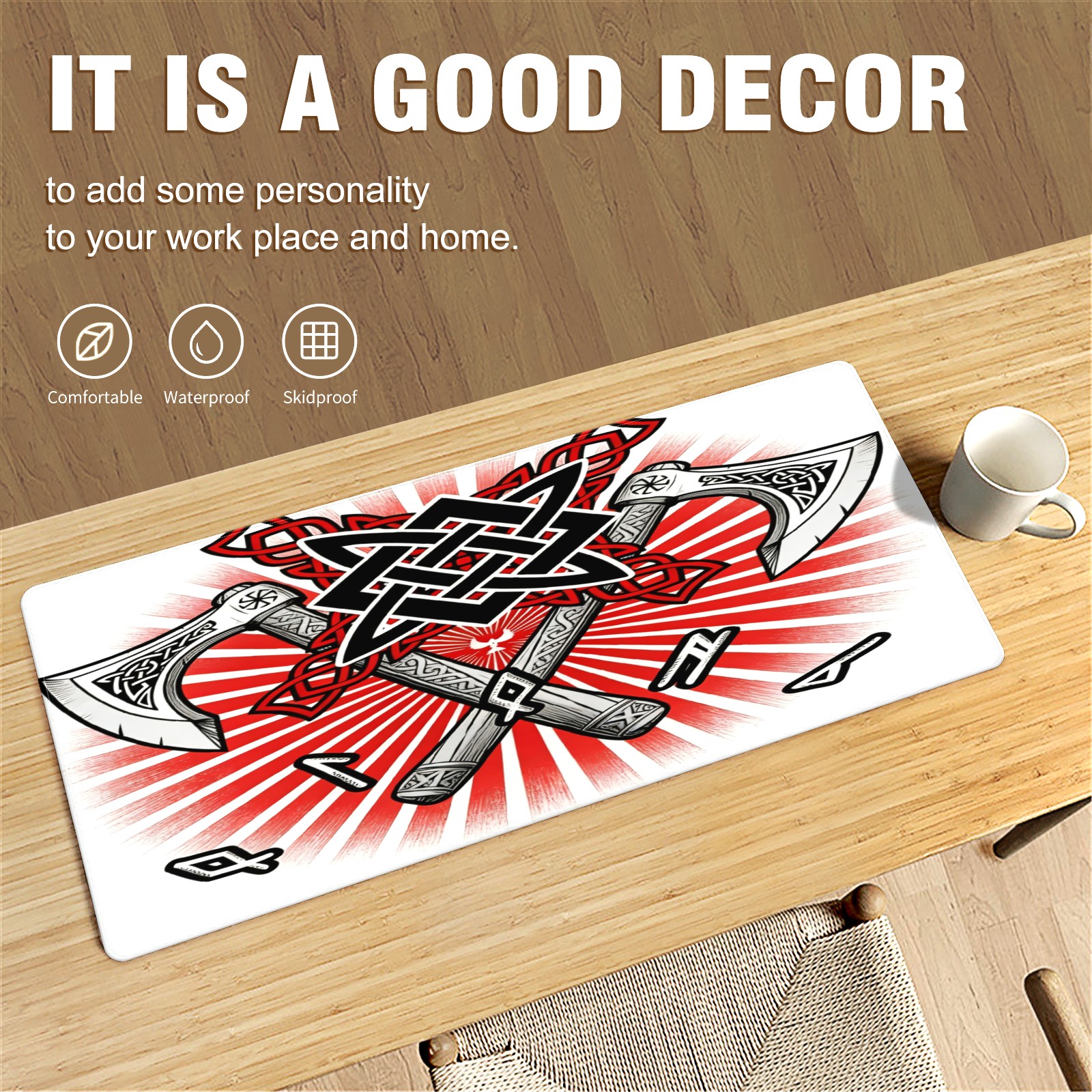 Large Gaming Mouse Pad (90x40cm), Extended Waterproof Desk Mat with Non-Slip Rubber Base, Cool Axes Red for Gamers, Office & Home