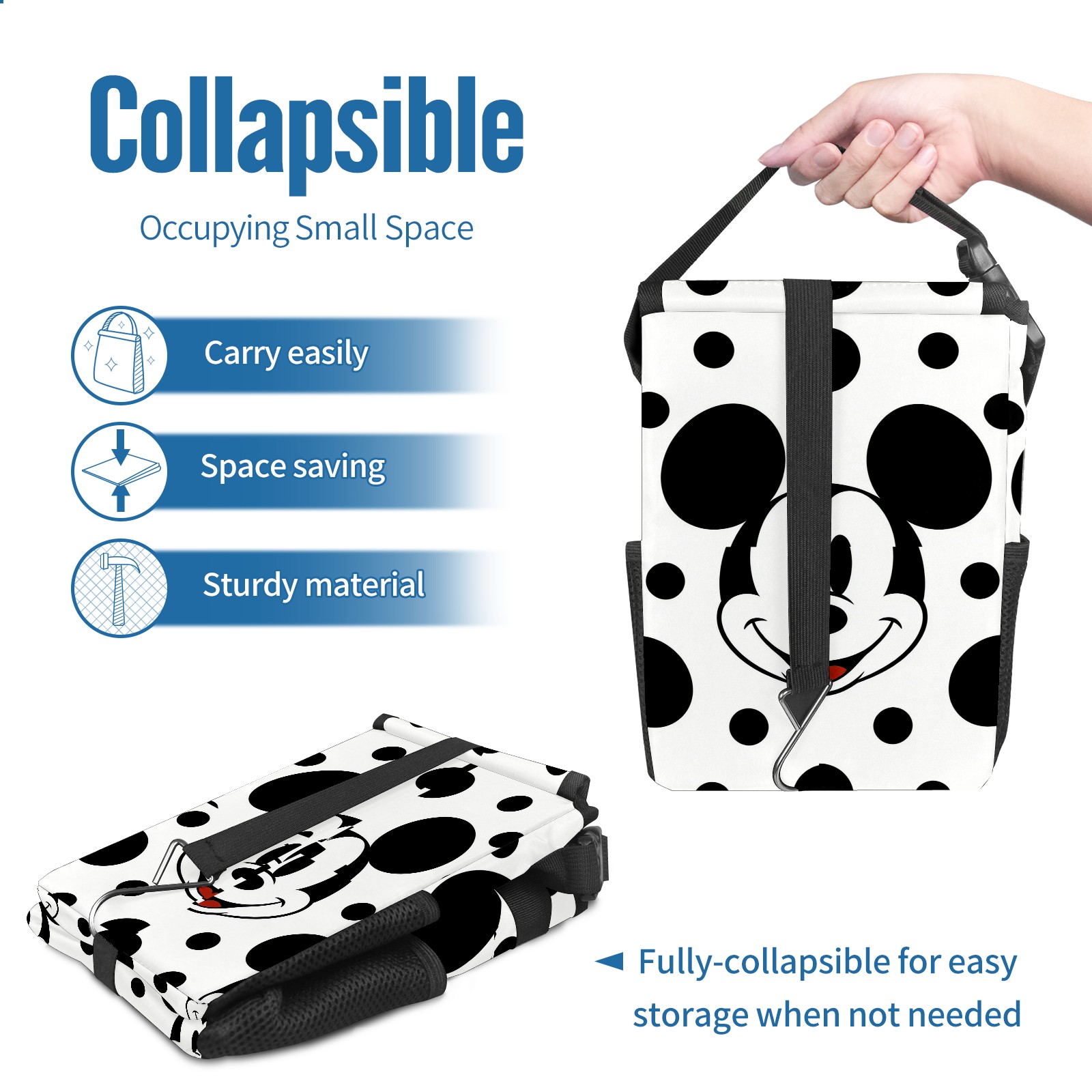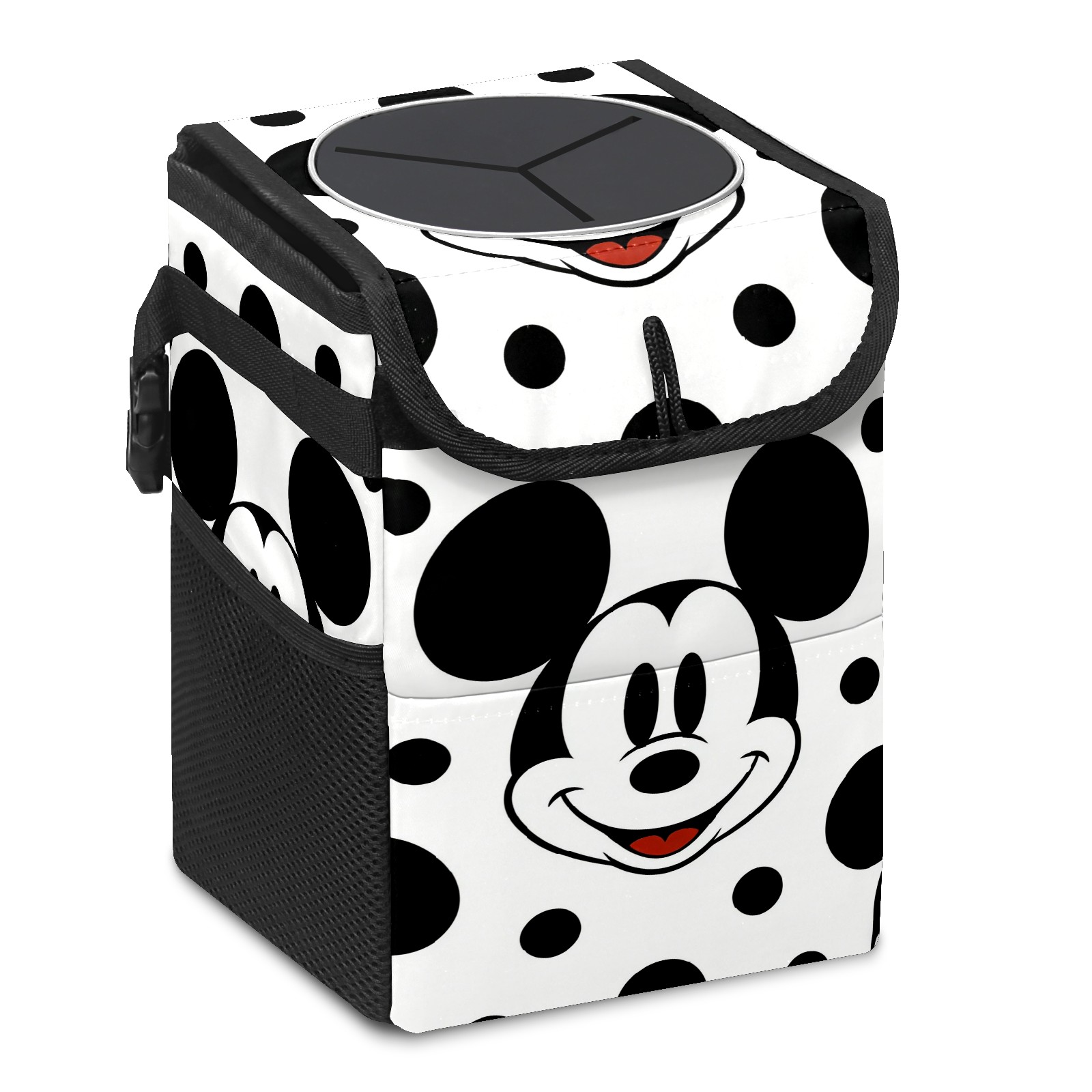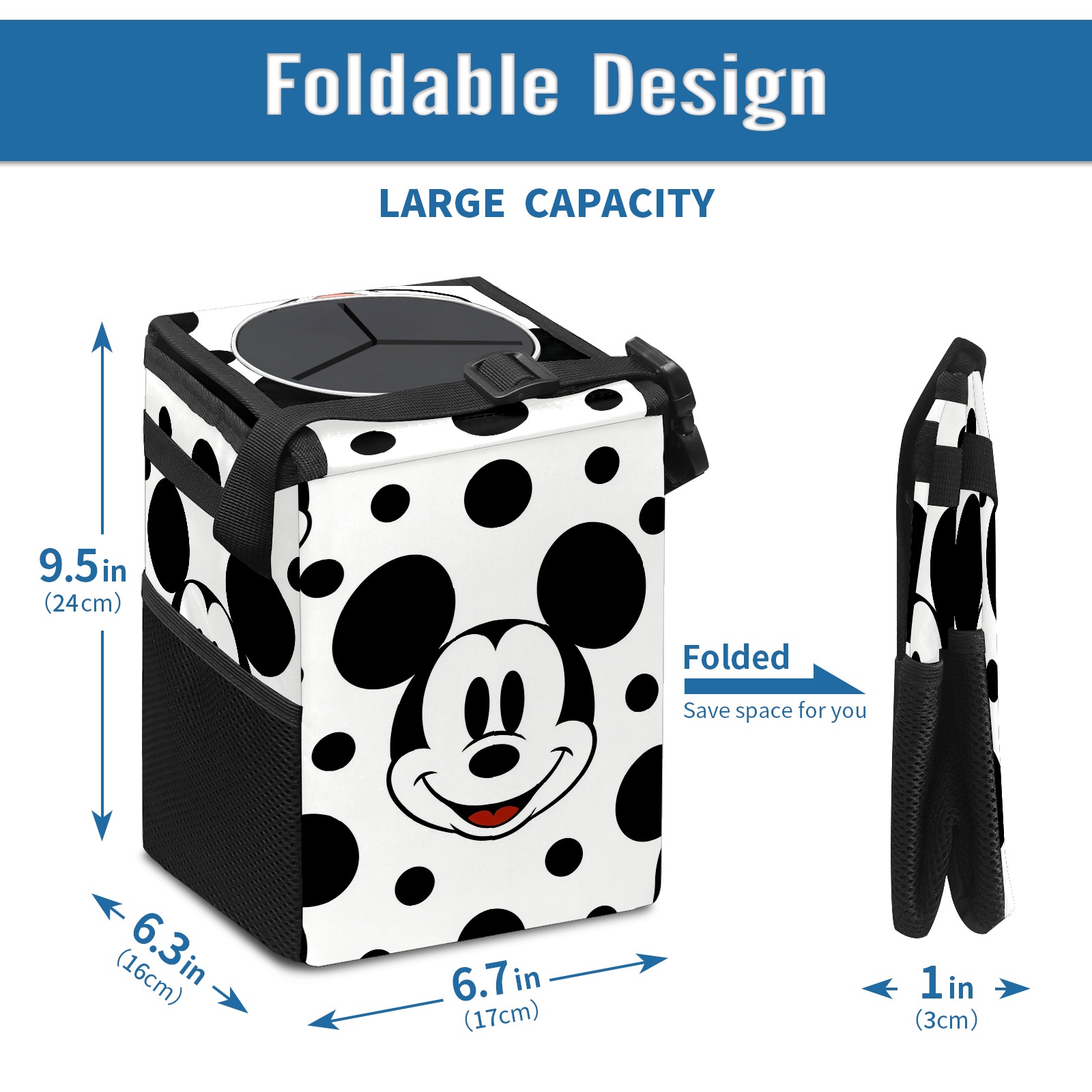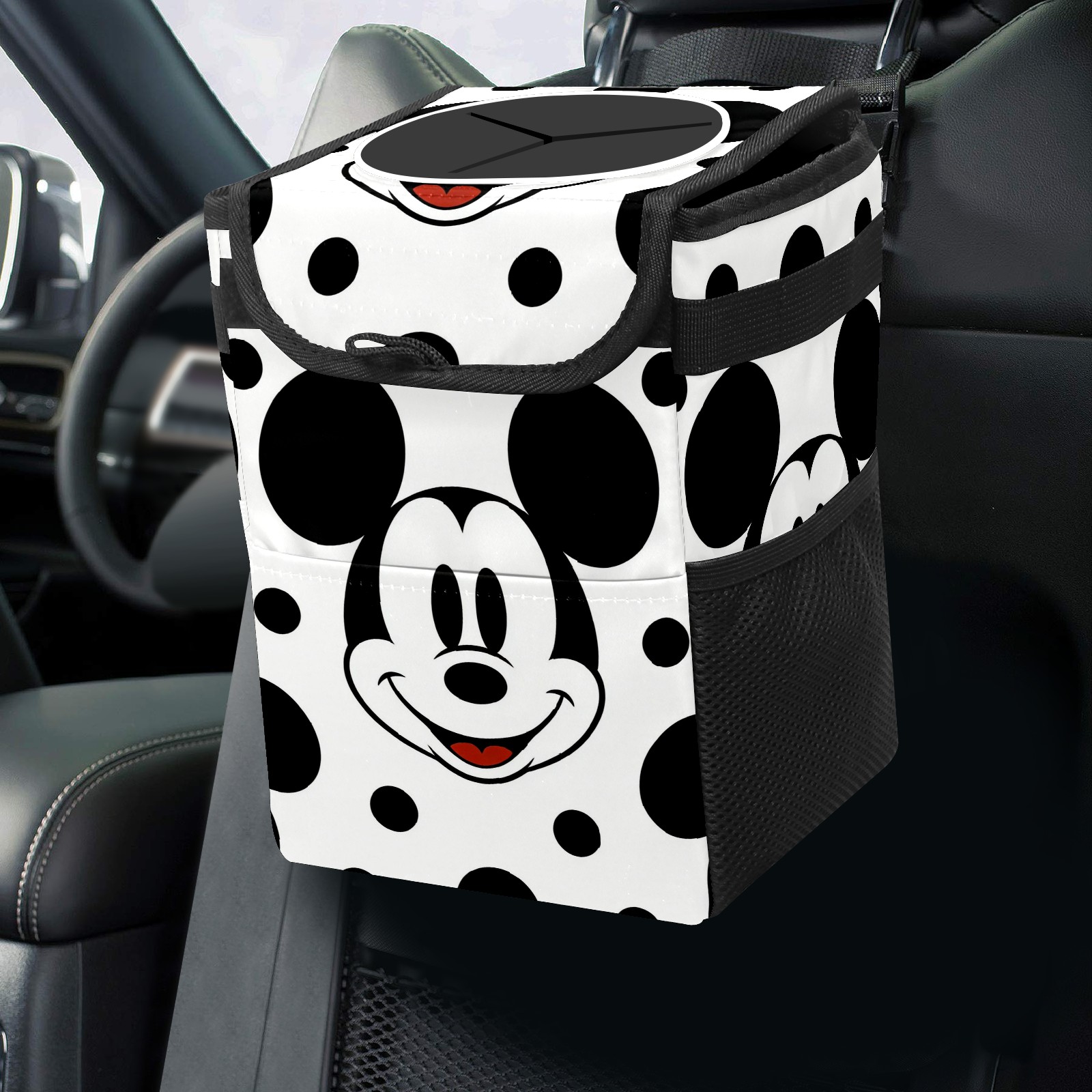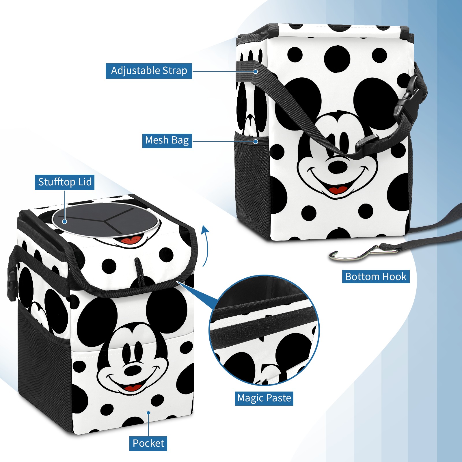 Car Trash Can with Lid, Small Portable Hanging Automotive Garbage Bin for Vehicles, Leakproof Waste Bag Container for SUV Truck Van Interior Auto Travel Road Trips(Polka Dots)