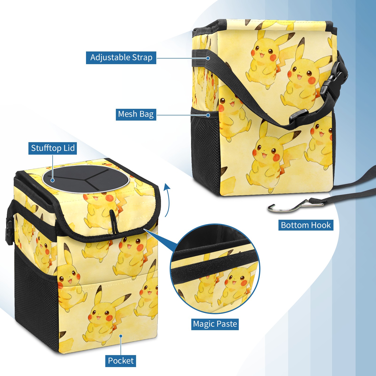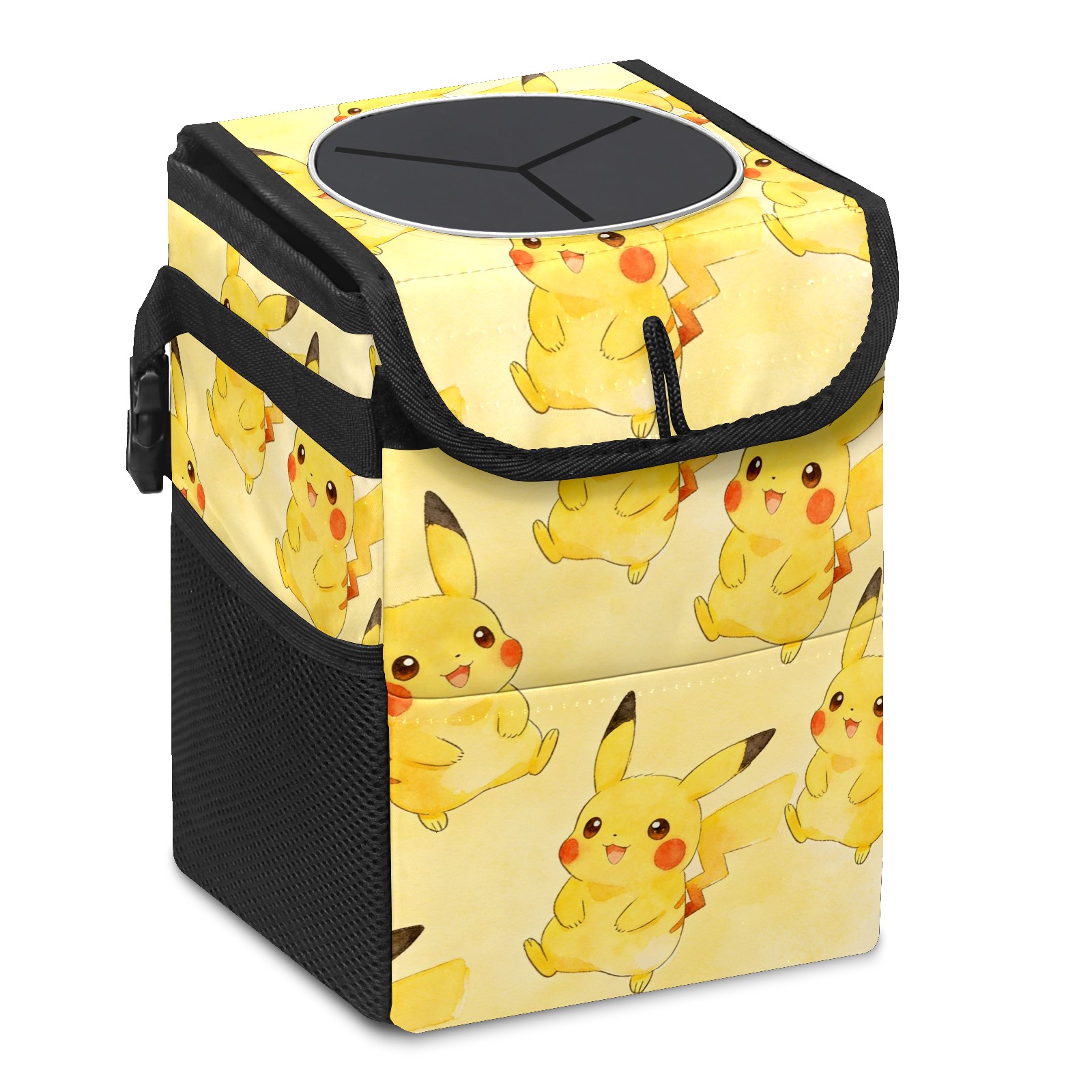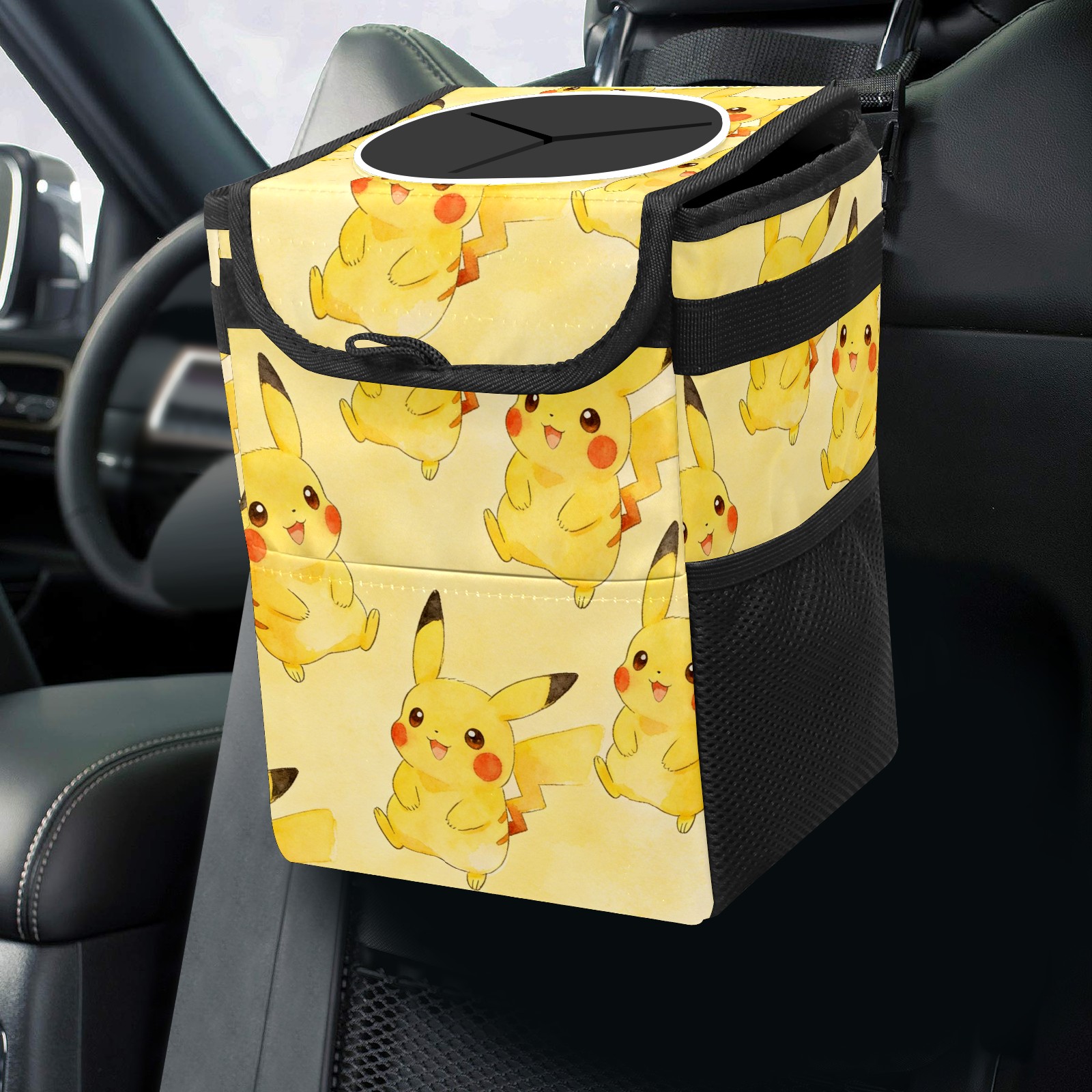 Car Trash Can with Lid, Small Portable Hanging Automotive Garbage Bin for Vehicles, Leakproof Waste Bag Container for SUV Truck Van Interior Auto Travel Road Trips(Pikachu Fun)