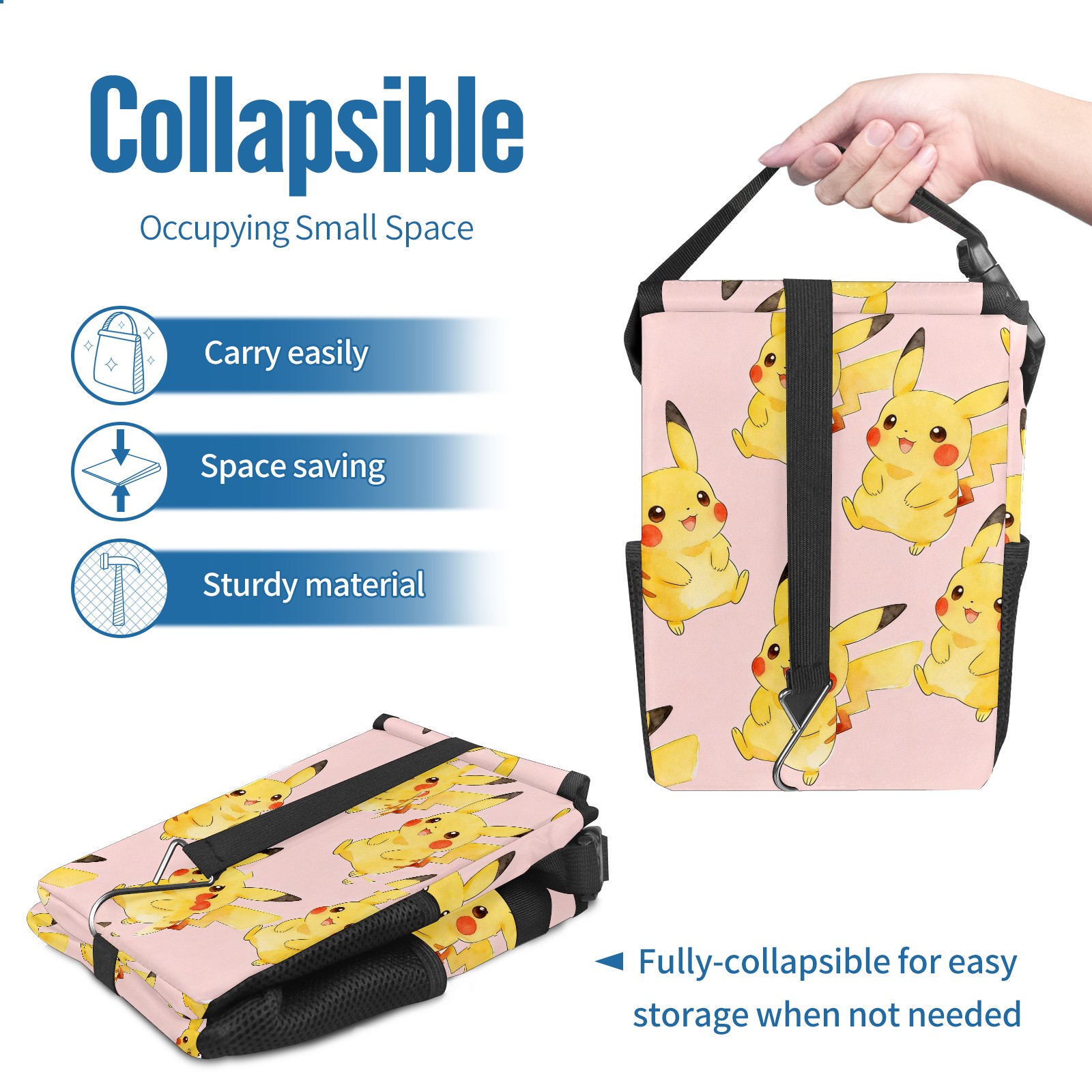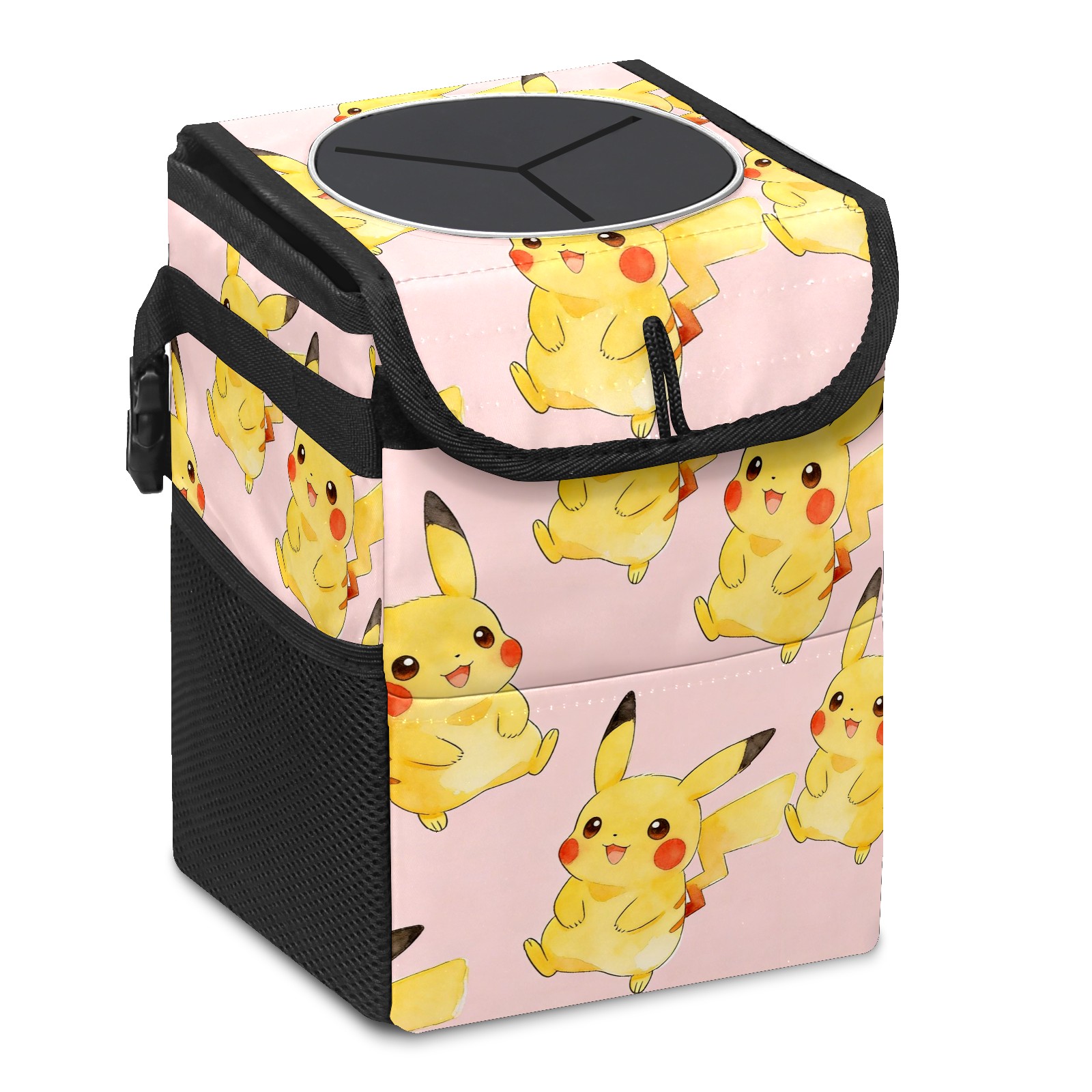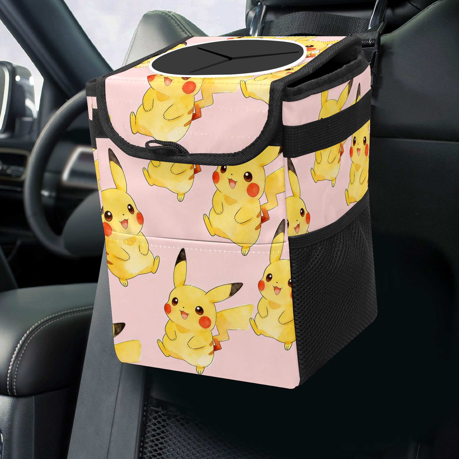 Car Trash Can with Lid, Small Portable Hanging Automotive Garbage Bin for Vehicles, Leakproof Waste Bag Container for SUV Truck Van Interior Auto Travel Road Trips(Pikachu Land)